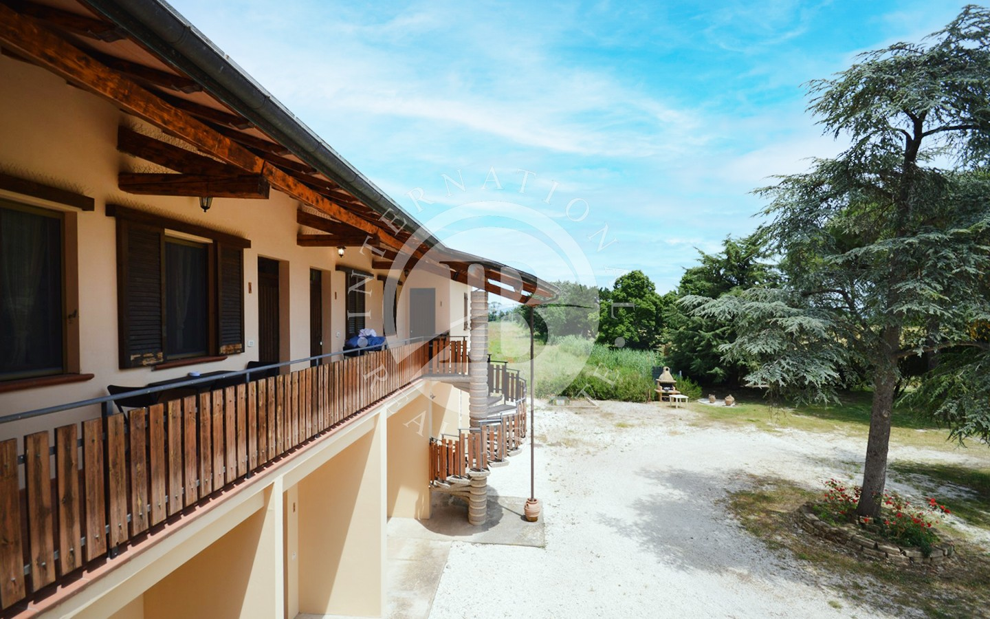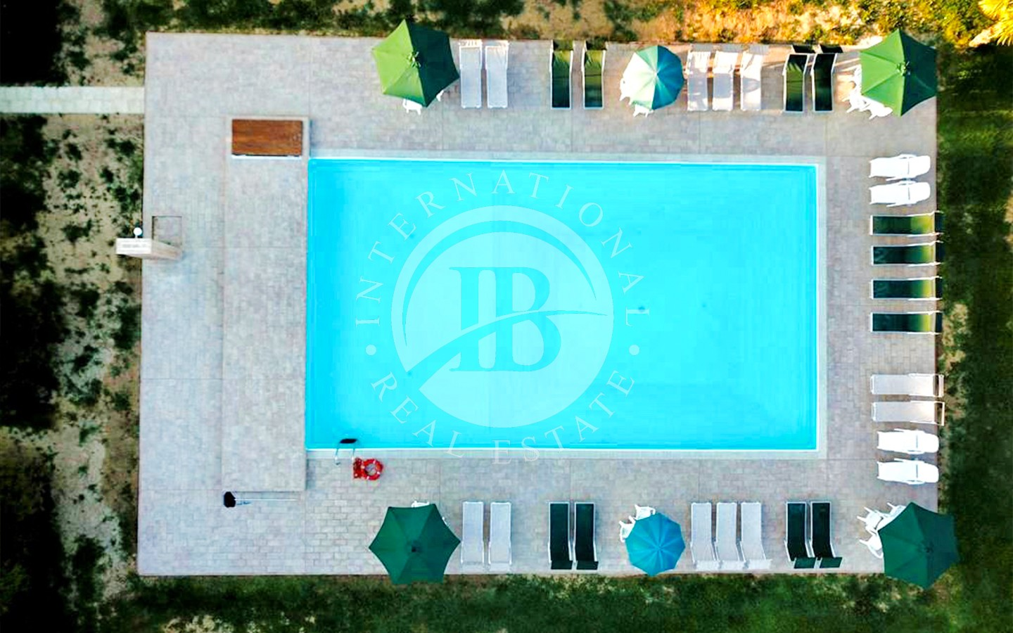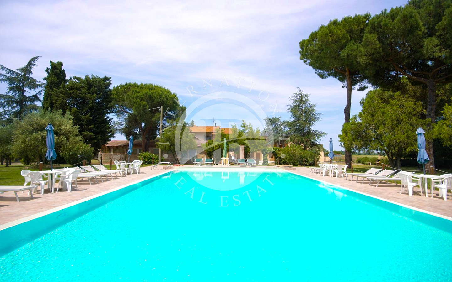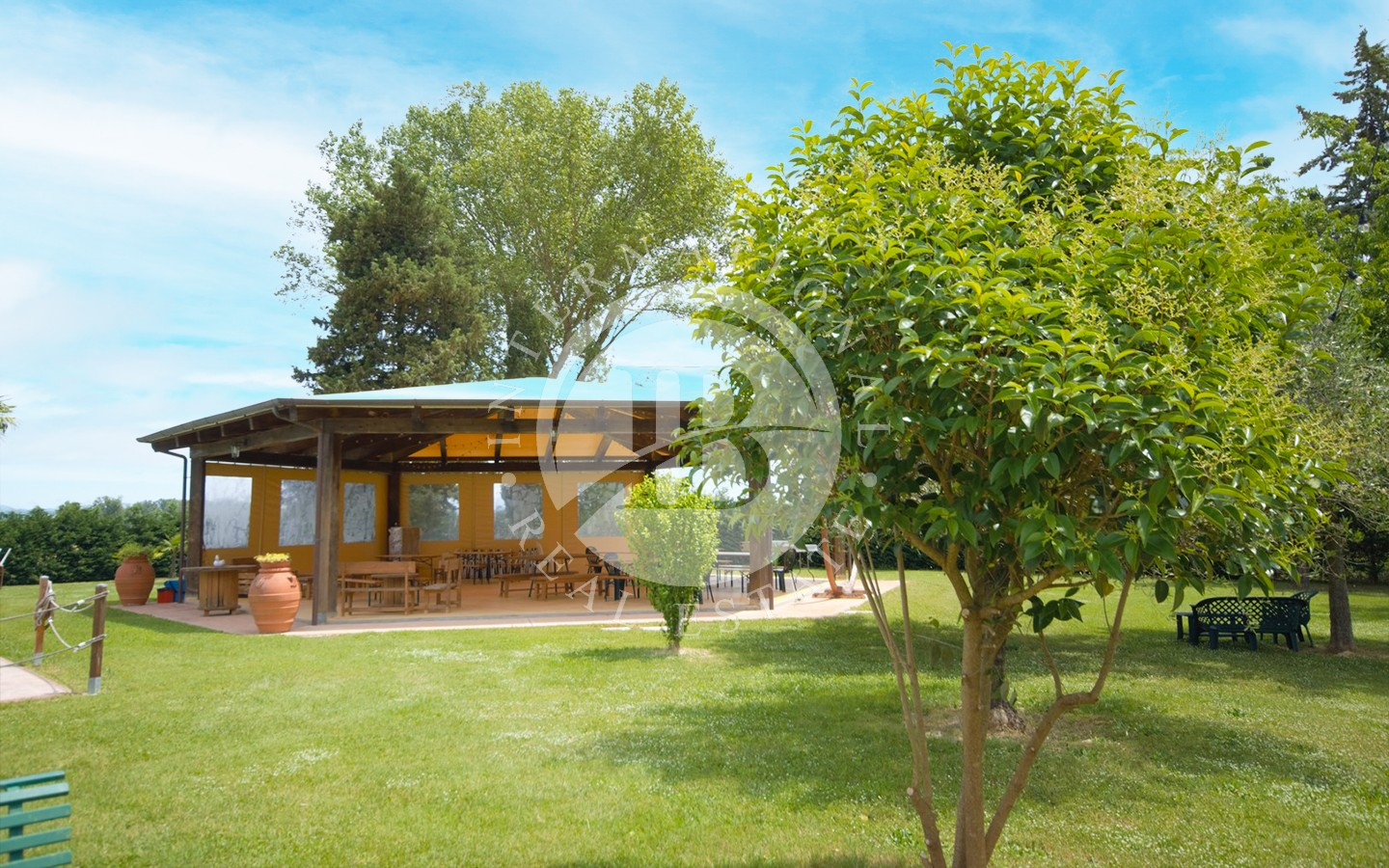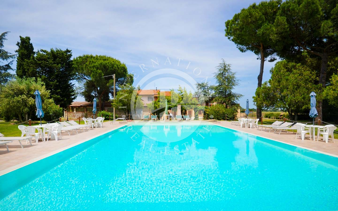 Ejendommen strækker sig over en velholdt park på ca. 9.600 kvadratmeter, beriget med prydtræer og høje planter, som garanterer privatlivets fred og en reserveret atmosfære. Udenfor er der en panoramisk swimmingpool med solarium og et stort lysthus på ca. 160 kvadratmeter, perfekt til arrangementer, ceremonier, tilbagetrækninger eller øjeblikke med afslapning omgivet af grønne områder.