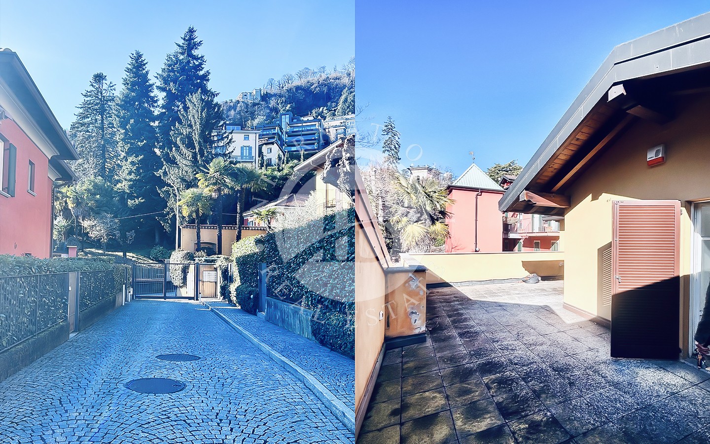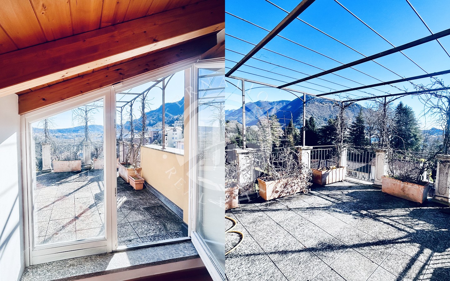 a interna che da scala condominiale, offre ulteriori 70 mq suddivisi in due locali accatastati come ripostiglio e un ulteriore ambiente da accatastare come bagno/lavanderia. Da questo piano si accede a un terrazzo panoramico con splendida vista lago.
