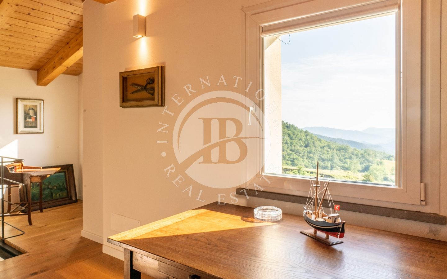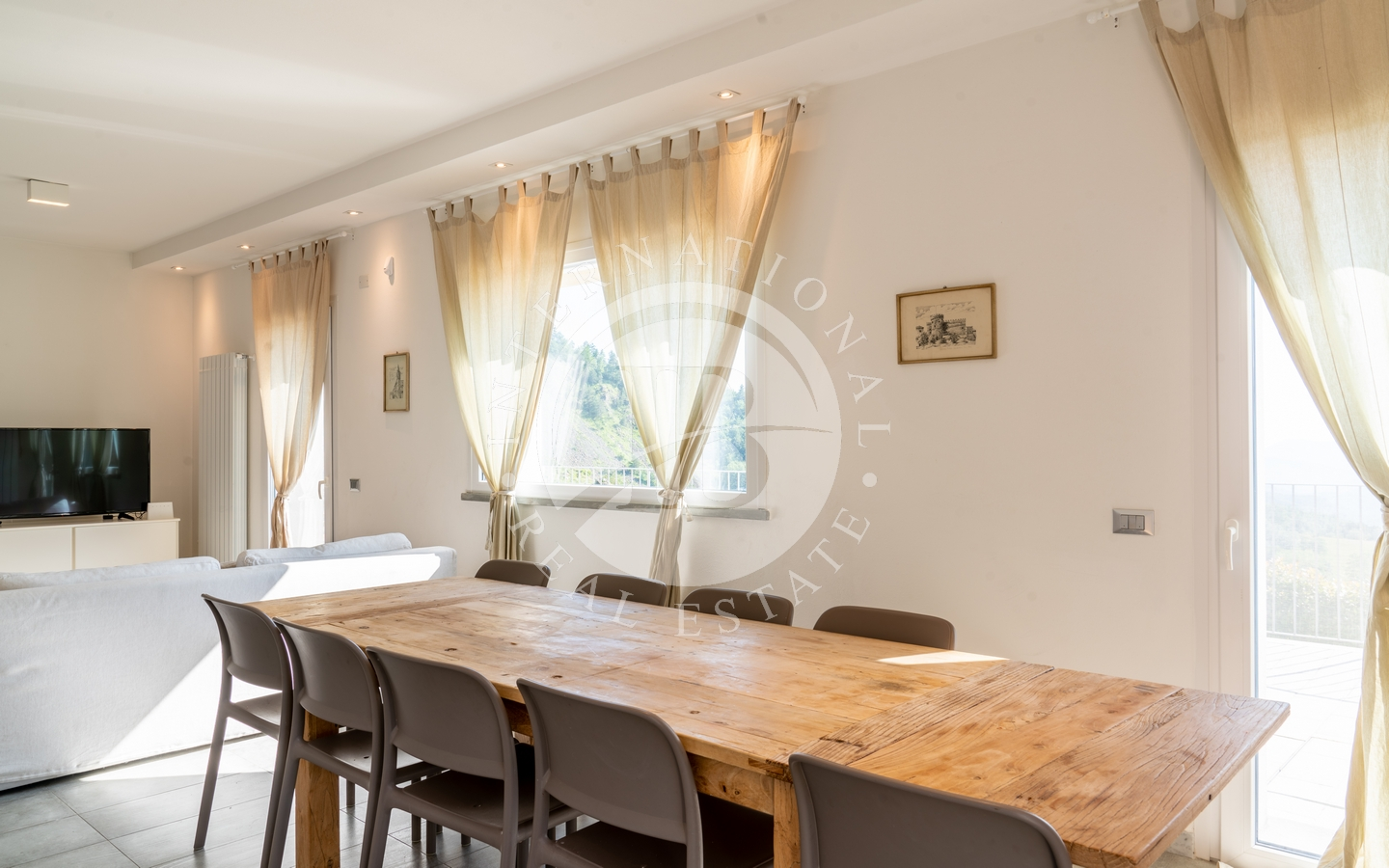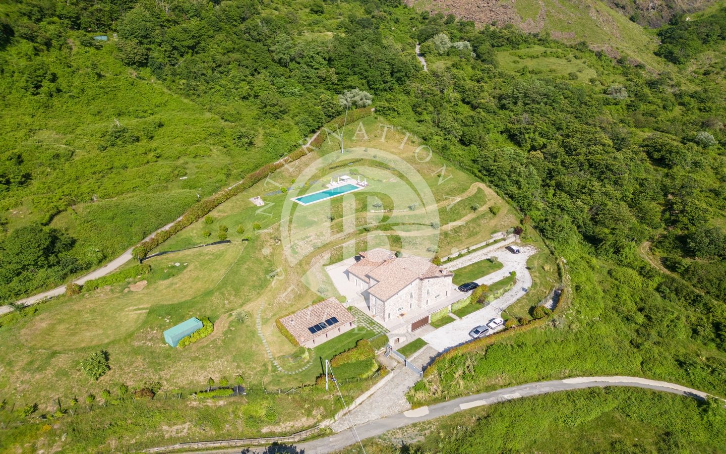 Denne prestigefyldte ejendom ligger i hjertet af bakkerne i Cinque Terres bagland og er fordelt på et samlet areal på ca. 550 kvadratmeter med en åben og stemningsfuld udsigt over det omkringliggende grønne landskab. Ejendommen, som er fuldstændig renoveret og indrettet med stor sans for detaljer, kombinerer moderne bekvemmeligheder, god plads og maksimalt privatliv.