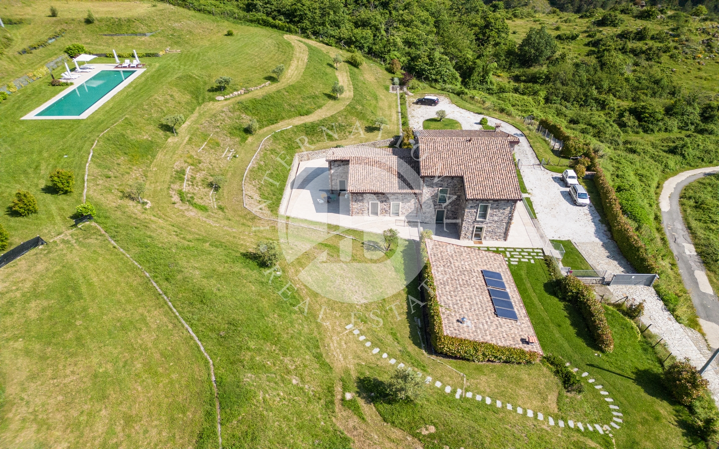 Villaen er omgivet af ca. 5 hektar jord, hvoraf 1 hektar er helt indhegnet og udstyret med et automatisk vandingssystem. I midten af haven er der en 5 x 20 meter stor swimmingpool, der ligger perfekt i sine naturlige omgivelser. En stor gårdhave ved siden af villaen, fuldt udstyret med ovn, grill, håndvaske og store borde, er det ideelle sted til sommermiddage og hyggelige stunder i det fri. Haven med sin storslåede udsigt over dalen er en ægte oase af fred og privatliv.
