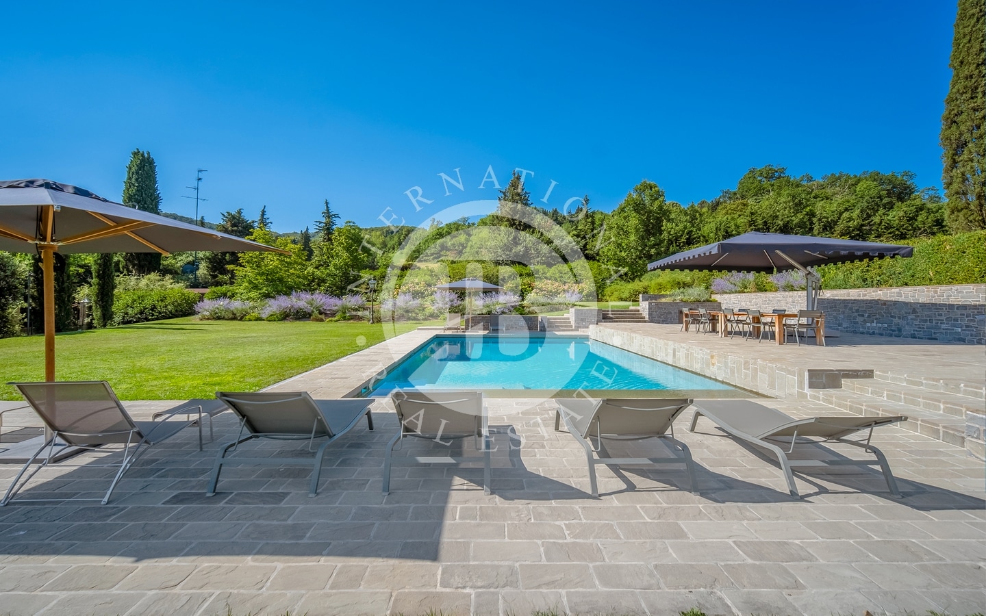 L’intera proprietà è gestita da un innovativo sistema di domotica che consente di controllare luci, clima, giardino e un avanzato sistema di allarme con un semplice gesto. Inoltre, un garage sotterraneo collegato direttamente alla villa e due ascensori garantiscono praticità e comfort in ogni momento.