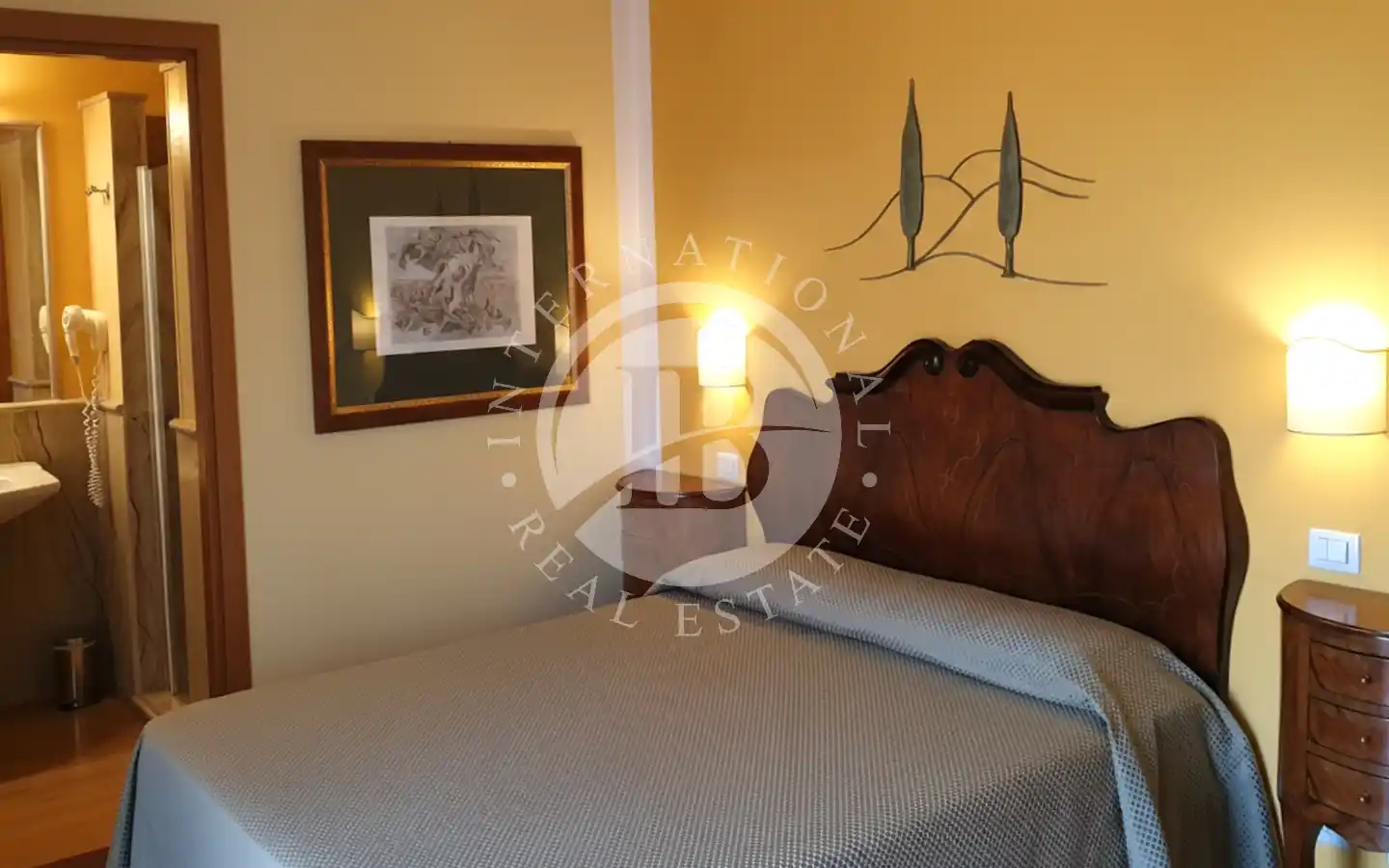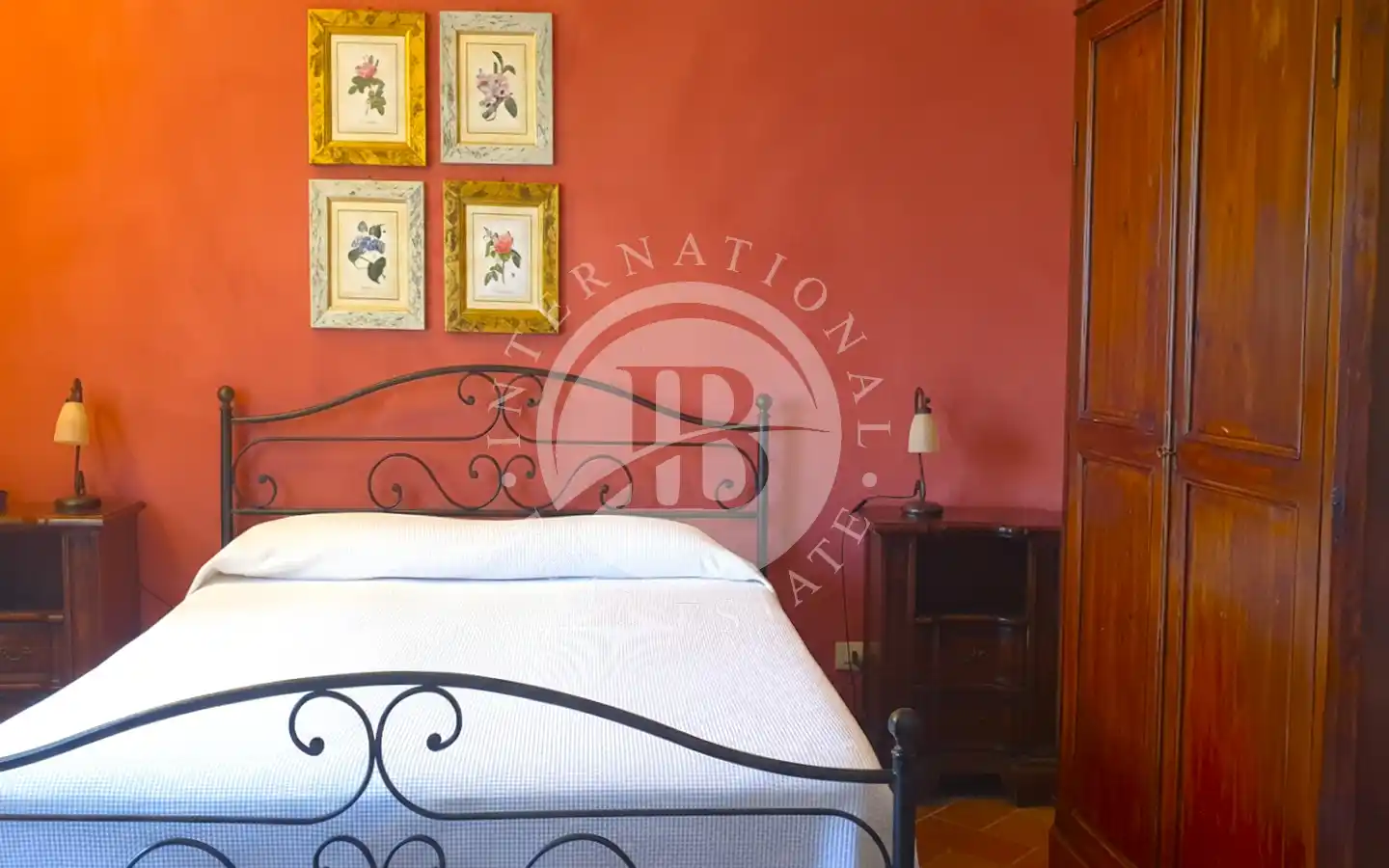 Boligdelen er opdelt i to forskellige komplekser: Det vigtigste drejer sig om en majestætisk villa med 12 soveværelser og en hel kælderetage dedikeret til et wellnesscenter, konferencelokaler og hjemmebiograf. En historisk bondegård, en indviet kirke, en panoramisk swimmingpool og ca. 55 hektar olivenlunde og dyrkbar jord fuldender denne grund.