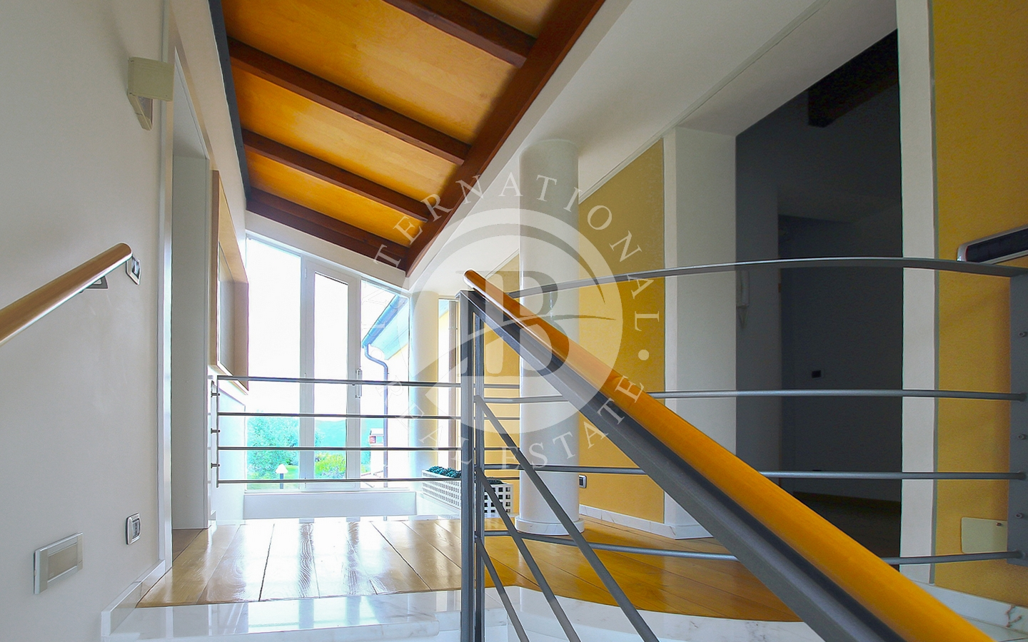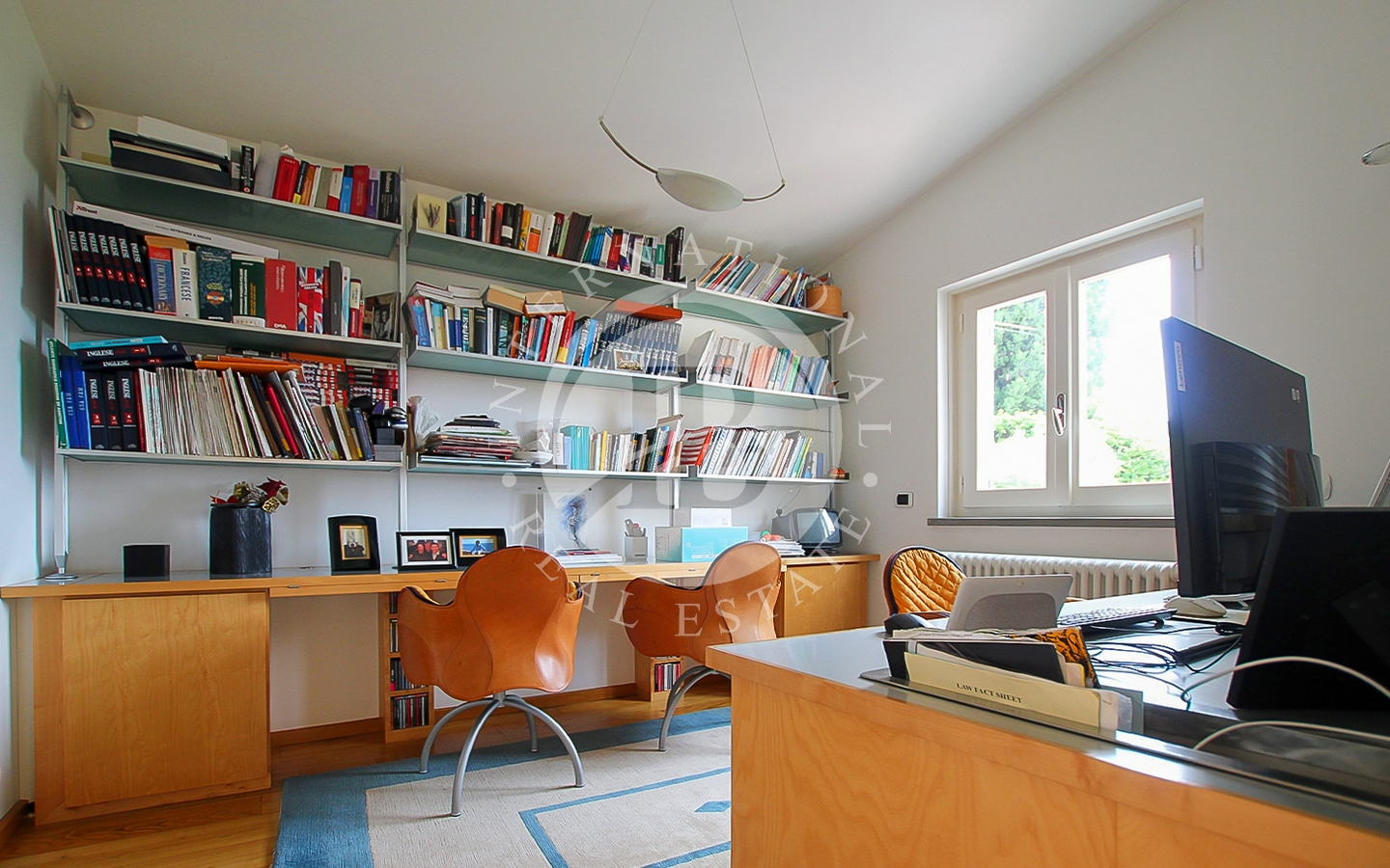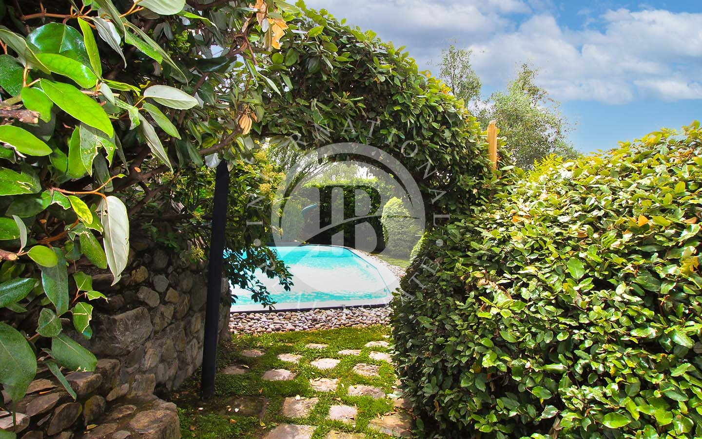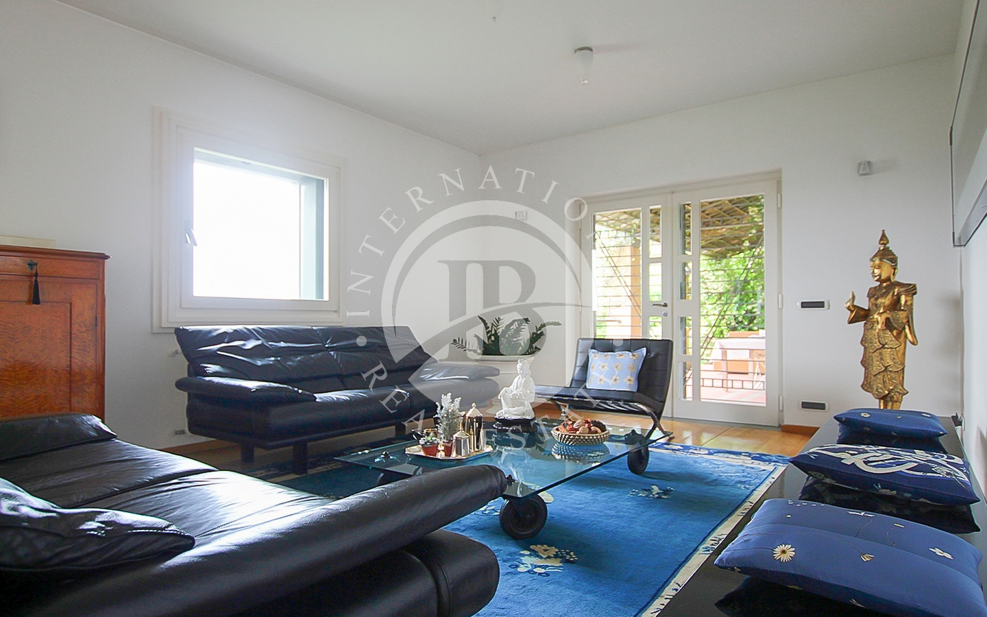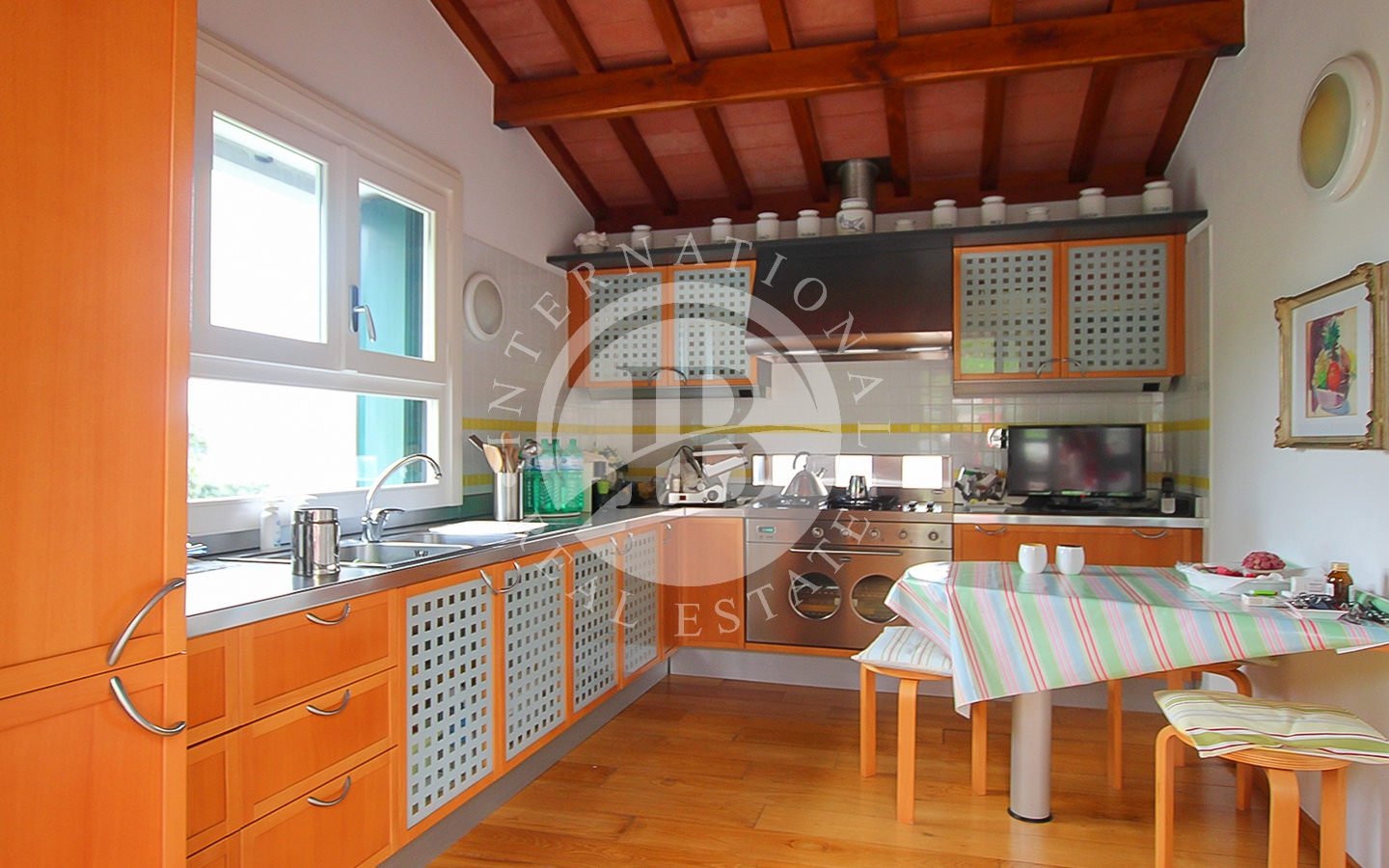 En vej omgivet af vegetation fører fra udkanten af byen til ejendommen, som man får adgang til gennem en elektrisk port, der åbner ud til parkeringspladsen foran ejendommen. Herfra krydser man den smukke have, der er beplantet med middelhavsblomster og planter, og når indgangen i stueetagen, der åbner ud til den lyse gang, hvorfra man kommer ind i opholdsstuen, der består af en stor stue med direkte adgang til verandaen, spisestuen og spisekøkkenet med uafhængig adgang samt et soveværelse.