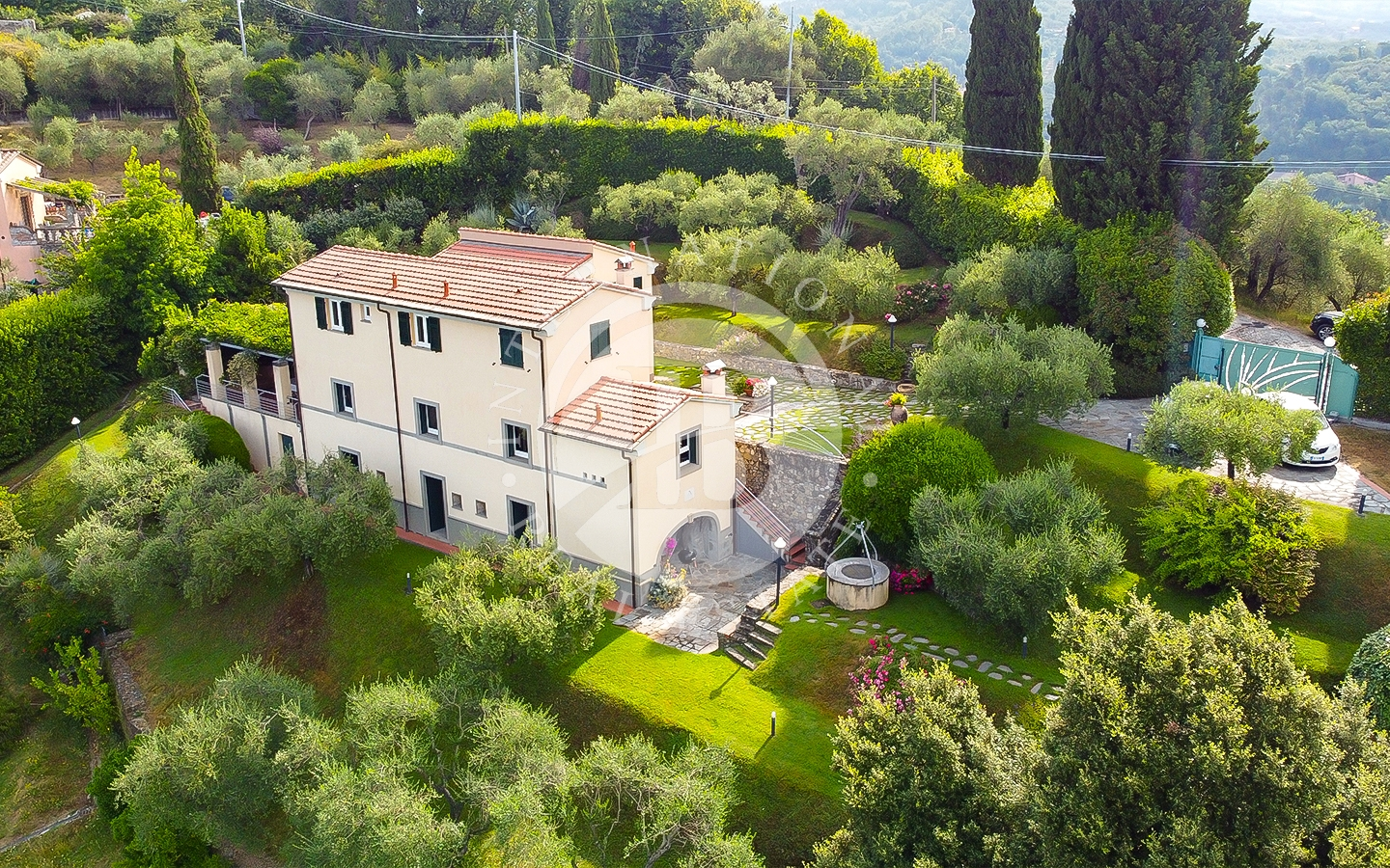 Ejendommen fuldendes af den panoramiske veranda, den smukke swimmingpool med varmt brusebad og den 3 ha store grund, hvoraf 1 ha er beplantet med oliventræer.