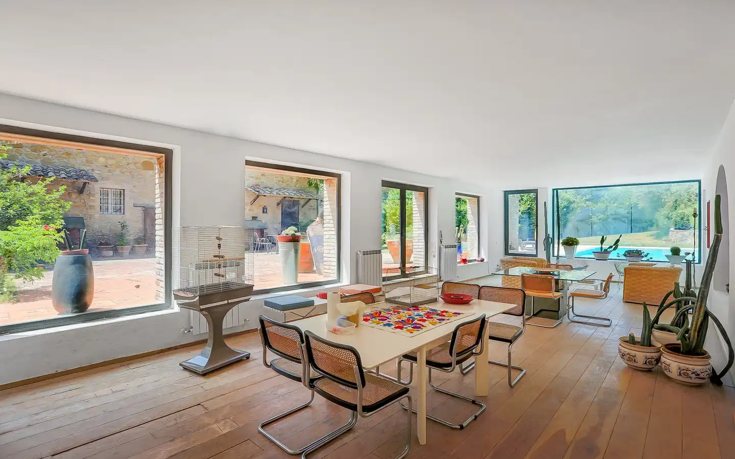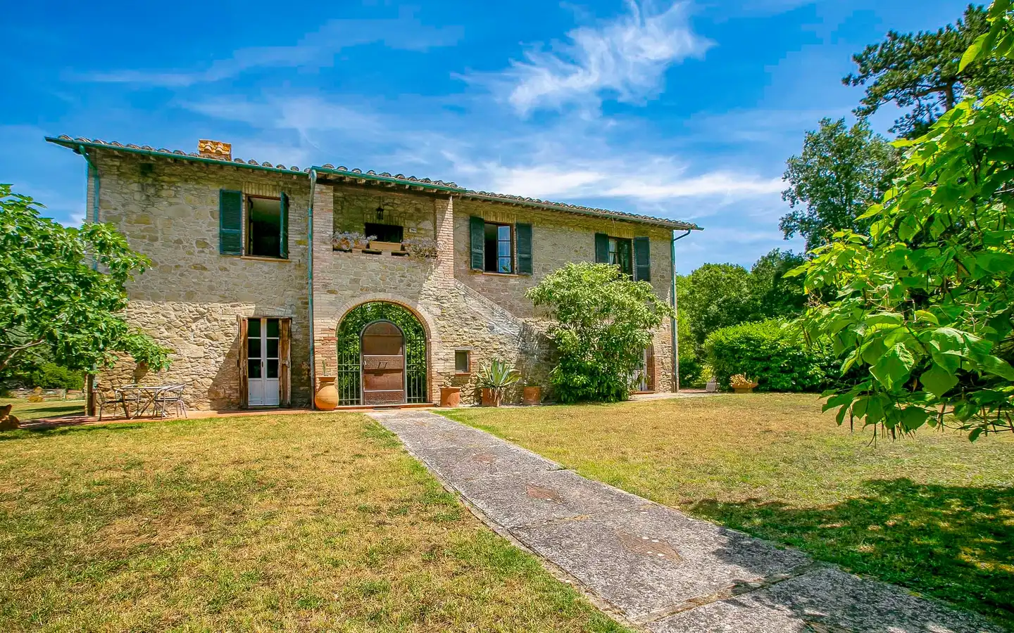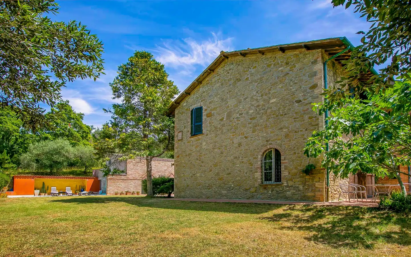 I Umbriens fortryllende omgivelser ligger en stenbolig af sjælden elegance, en villa i to etager, som har formået at bevare sin autenticitet intakt takket være en omhyggelig restaurering, der respekterer dens oprindelse. Det perfekt bevarede interiør har originale terrakottagulve og lofter med synlige træbjælker, elementer, der fortæller om stedets tradition og giver det en varm og indbydende atmosfære.