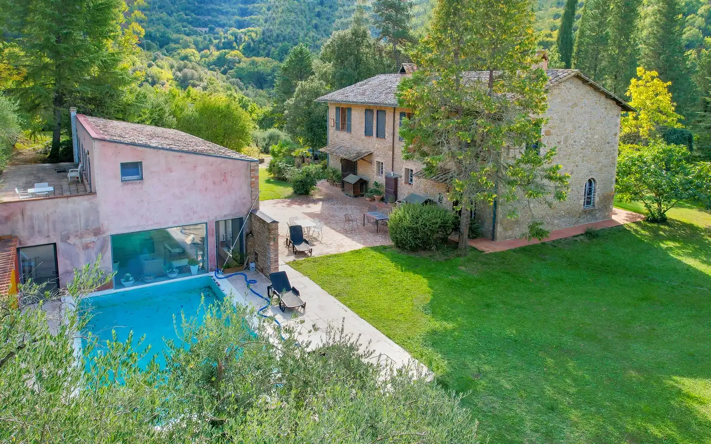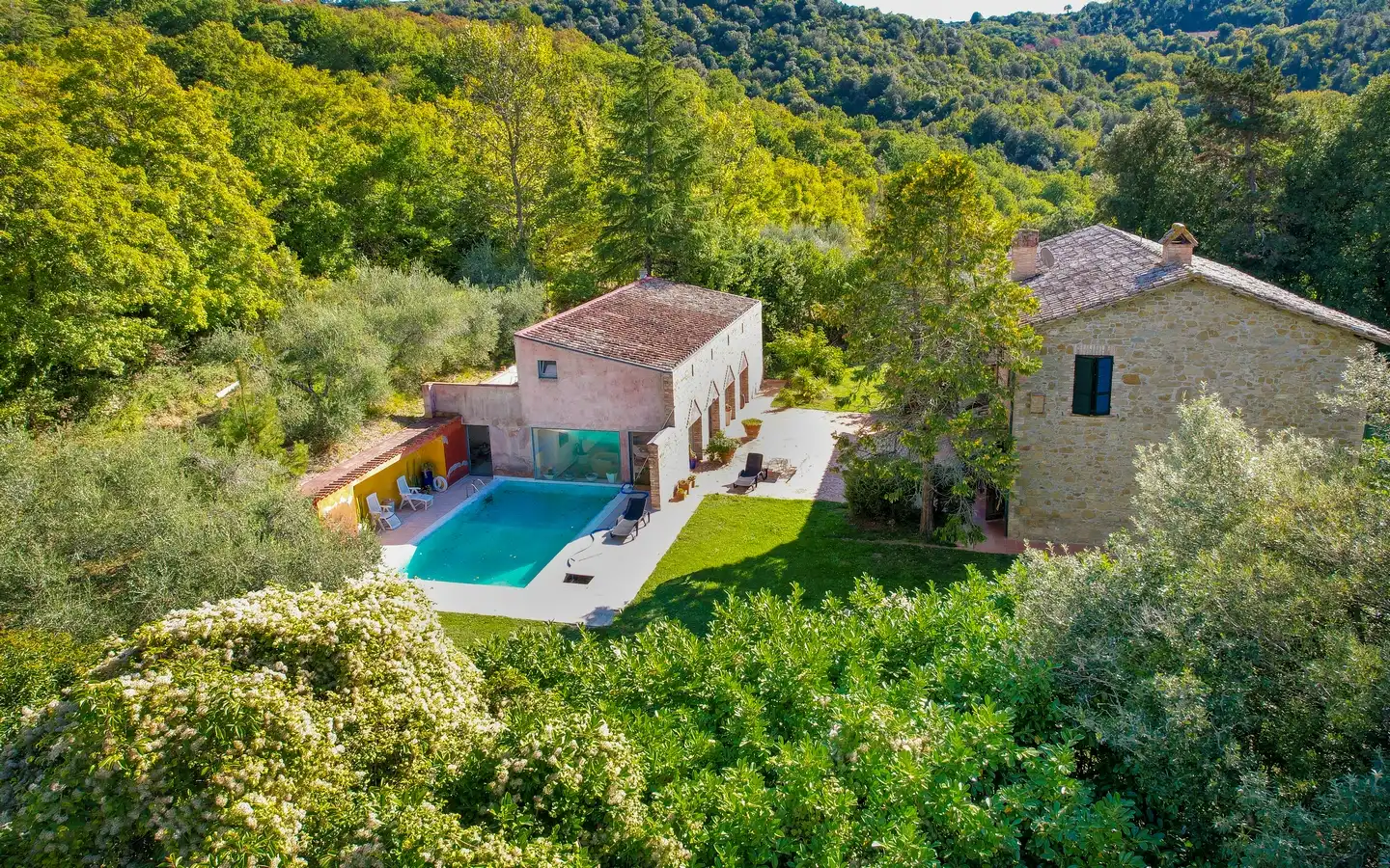 Villa og dependance med pool midt i det grønne lige uden for Perugia