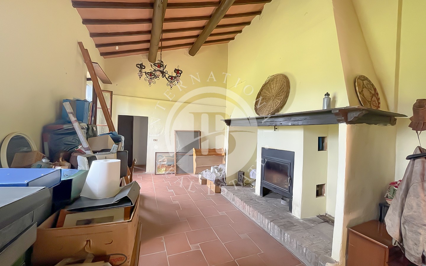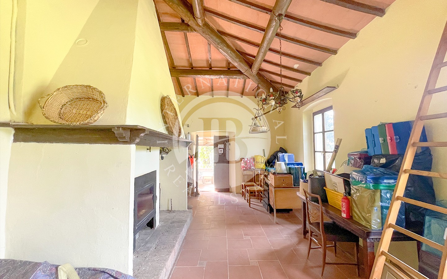 Il primo piano, accessibile sia dall’interno che dall’esterno, dispone di una sala con camino, una cucina, una camera singola, una camera matrimoniale, un bagno con doccia, un'ampia camera matrimoniale e un bagno con vasca.