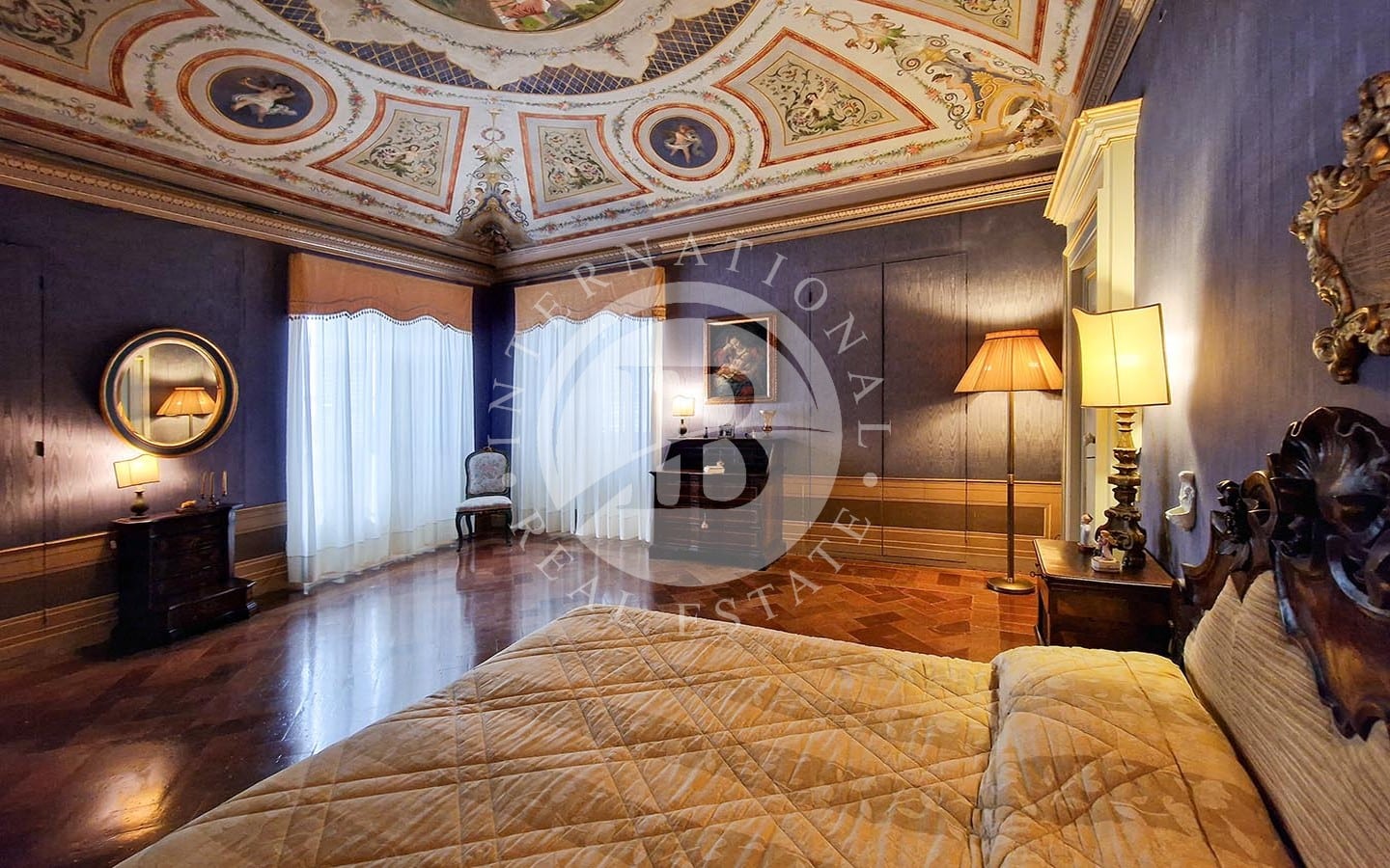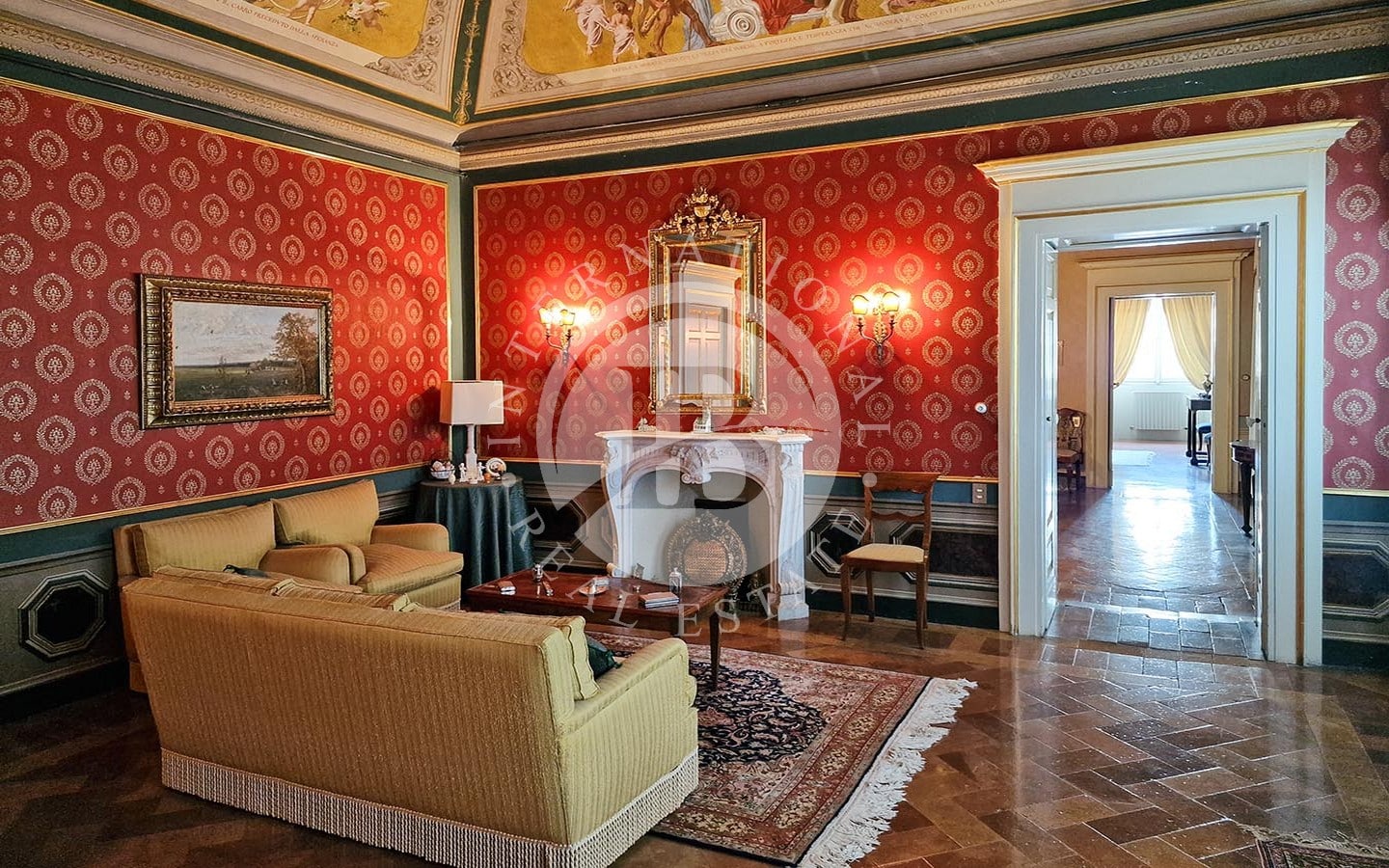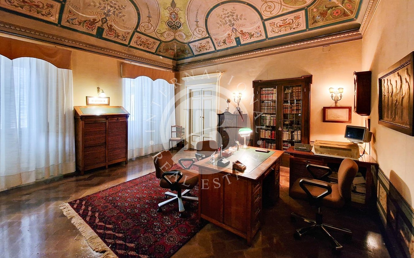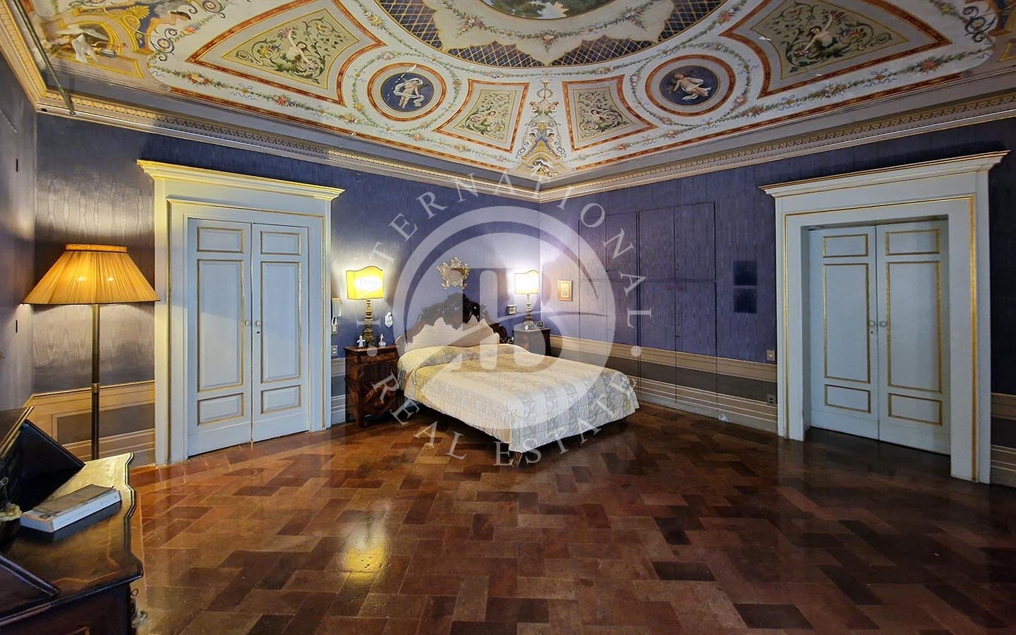 i di relax e convivialità. Gli spazi interni includono diverse sale da pranzo, soggiorni, camere da letto, studi e bagni. La zona nord dell'immobile ospita le cucine, magazzini e ripostigli. Un elemento caratteristico dell'appartamento è la presenza di una piccola chiesa, completa di altare e banchi, in uno degli ambienti.