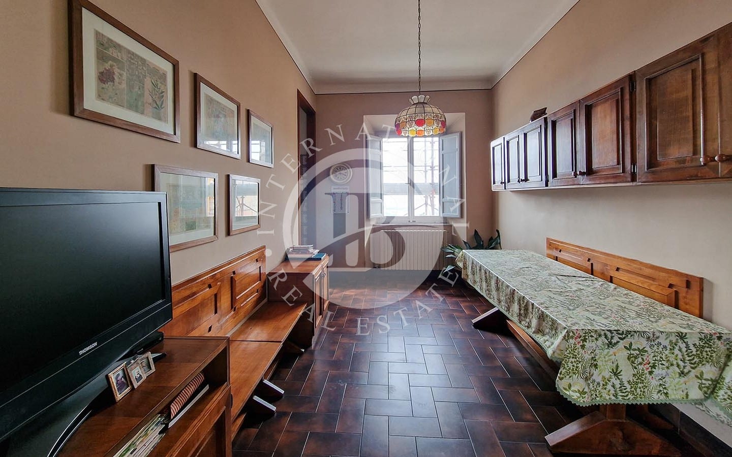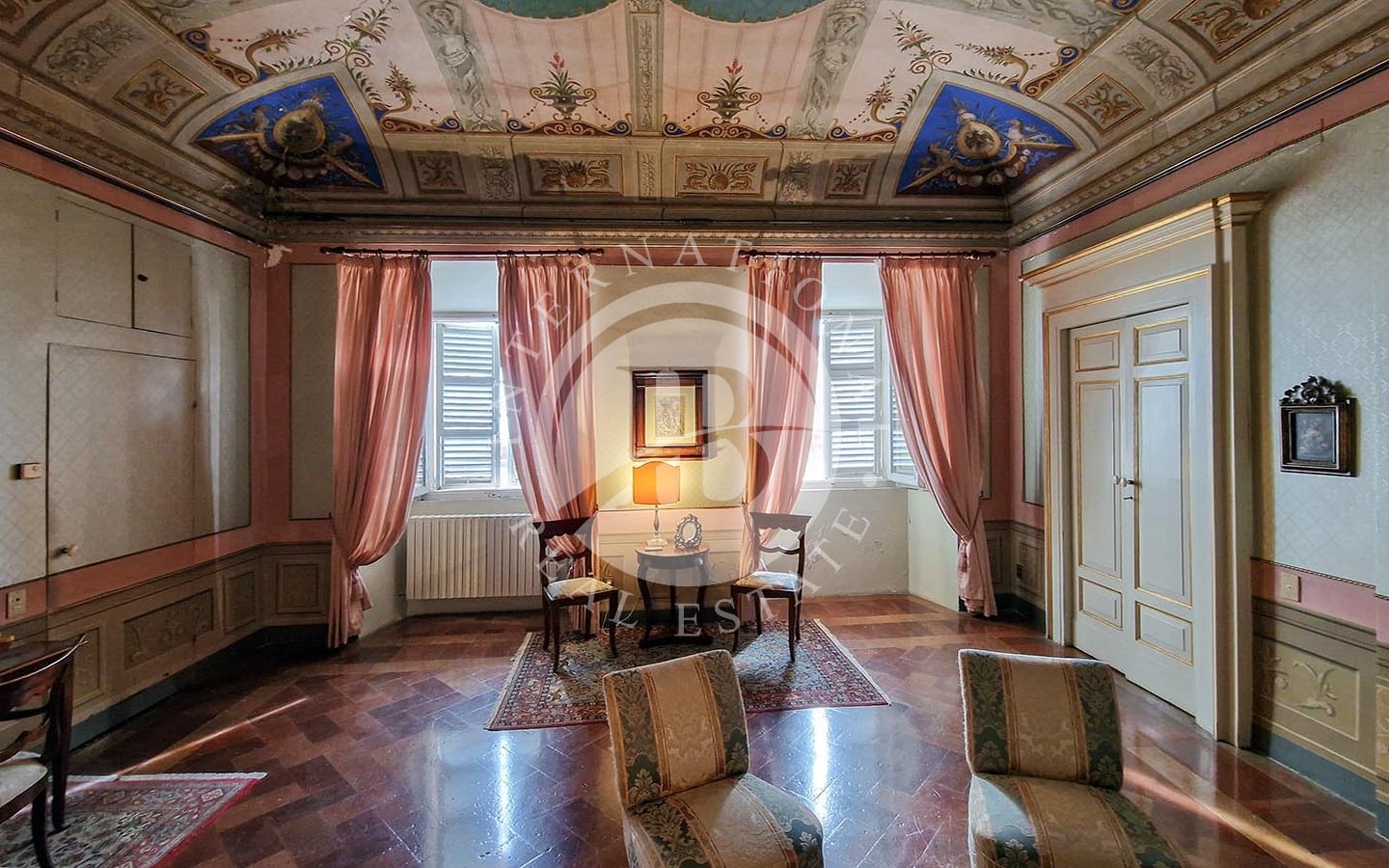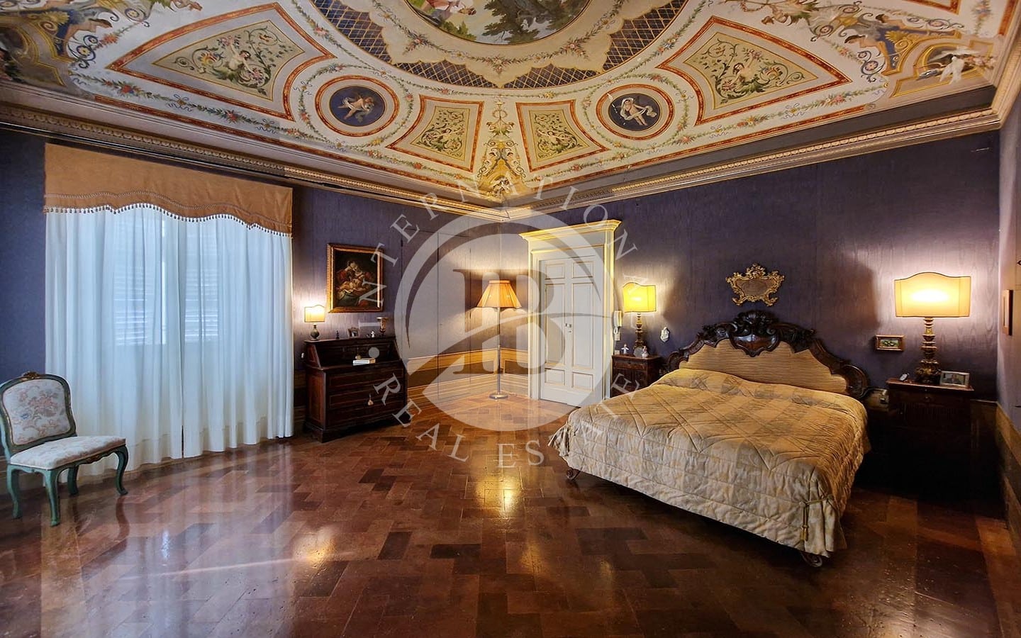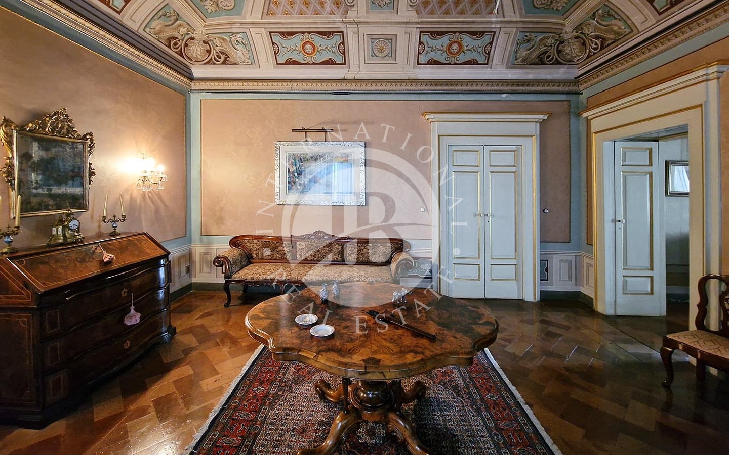 i di relax e convivialità. Gli spazi interni includono diverse sale da pranzo, soggiorni, camere da letto, studi e bagni. La zona nord dell'immobile ospita le cucine, magazzini e ripostigli. Un elemento caratteristico dell'appartamento è la presenza di una piccola chiesa, completa di altare e banchi, in uno degli ambienti.