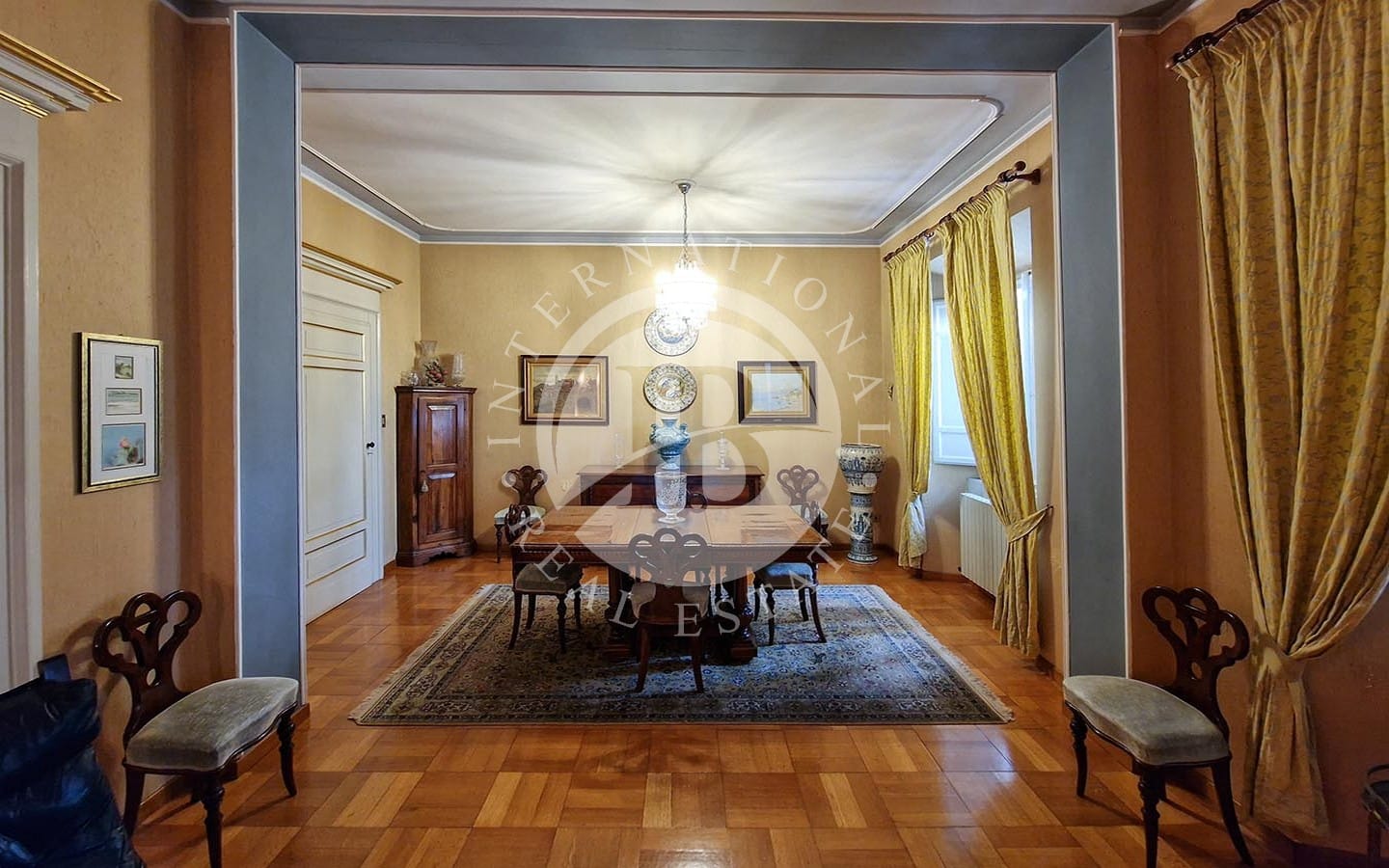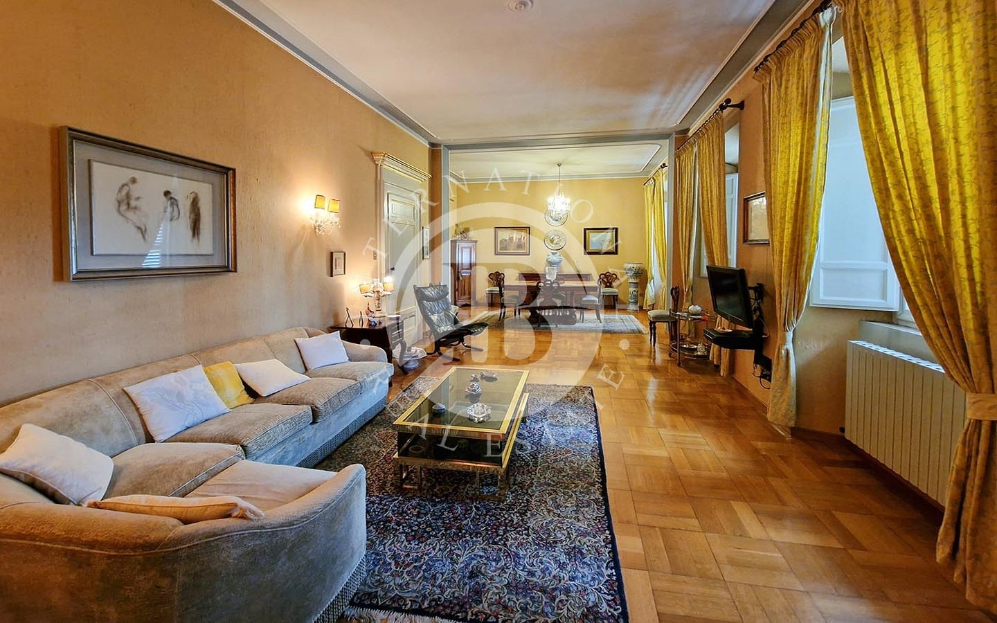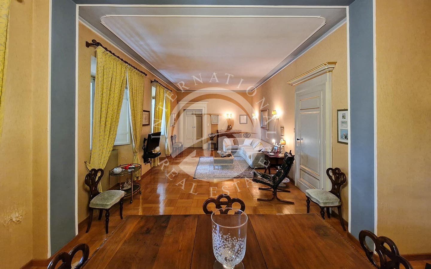 Situato nel cuore di Fermo, questo elegante appartamento di circa 500 mq offre una vista panoramica sul centro storico e sul mare. Inserito in un palazzo storico, la proprietà vanta accesso esclusivo tramite una scalinata e un ascensore privato dal giardino di circa 250 mq, condiviso con un'altra abitazione. L'ingresso principale è attraverso un imponente portone storico, che conduce a un androne con soffitto affrescato a cassettoni. L'appartamento si sviluppa al terzo e ultimo piano, con un ampio soggiorno luminoso, ideale per moment…