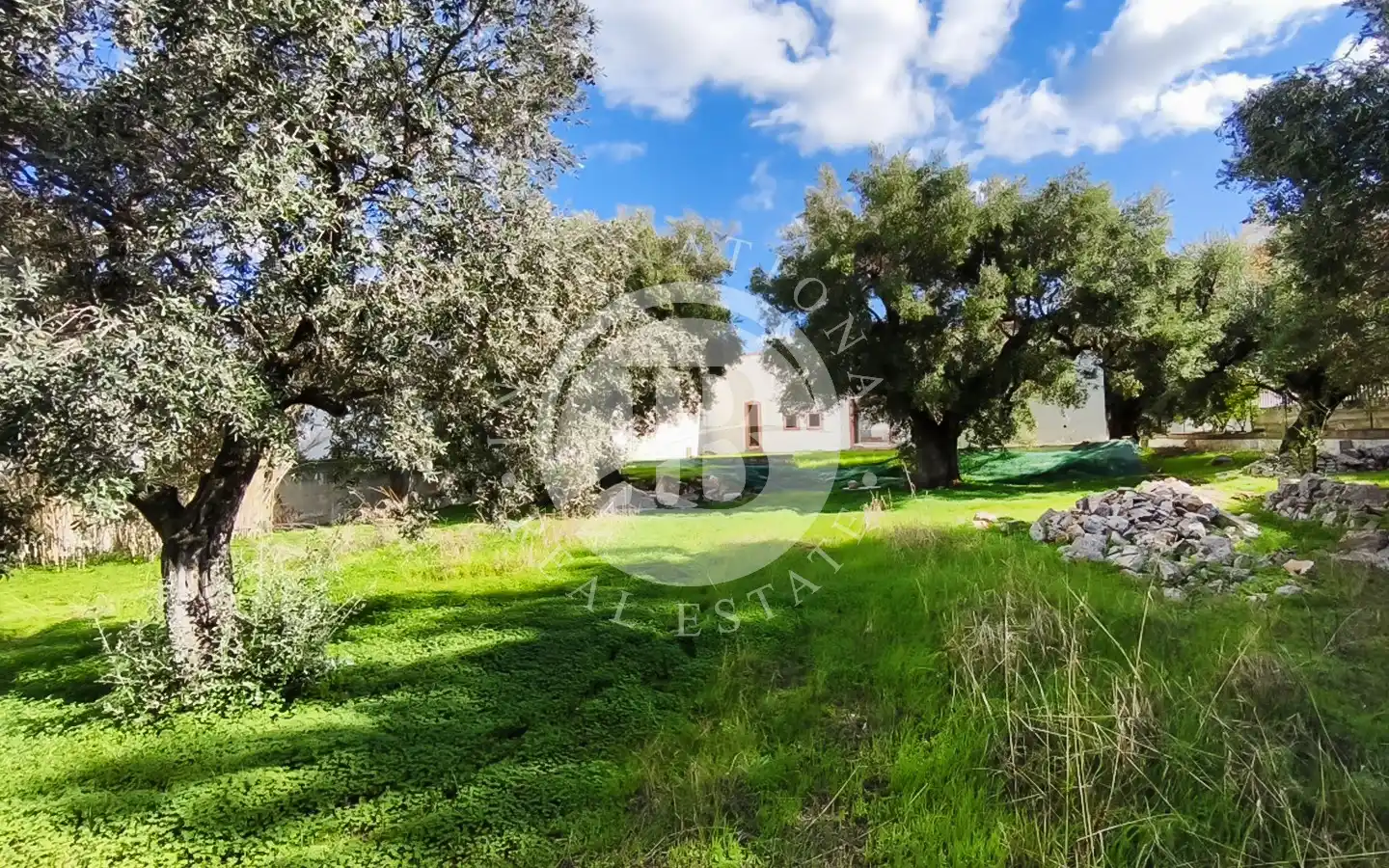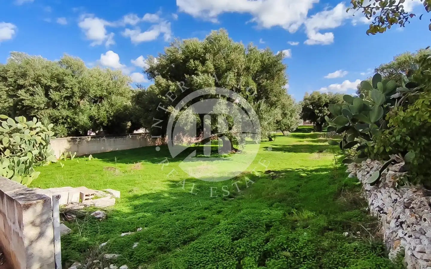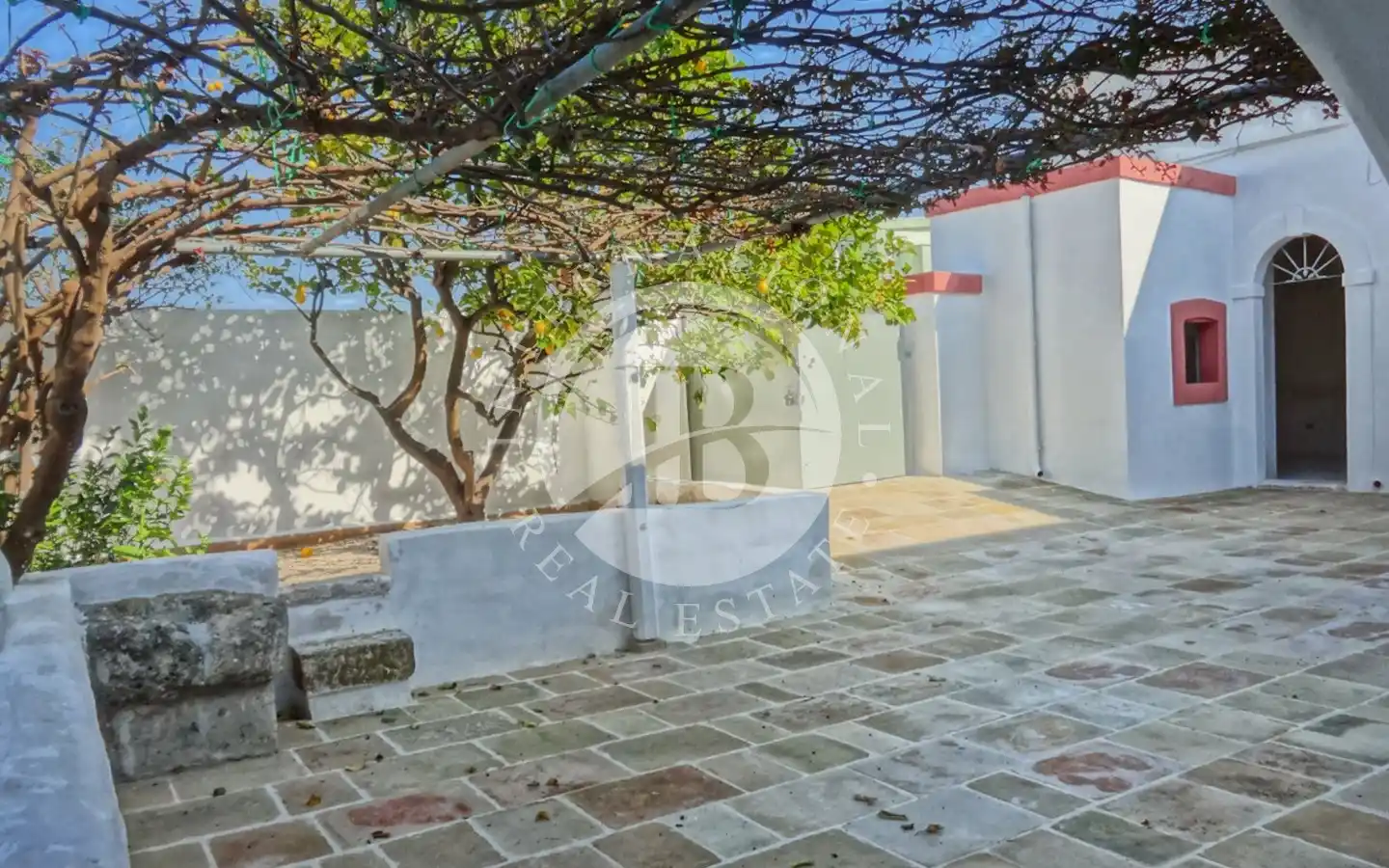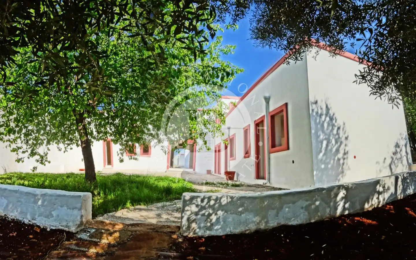 Il piazzale retrostante ospita un maestoso albero di gelsi neri e un giardino di pertinenza con ulivi secolari. È presente una cisterna per la raccolta delle acque piovane, perfettamente stagna e funzionante, oltre a un sistema di smaltimento per le acque meteoriche. L’immobile è dotato di elettricità, acquedotto e fognatura. Data la posizione all’interno della maglia urbana, esiste inoltre la possibilità di ampliamento e la realizzazione di una piscina fino a 40 mq.