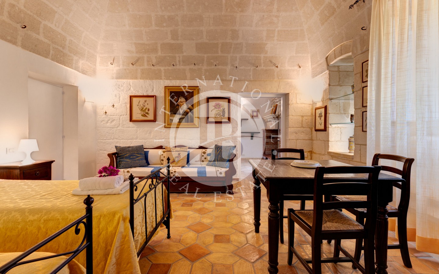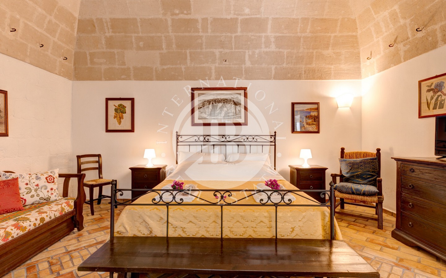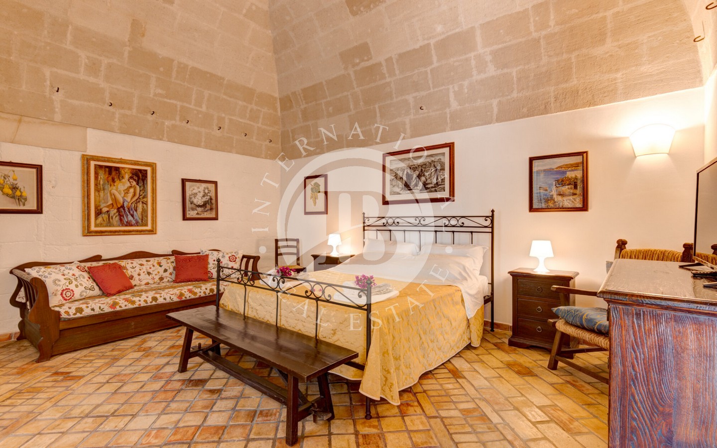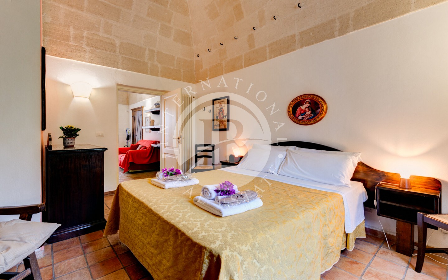 Attualmente la masseria ospita una fiorente attività agrituristica con regolare licenza e molteplici flussi di reddito. Al suo interno si trovano sei appartamenti indipendenti, arredati con gusto in stile arte antica, che offrono un totale di 22 posti letto. La licenza permette un’espansione fino a 45 posti letto. Ogni appartamento è dotato di bagno e cucina privata, con arredi in legno massello e accessori completi, tutti inclusi nella vendita.