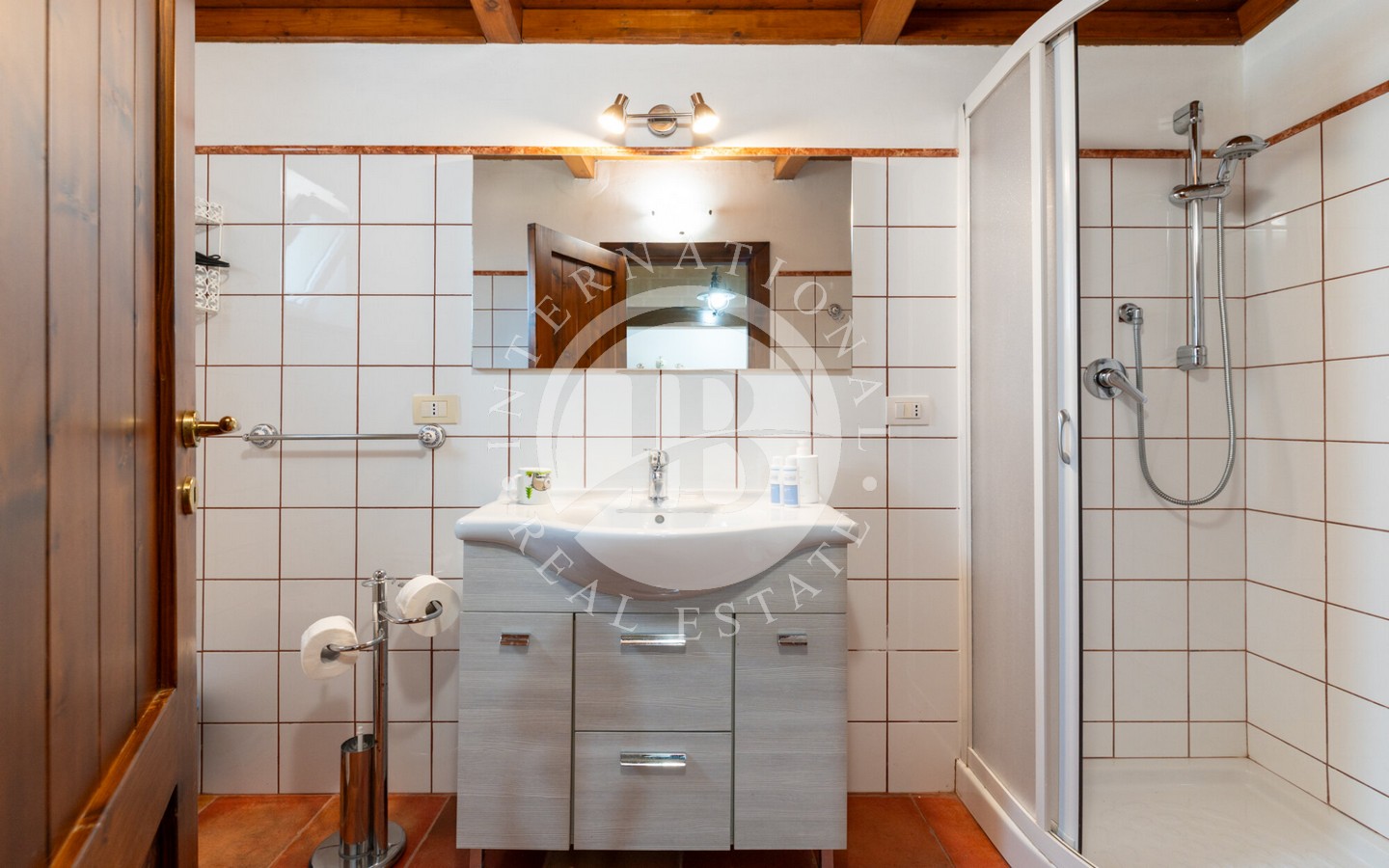 Accanto all’edificio principale, una suggestiva ex torretta dell’ENEL è stata trasformata in un incantevole appartamento su due livelli, anch’esso arredato in modo coerente con il resto della proprietà e completo di cucina e bagno.