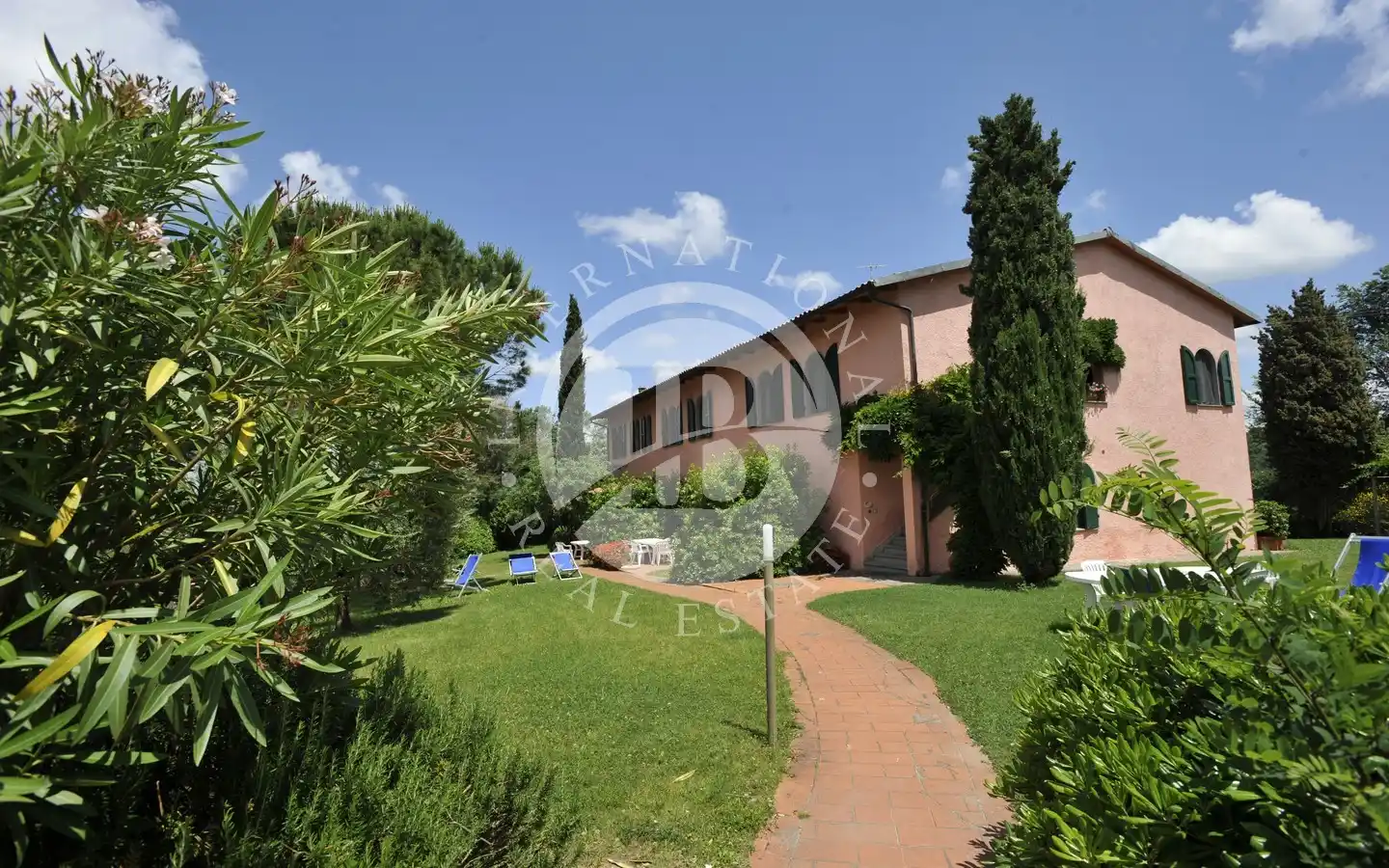 La Villa è frutto di un'attenta ristrutturazione di un casolare risalente all'epoca medievale (ex convento), elevato complessivamente su due piani fuori terra ed un piano seminterrato. La posizione è molto panoramica ed immersa fra oliveti e boschi dell’azienda. Nelle vicinanze c’è uno dei 3 laghi del complesso. La struttura è dotata di 5 appartamenti situati ai vari piani dell'edificio, di cui uno occupa un intero piano con un salone molto grande, ed è corredata da un ampio parco di pertinenza sul quale sorgono due piscine scoperte, un campo da tennis ed un parco giochi.