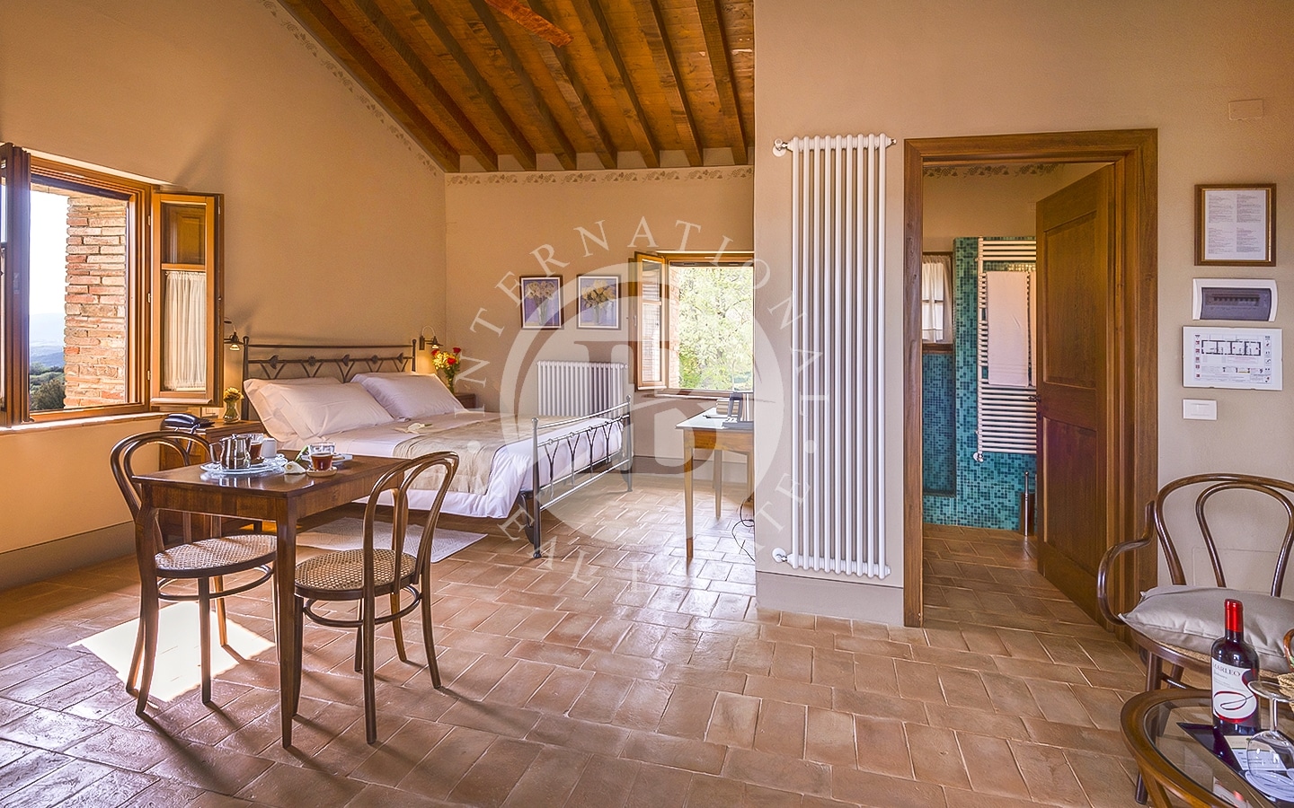 Immerso tra le incantevoli vedute della Val d'Orcia e la maestosità del Monte Amiata, questo suggestivo complesso offre uno sguardo panoramico sui meravigliosi paesaggi rurali delle colline della Maremma. Progettata dall'architetto Edoardo Milesi, include una magnifica residenza del XIX secolo splendidamente restaurata di circa 750 mq, una moderna villa indipendente di circa 150 mq e un romantico annesso di 40 mq. La prima struttura, costruita in pietra, vanta un salone elegante con camino che si affaccia su un terrazzo panoramico, un…