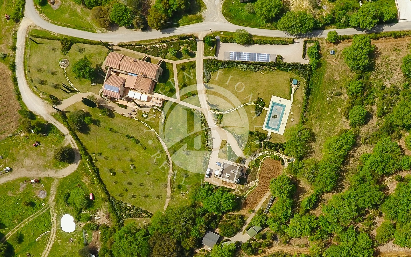 L'intera proprietà è stata sviluppata secondo criteri di bio-costruzione, privilegiando l'efficienza energetica grazie all'utilizzo di tecnologie solari termiche e fotovoltaiche. Sono state implementate significative installazioni, tra cui un sistema di sorveglianza con 12 telecamere, copertura WiFi nelle aree esterne e TV via cavo e satellitare. Completa la proprietà un pergolato in legno per 12 posti auto coperti, dotato di pannelli fotovoltaici, e un magnifico parco di 2 ettari con sistema di irrigazione automatico alimentato da tre pozzi.