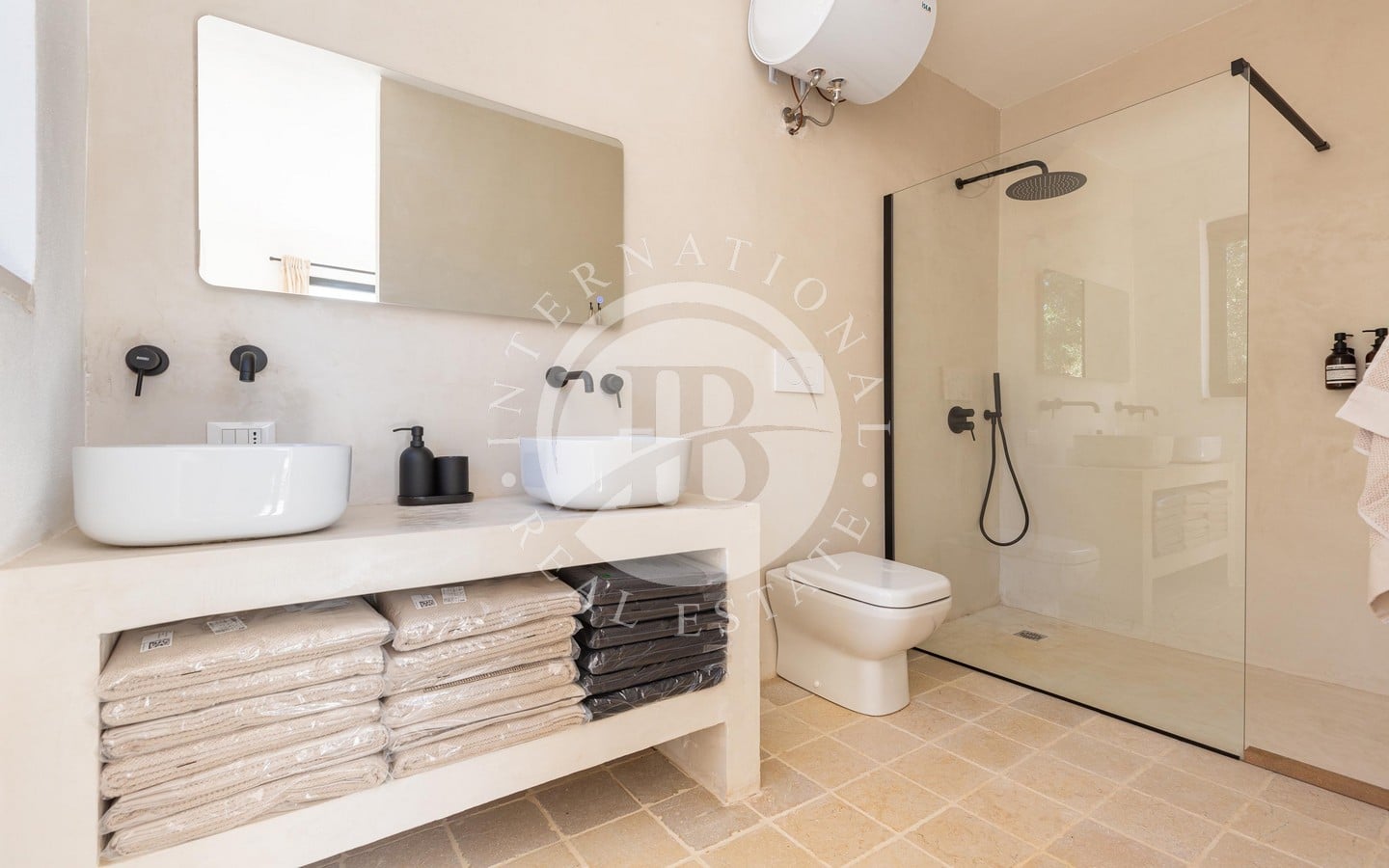 La villa è completamente indipendente dal punto di vista idrico ed energetico grazie a un pozzo artesiano, una cisterna d’acqua da 20.000 litri, un impianto fotovoltaico da 10 kW con batterie di accumulo da 15 kW e una pompa di calore. Il comfort abitativo è garantito dal riscaldamento a pavimento e dalla climatizzazione canalizzata in tutti gli ambienti.