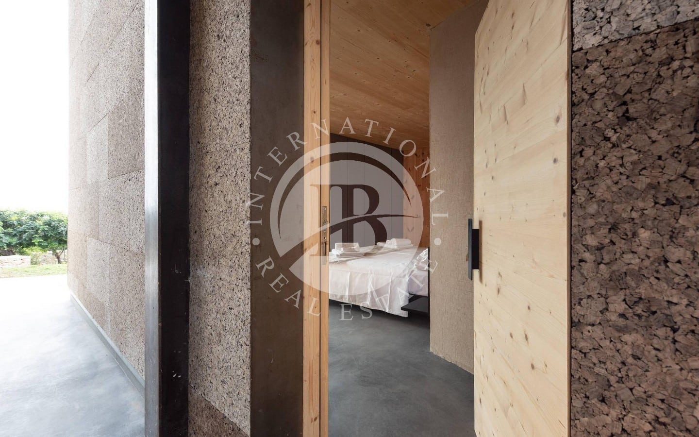 tivo dei materiali. La struttura in X-LAM garantisce isolamento acustico e resistenza sismica, mentre il rivestimento in sughero ne migliora l'efficienza energetica e l'integrazione nel paesaggio. Un'architettura sofisticata che riflette un lusso sostenibile.