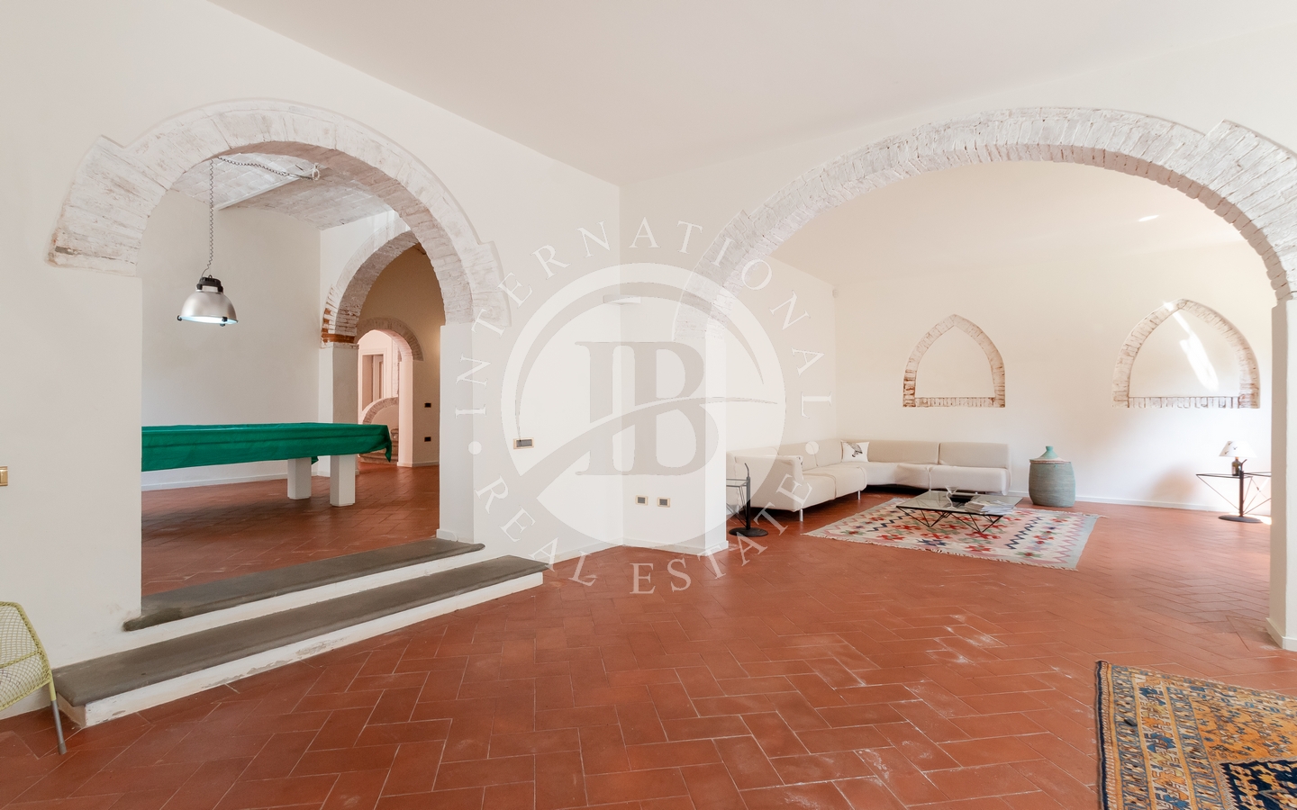 amino, due soggiorni (uno con grande camino e l'altro con affaccio sul giardino), e un bagno completano il piano.