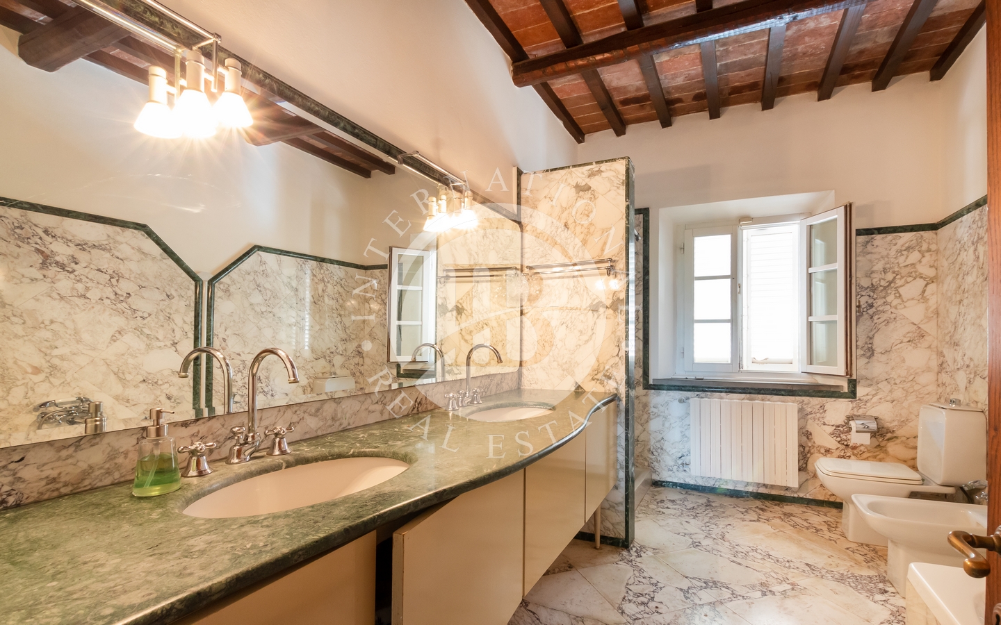 The large double room on the ground floor, with private marble bathroom and independent access, is ideal for guests with special needs or service personnel.