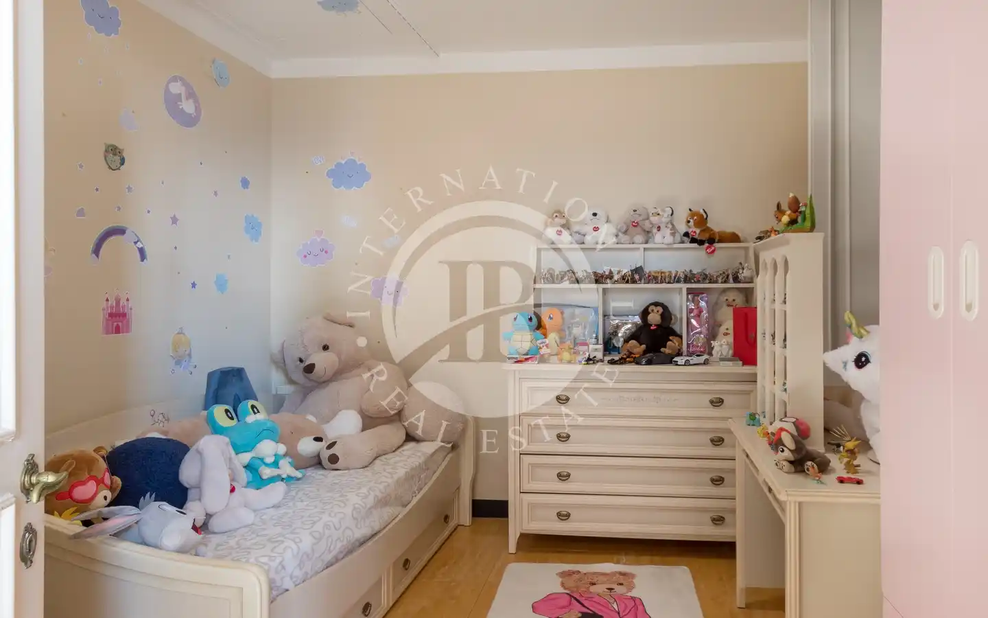 ganti pavimenti in marmo policromo, una luminosa zona giorno con cucina, soggiorno, sala da pranzo e un bagno al piano terra, mentre al piano superiore trovano spazio due camere, di cui una con bagno en-suite e cabina armadi, un salotto, un ripostiglio e un secondo bagno. L’ accesso è indipendente, garantendo massima privacy.