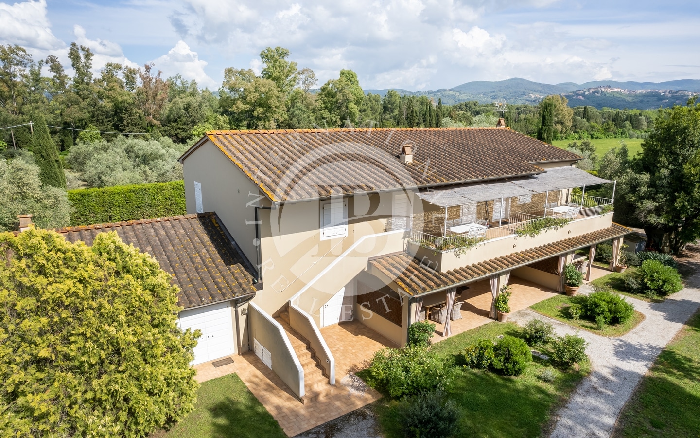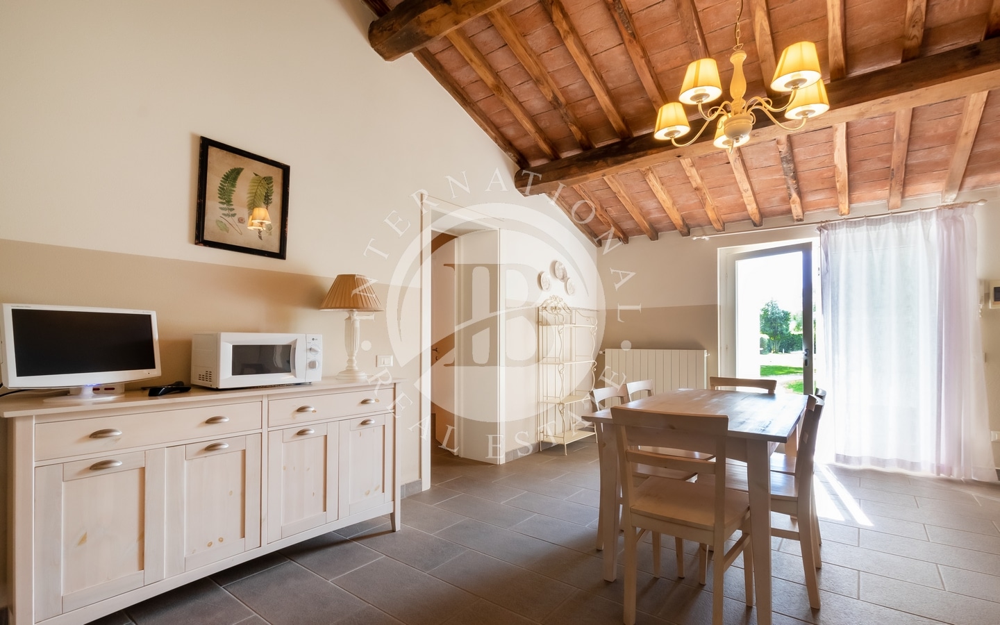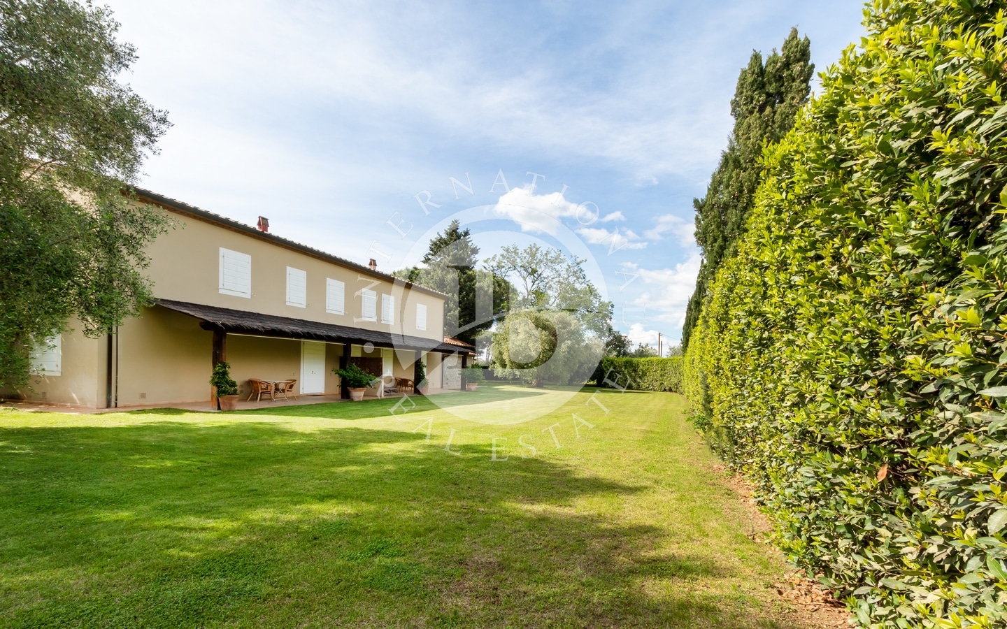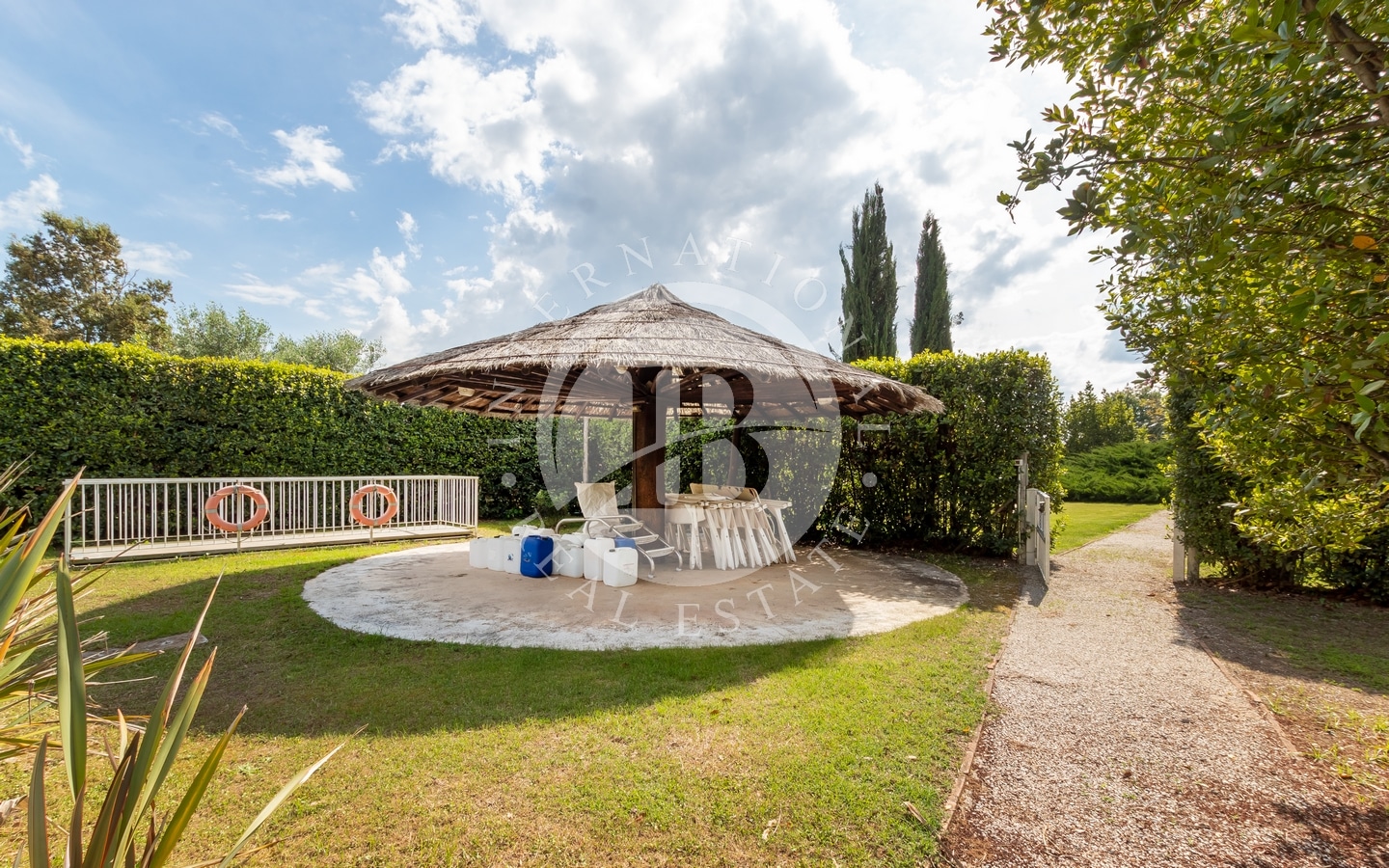 The private garden of about 1 hectare contains a swimming pool and sunbathing area, perfect for relaxation. The variety of plants and trees, together with the olive groves, creates an atmosphere of serenity and beauty. The prestigious wine cellar, with a quality vinegar cellar, completes the property, offering the possibility of tasting fine wines and vinegars directly on site.