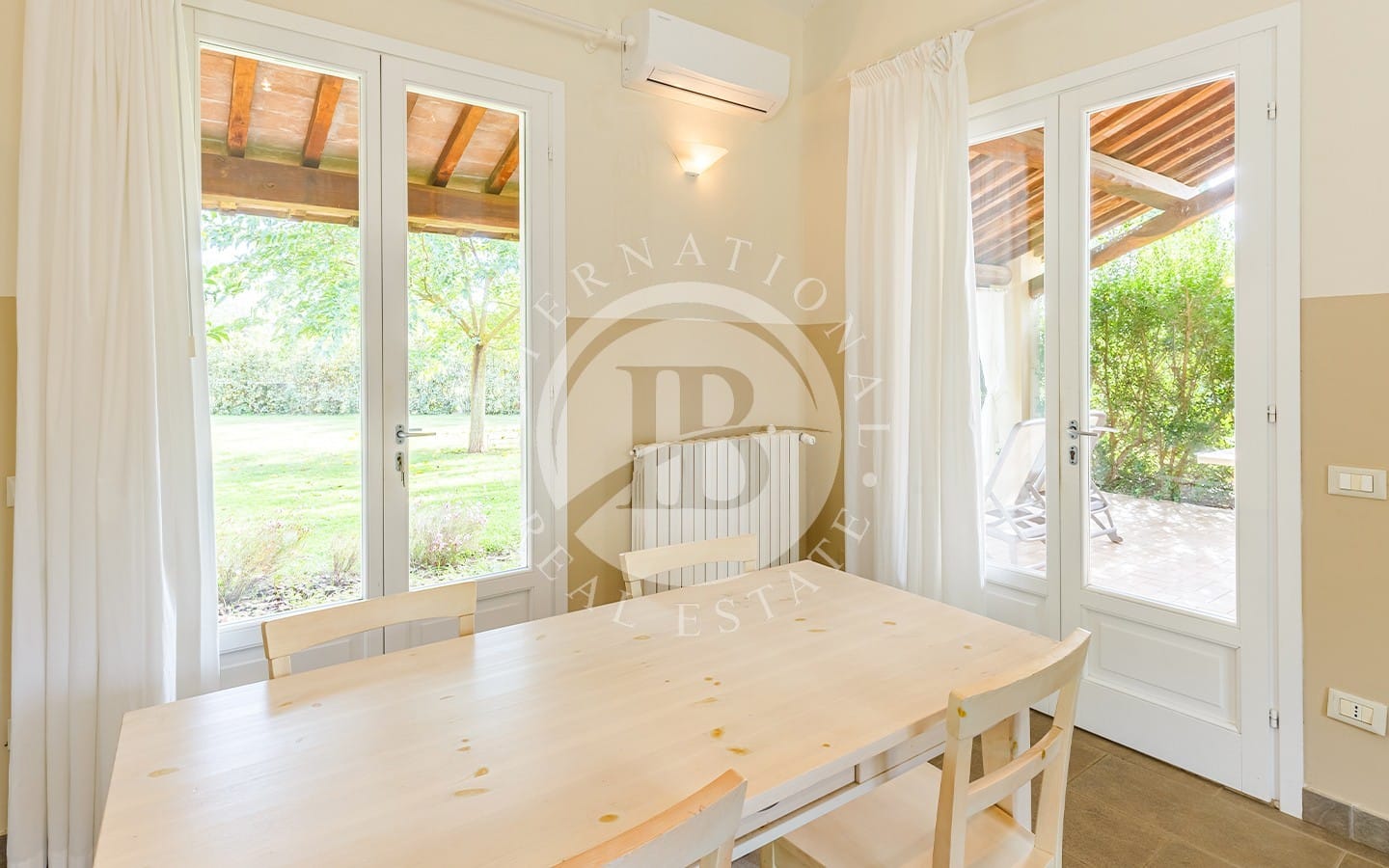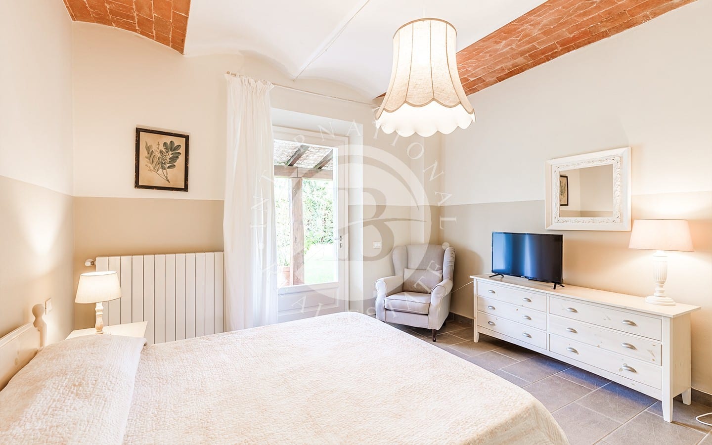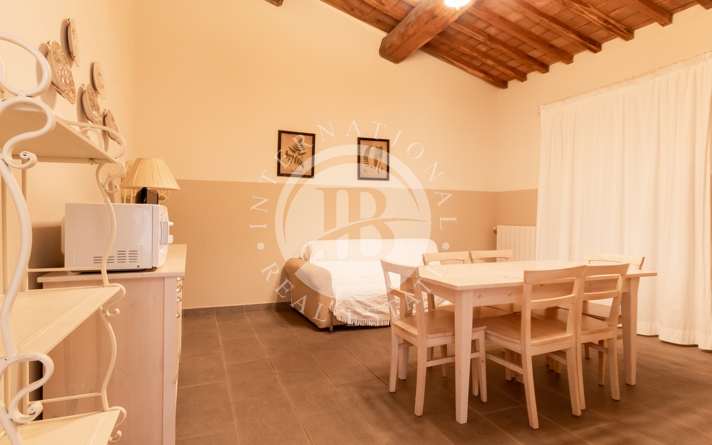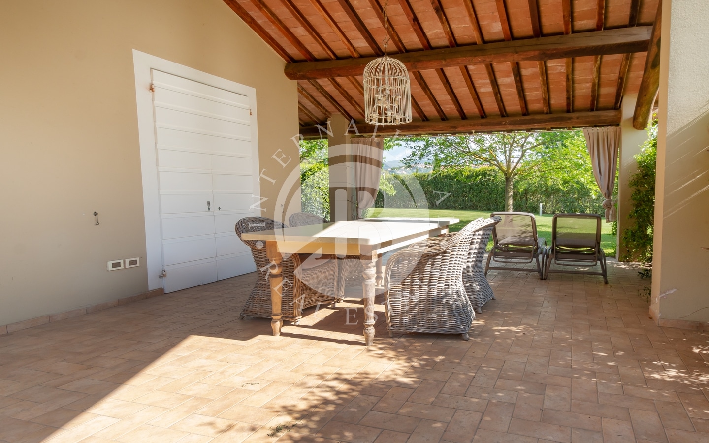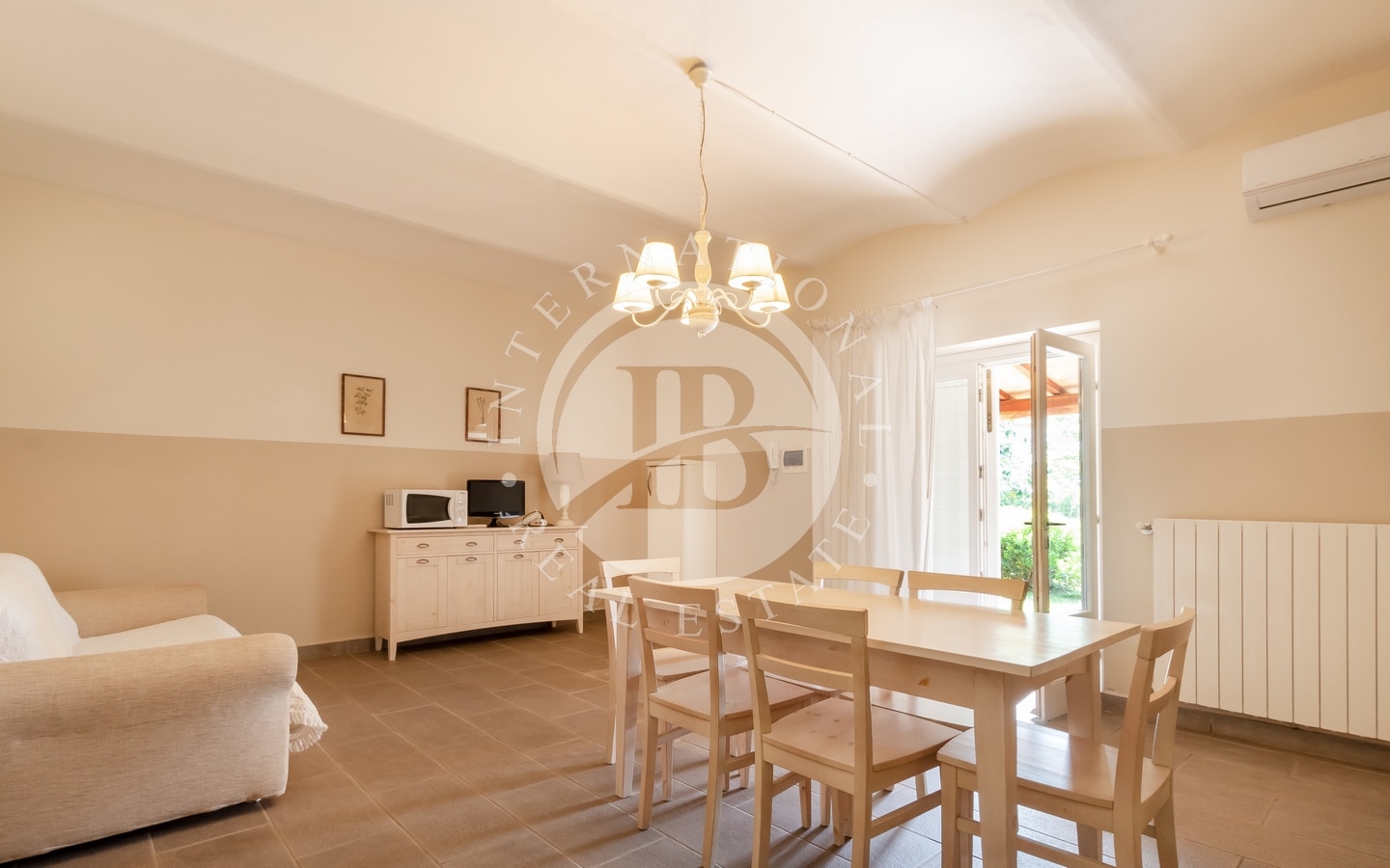 The private garden of about 1 hectare contains a swimming pool and sunbathing area, perfect for relaxation. The variety of plants and trees, together with the olive groves, creates an atmosphere of serenity and beauty. The prestigious wine cellar, with a quality vinegar cellar, completes the property, offering the possibility of tasting fine wines and vinegars directly on site.