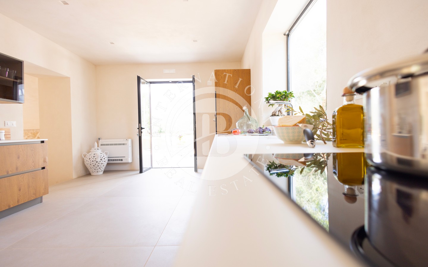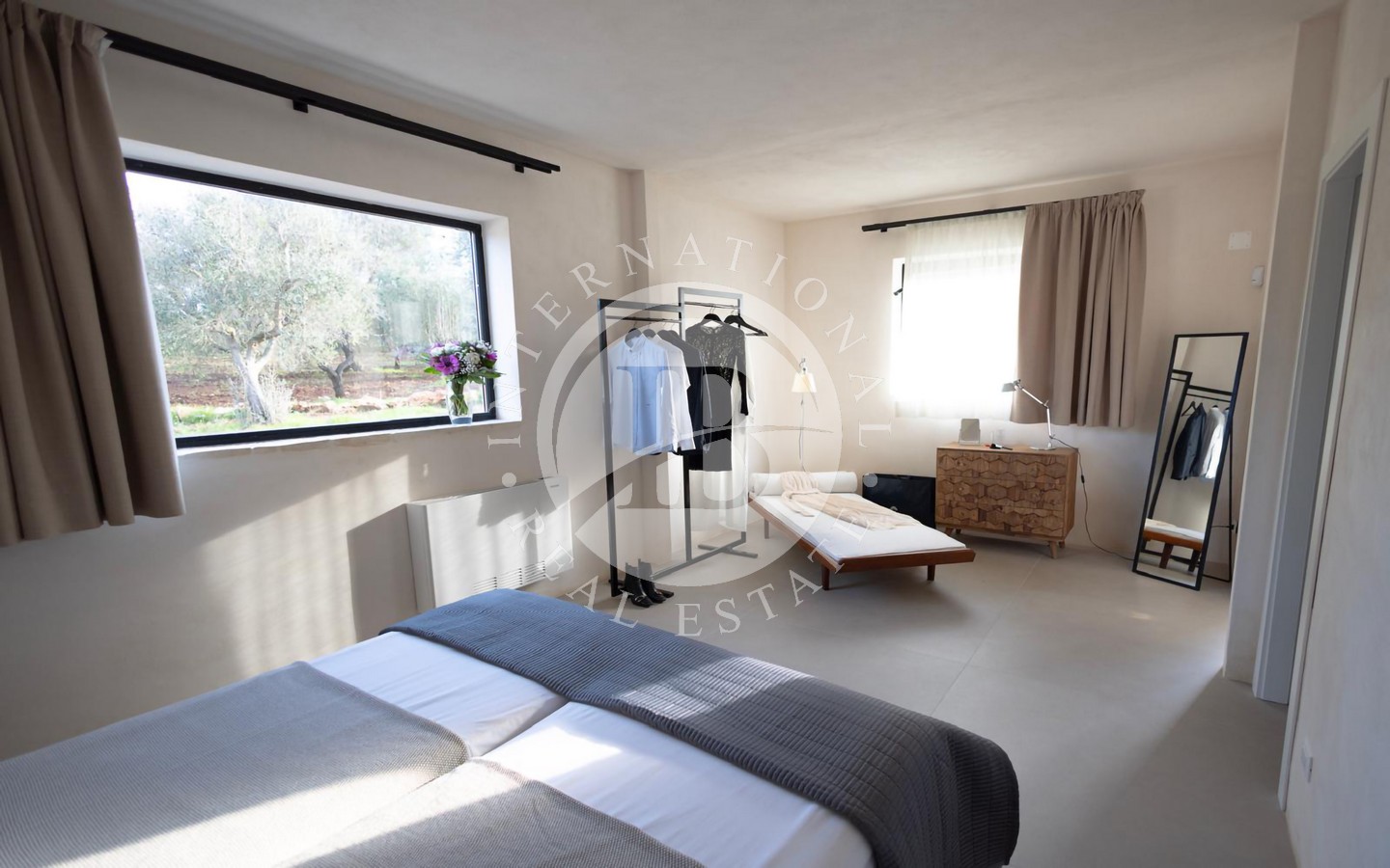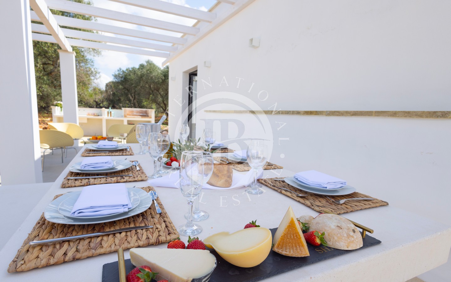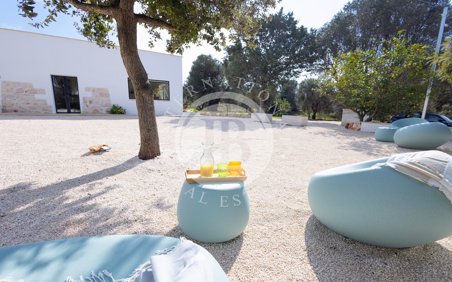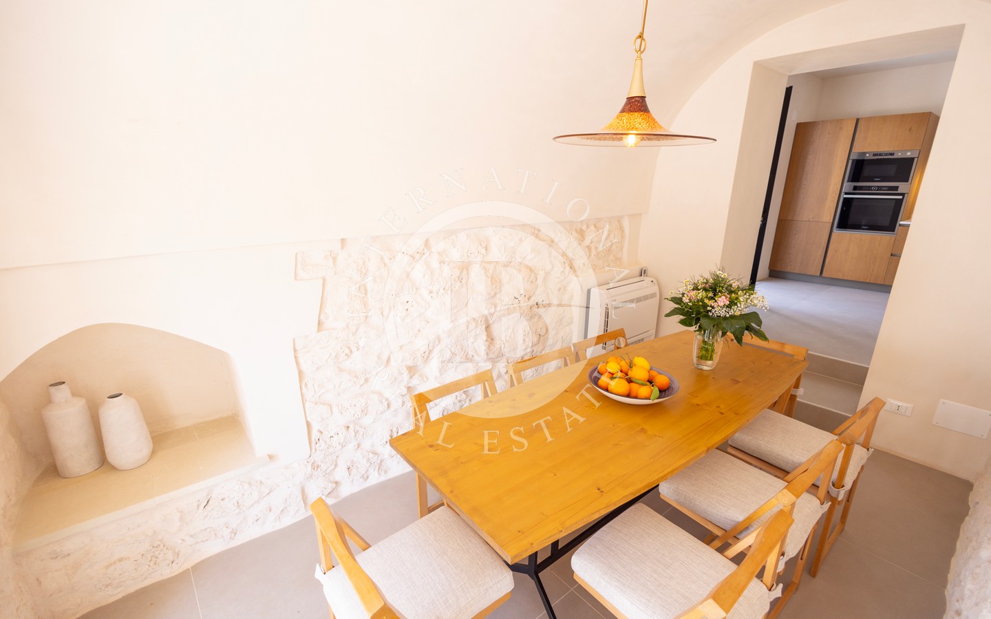 The large outdoor area is enriched by a ten-by-four metre swimming pool with a stone sunbathing area, immersed in the tranquillity of the olive trees, and a practical outdoor laundry room. A small trullo, restored and left in its authentic simplicity, is now used as a wood-burning oven, adding further charm to the property.