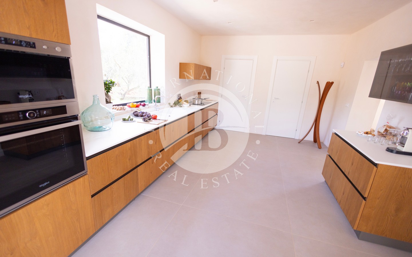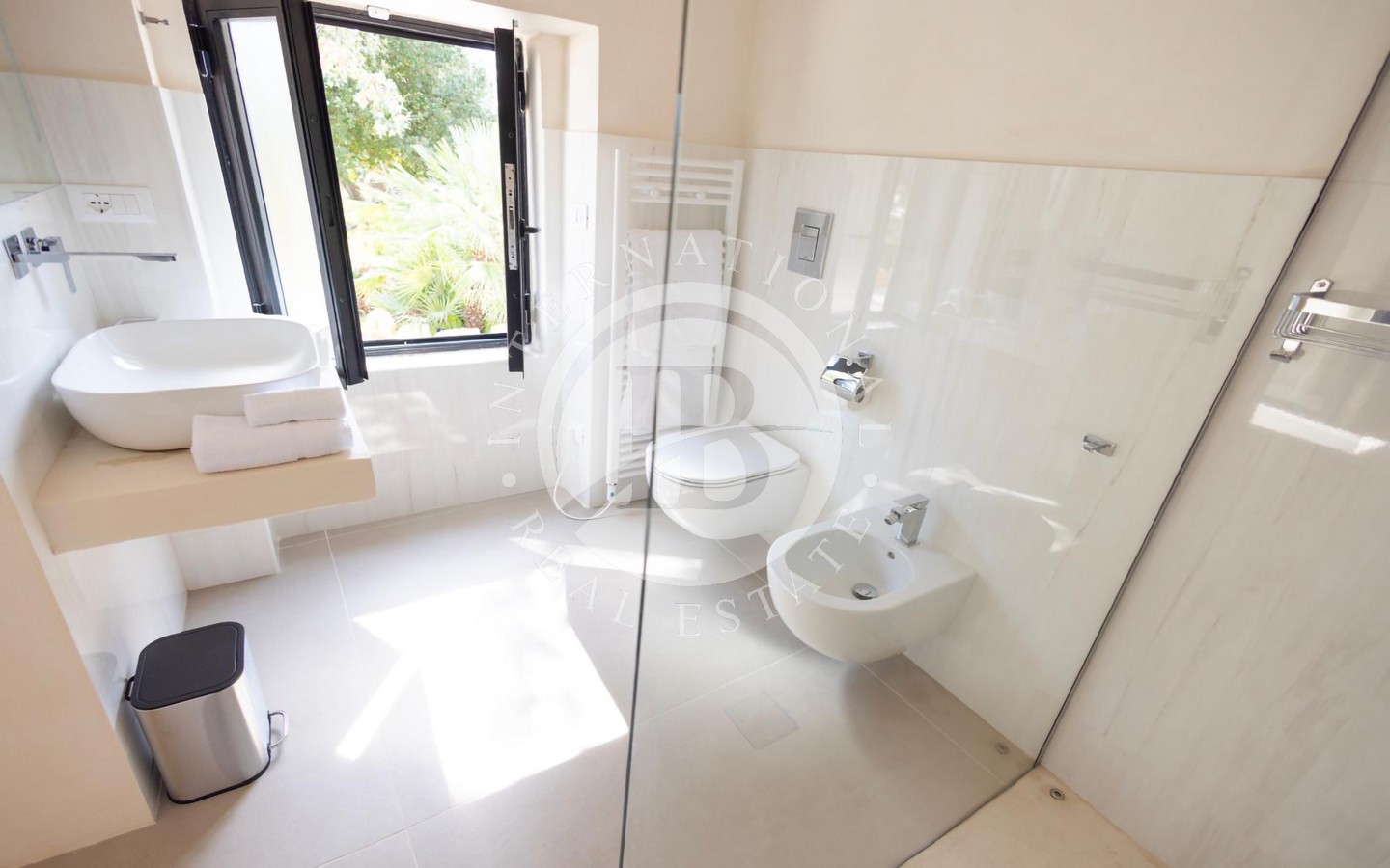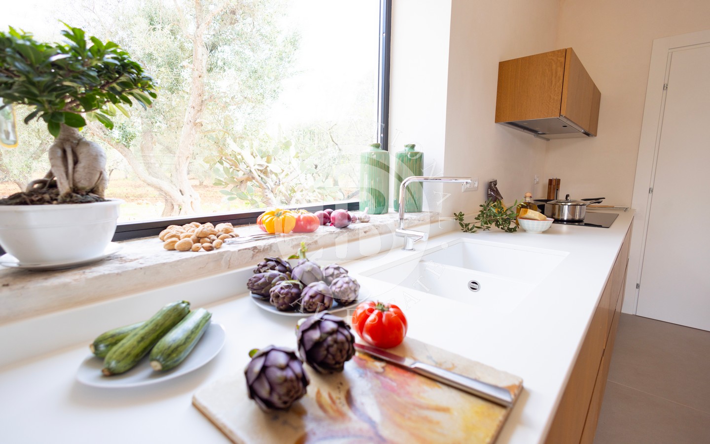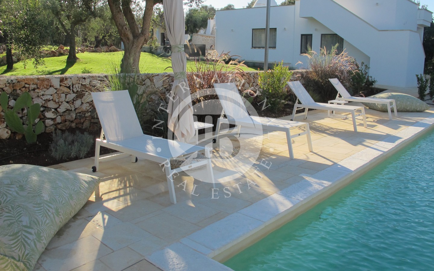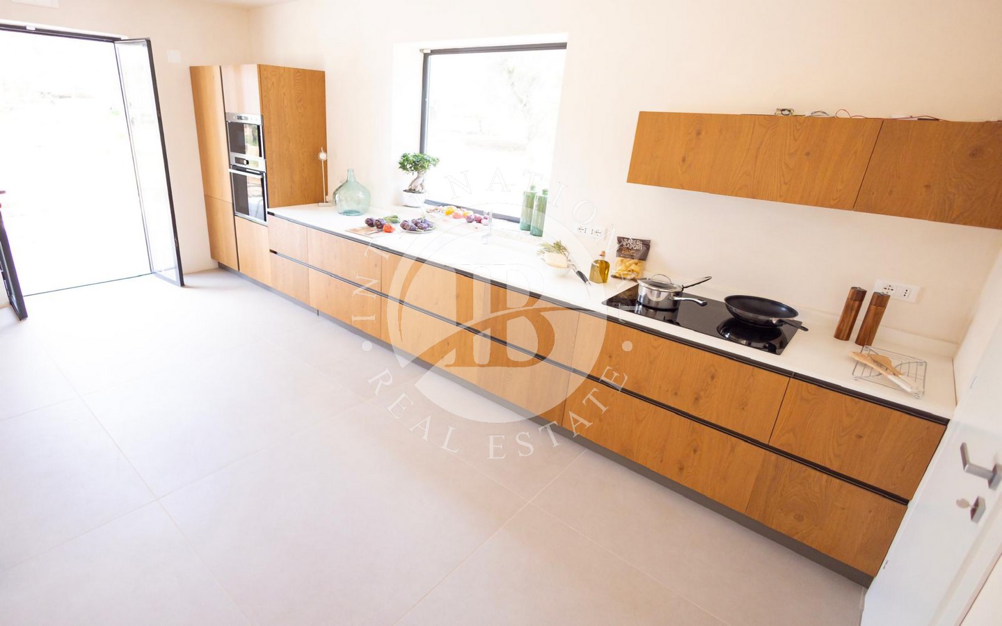 The large outdoor area is enriched by a ten-by-four metre swimming pool with a stone sunbathing area, immersed in the tranquillity of the olive trees, and a practical outdoor laundry room. A small trullo, restored and left in its authentic simplicity, is now used as a wood-burning oven, adding further charm to the property.