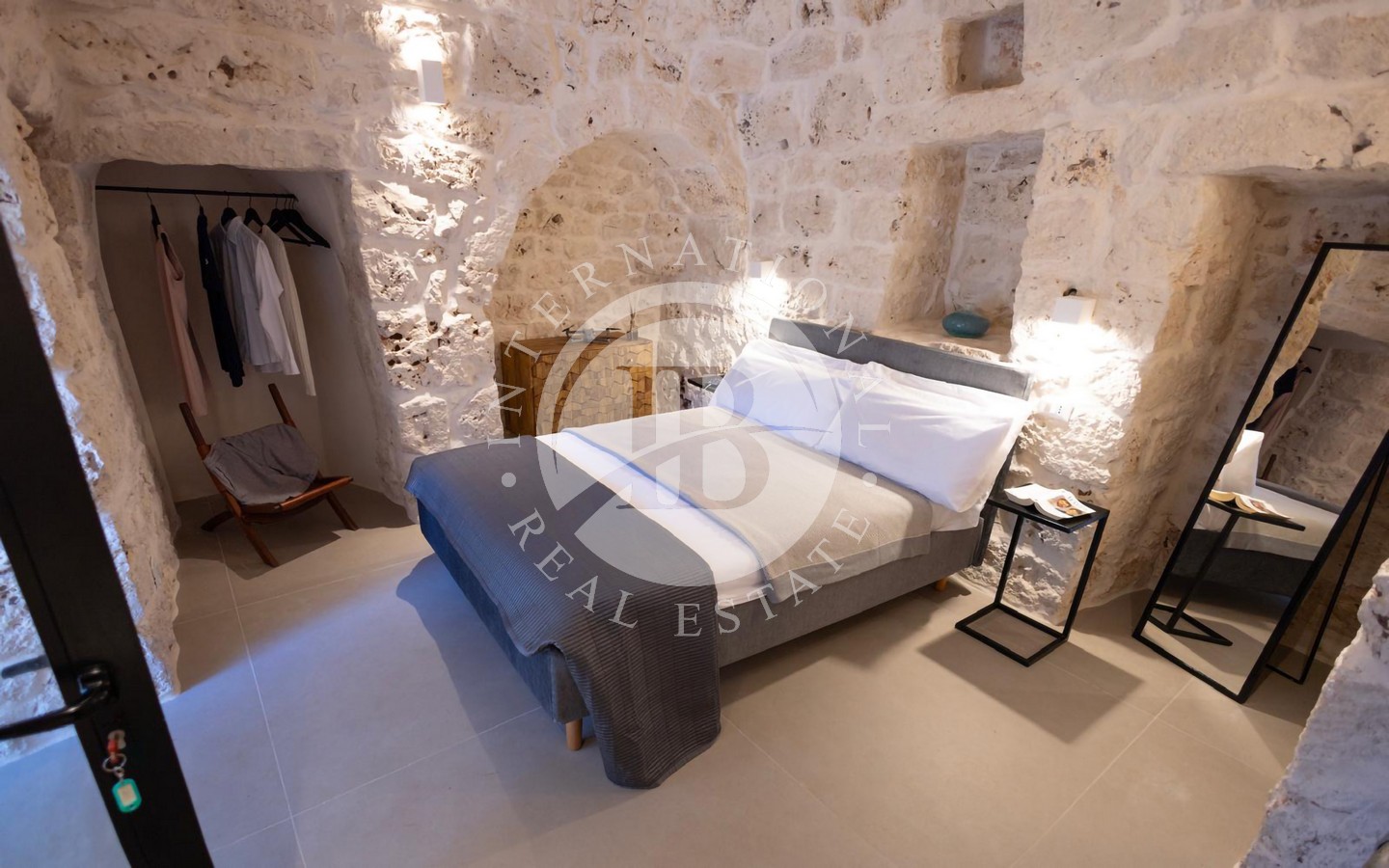 Questa proprietà unica è il risultato di una sapiente ristrutturazione che ha trasformato un antico rudere in una residenza raffinata, in equilibrio tra tradizione e comfort contemporaneo. Circondata da oltre 25.000 metri quadrati di uliveto, offre ambienti curati nei minimi dettagli, con materiali autentici e finiture moderne. La dimora è composta da quattro camere da letto e quattro bagni, ognuno con ingresso indipendente, distribuiti tra il trullo originario e la lamia oggetto di ampliamento. L’antica lamia è stata trasformata in u…