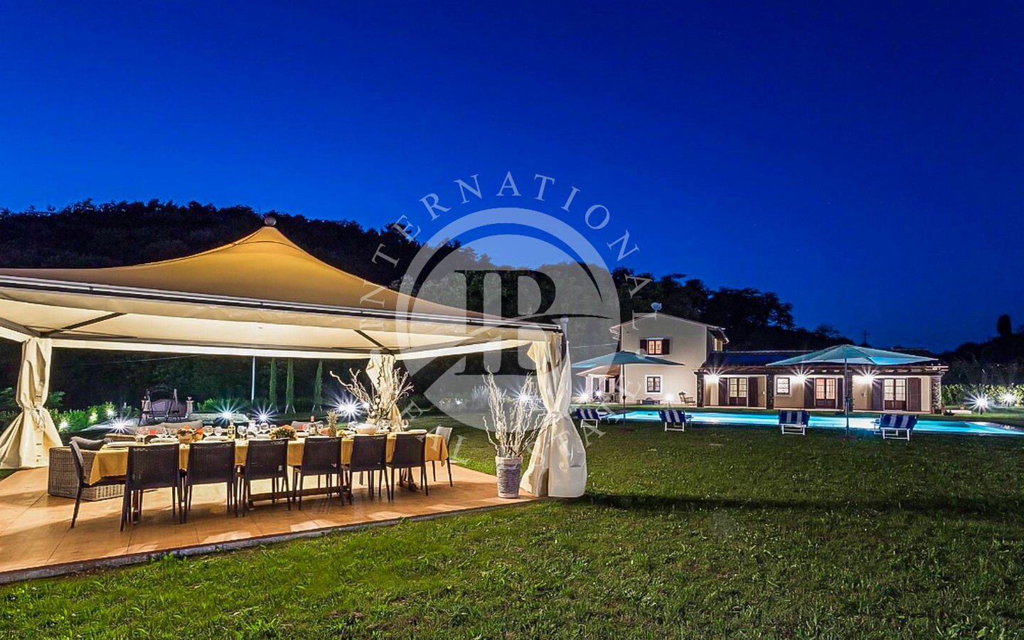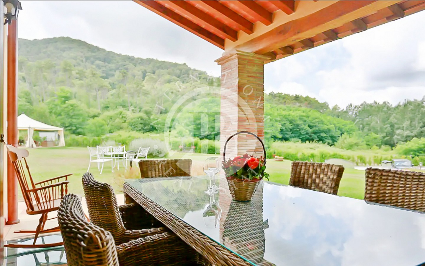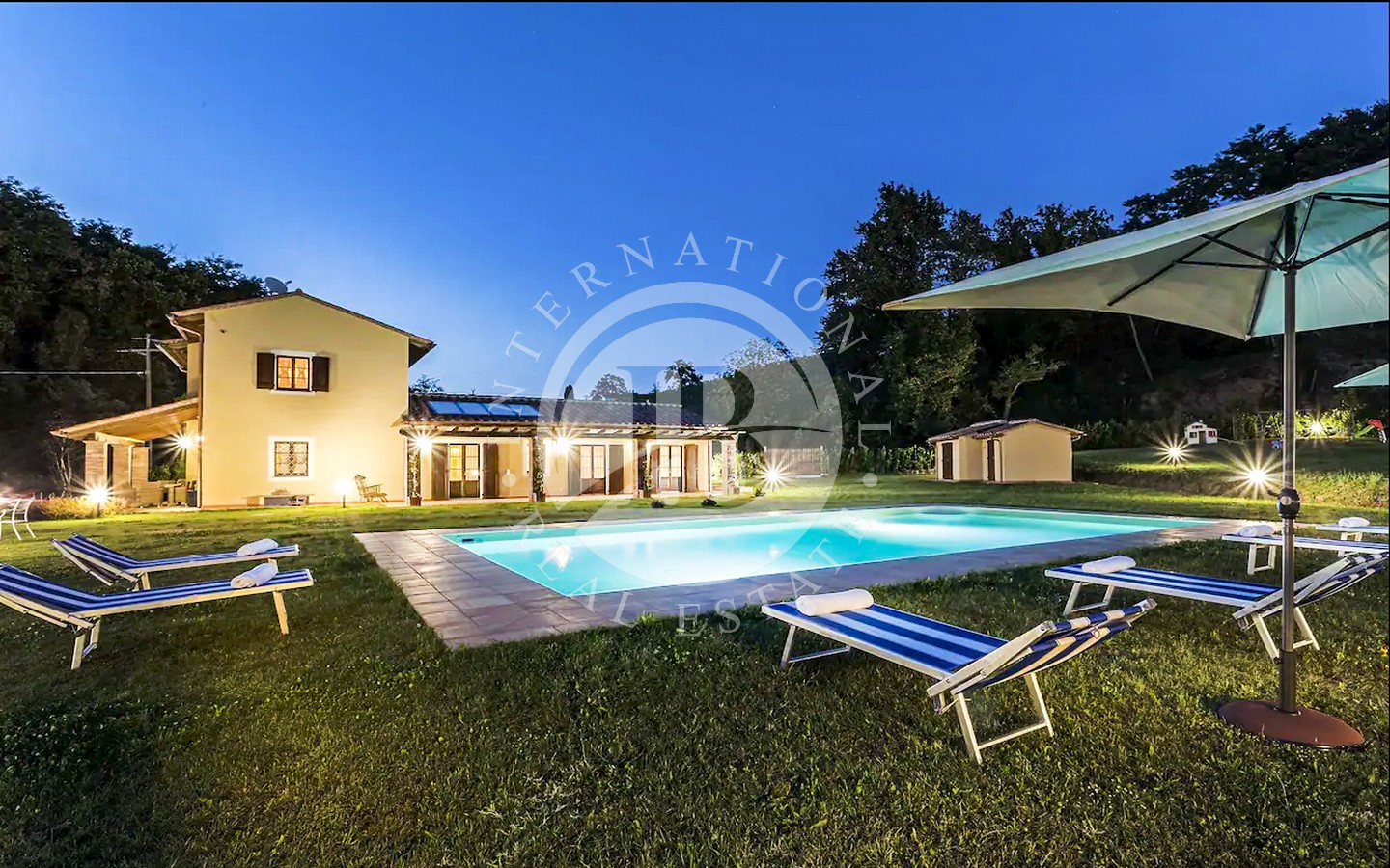 All'esterno, una maestosa piscina di 8 x 12 metri si estende nel rigoglioso giardino di 9000 mq, offrendo un luogo perfetto per rilassarsi e intrattenere. L'ottima esposizione regala una vista mozzafiato sulla campagna toscana, mentre la privacy è garantita da una posizione privilegiata, lontana dagli sguardi indiscreti.