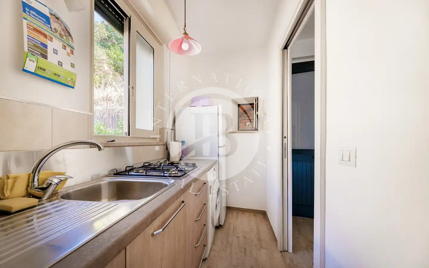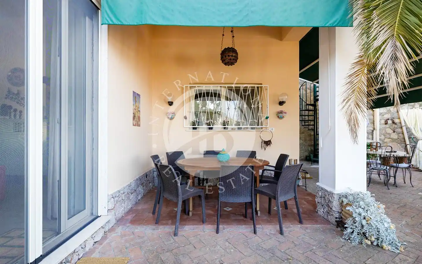 La proprietà è circondata da circa 450 mq di spazi esterni ben curati, arricchiti da vegetazione mediterranea, e dispone di due ingressi indipendenti (civici 25 e 33), con possibilità di realizzare un posto auto aggiuntivo.