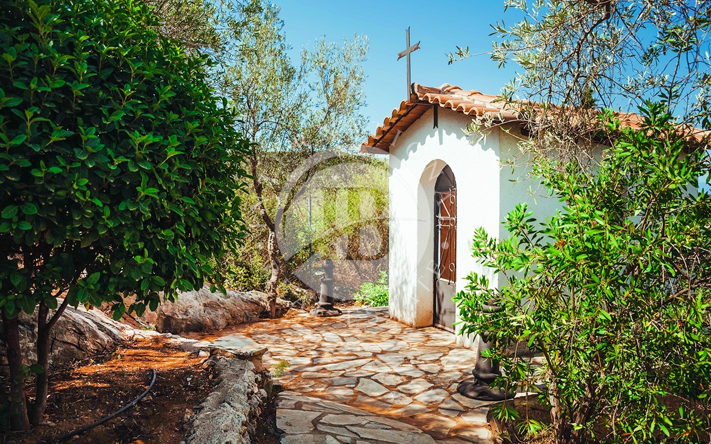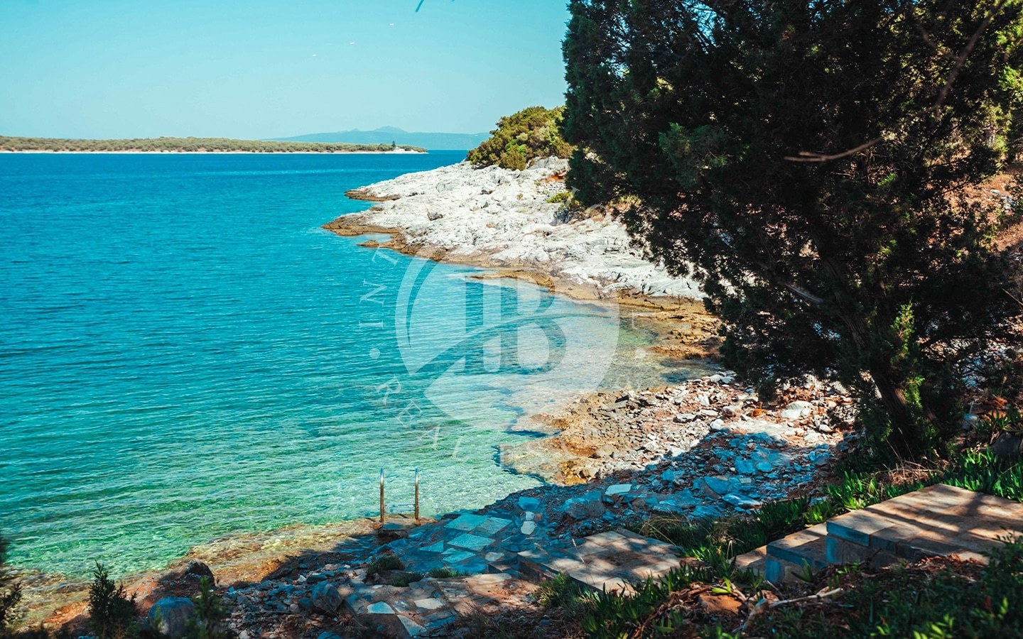 Accanto alla dependance c'è un grande frutteto; lungo la costa si trova la spiaggia privata di 185 m e un pontile privato per imbarcazioni.