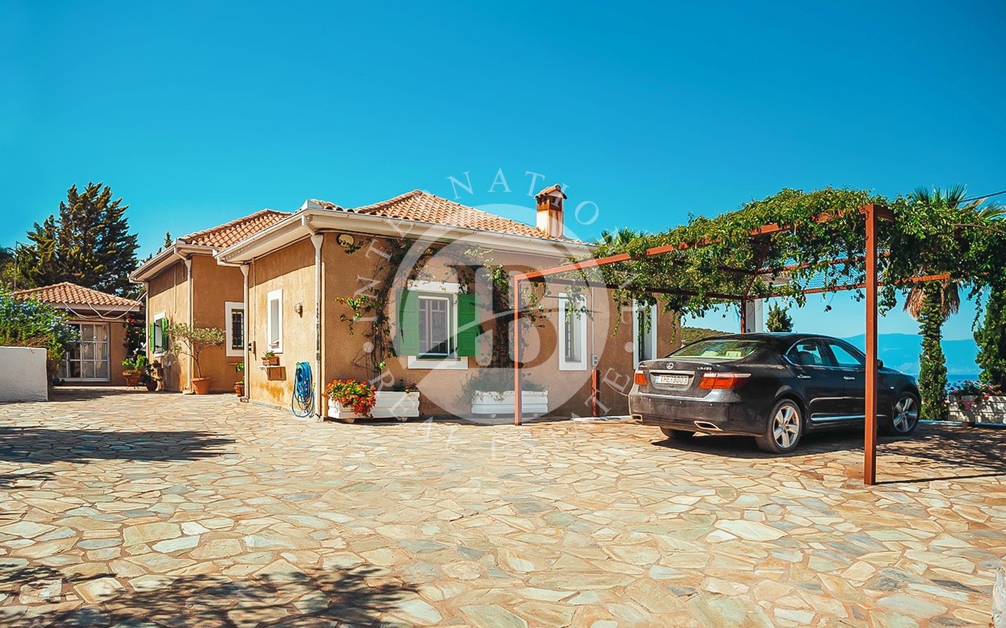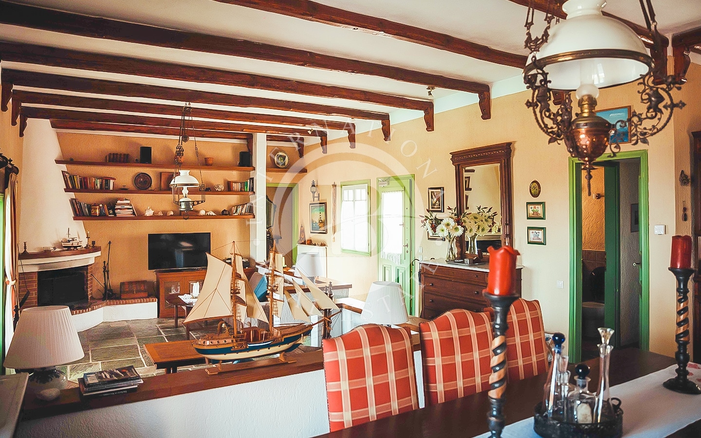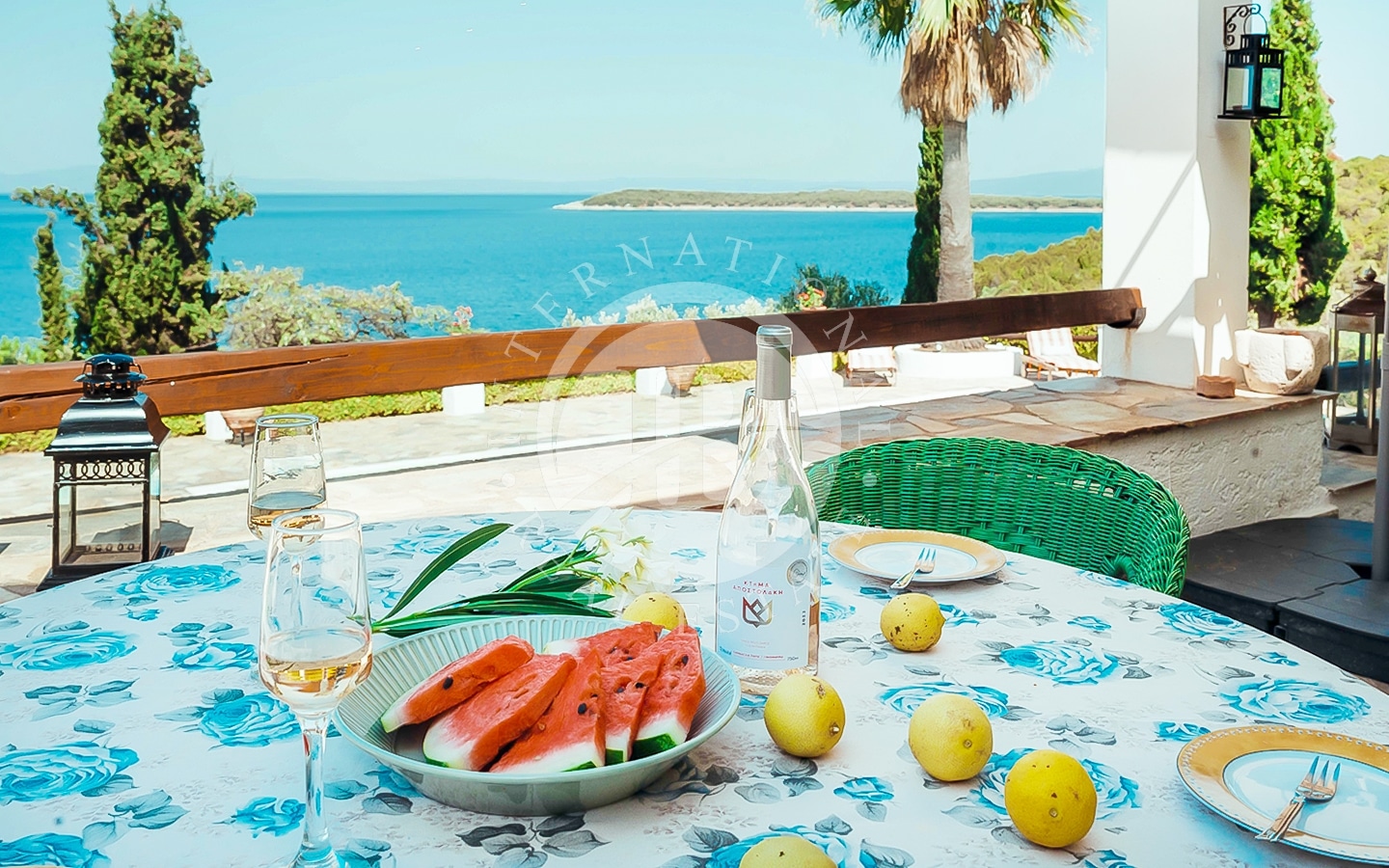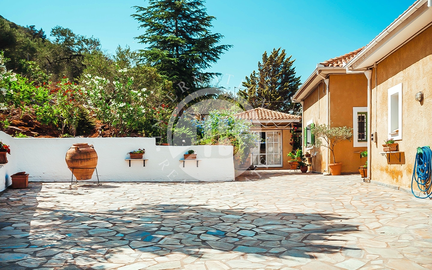 La proprietà consiste in due lotti di terreno con una spiaggia privata lunga 185 m, situata nella storica regione della Tessaglia sulla costa del Mar Egeo. Il primo lotto, di 4700 m², ospita due edifici: la villa principale di 240 m² e una dependance di 120 m². La villa principale si sviluppa su due piani. Al piano superiore ci sono un ampio soggiorno con camino e sala da pranzo, cucina, ripostiglio (dispensa per la cucina), un bagno per gli ospiti e una camera da letto principale con bagno privato e vista mare. Al piano inferiore si…