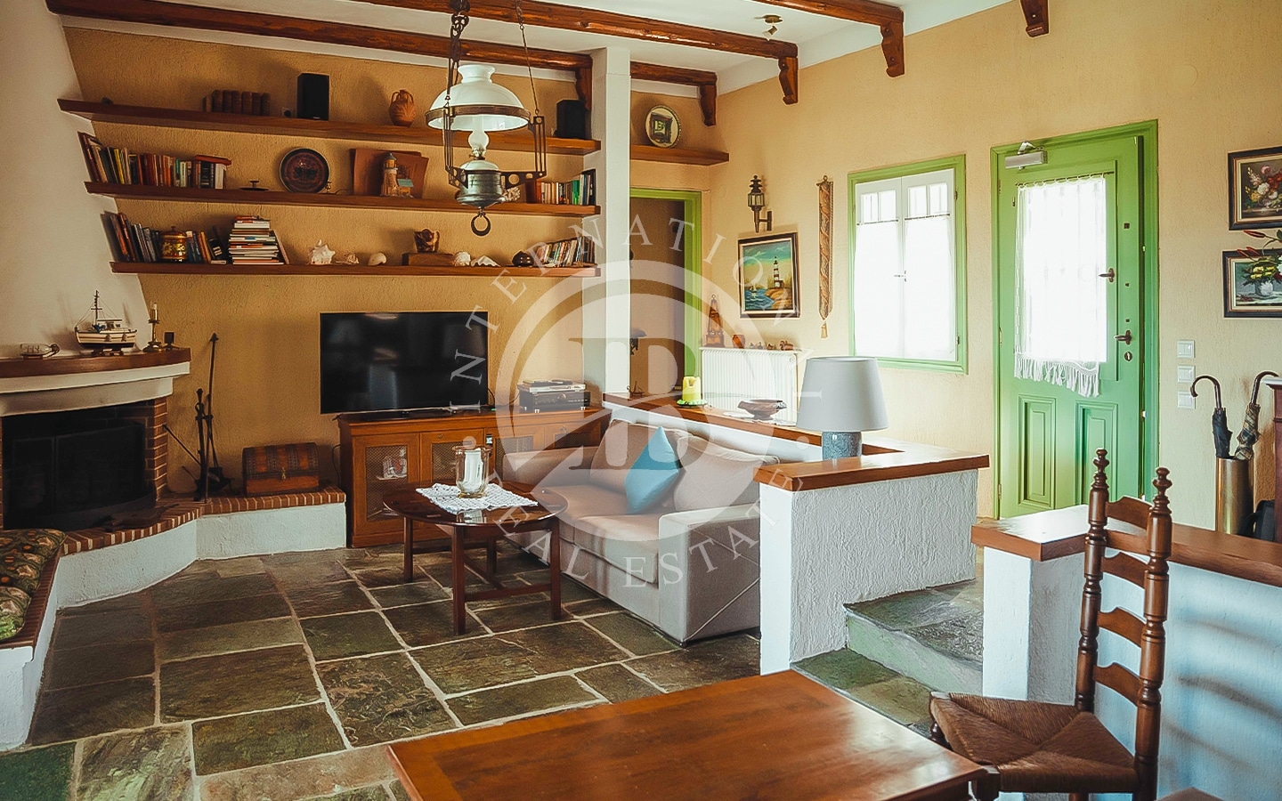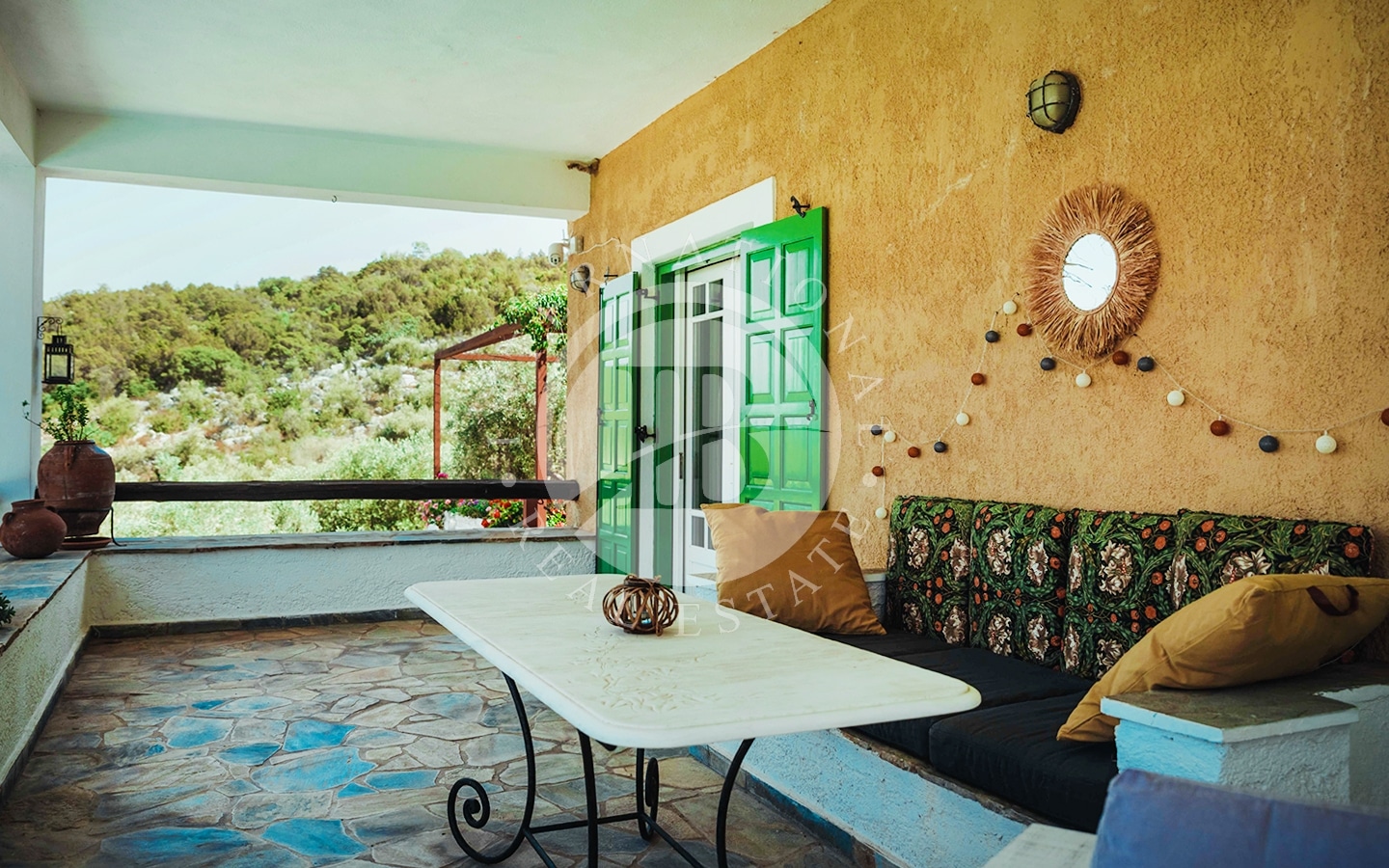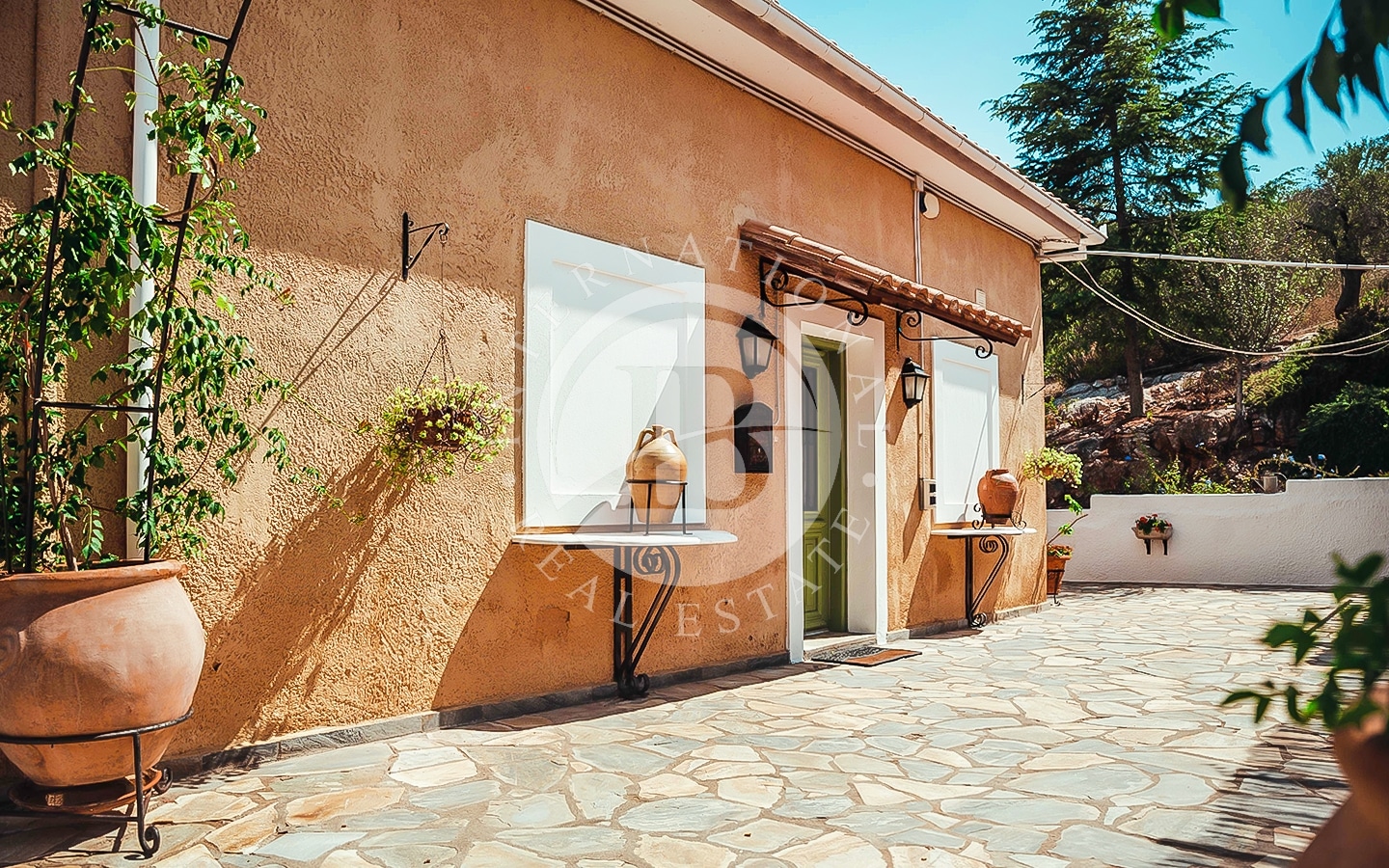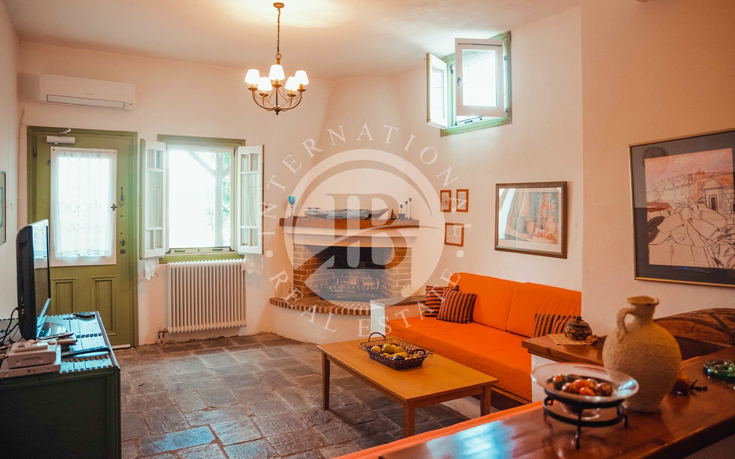 La proprietà consiste in due lotti di terreno con una spiaggia privata lunga 185 m, situata nella storica regione della Tessaglia sulla costa del Mar Egeo. Il primo lotto, di 4700 m², ospita due edifici: la villa principale di 240 m² e una dependance di 120 m². La villa principale si sviluppa su due piani. Al piano superiore ci sono un ampio soggiorno con camino e sala da pranzo, cucina, ripostiglio (dispensa per la cucina), un bagno per gli ospiti e una camera da letto principale con bagno privato e vista mare. Al piano inferiore si…