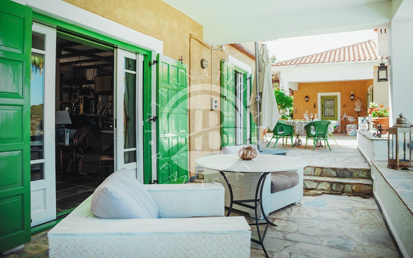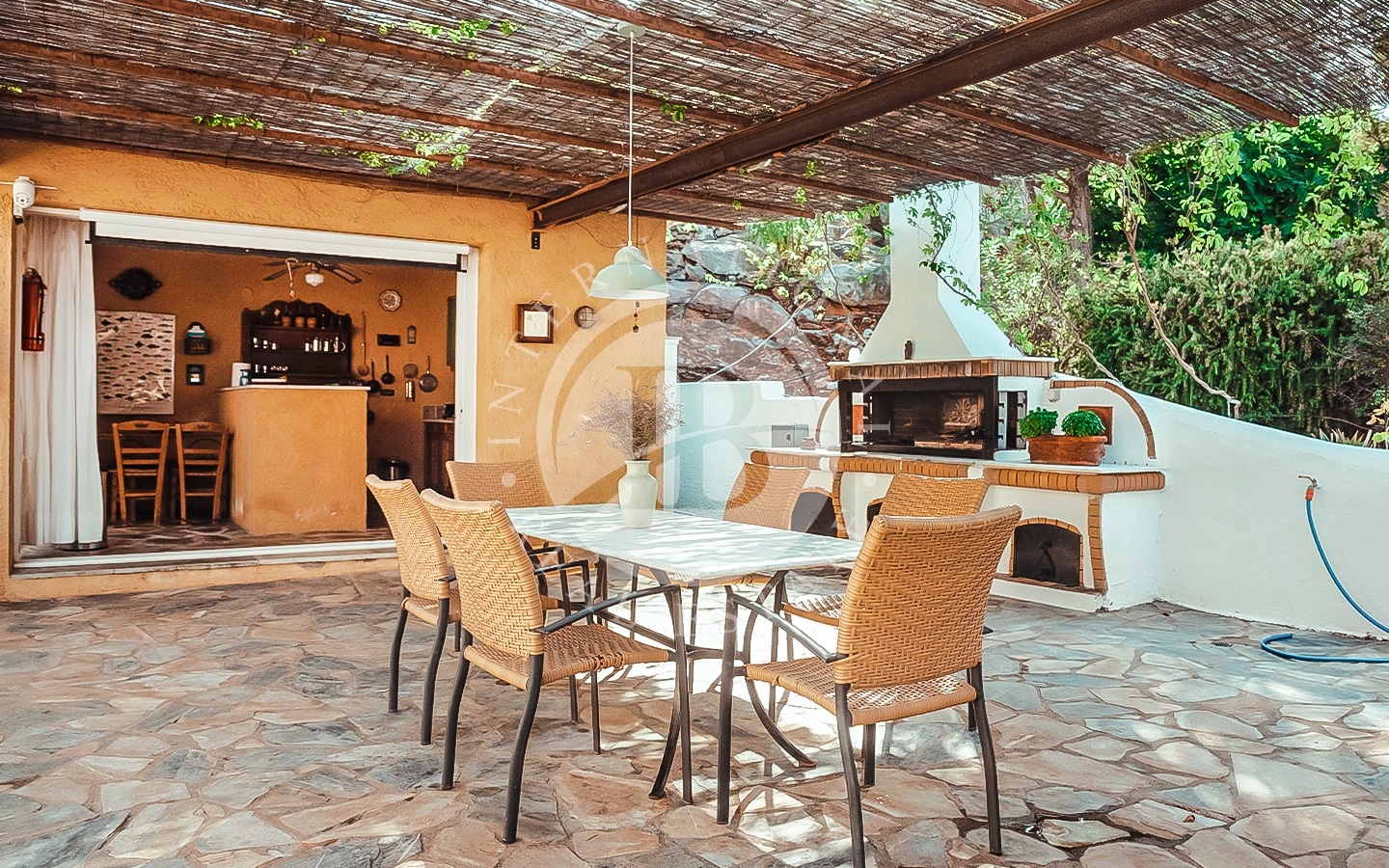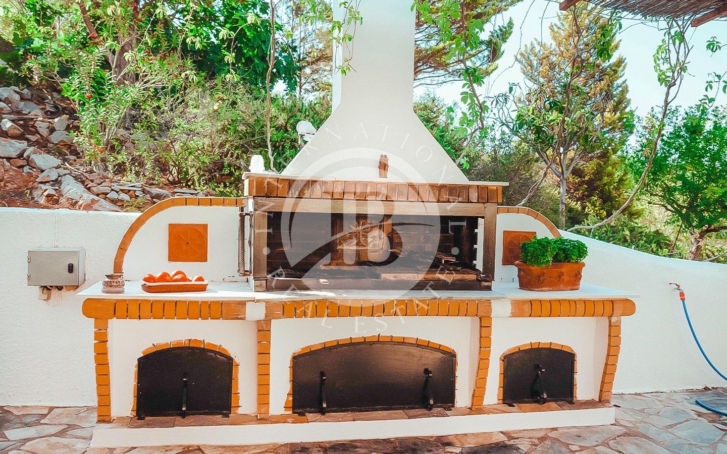 L'edificio principale dispone di una terrazza di 25 m², una piscina all'aperto con acqua salata delle dimensioni di 10 m x 5 m, una cucina estiva con area barbecue e locali accessori per un totale di 100 m². Sono presenti 3 aree relax attrezzate nel giardino.