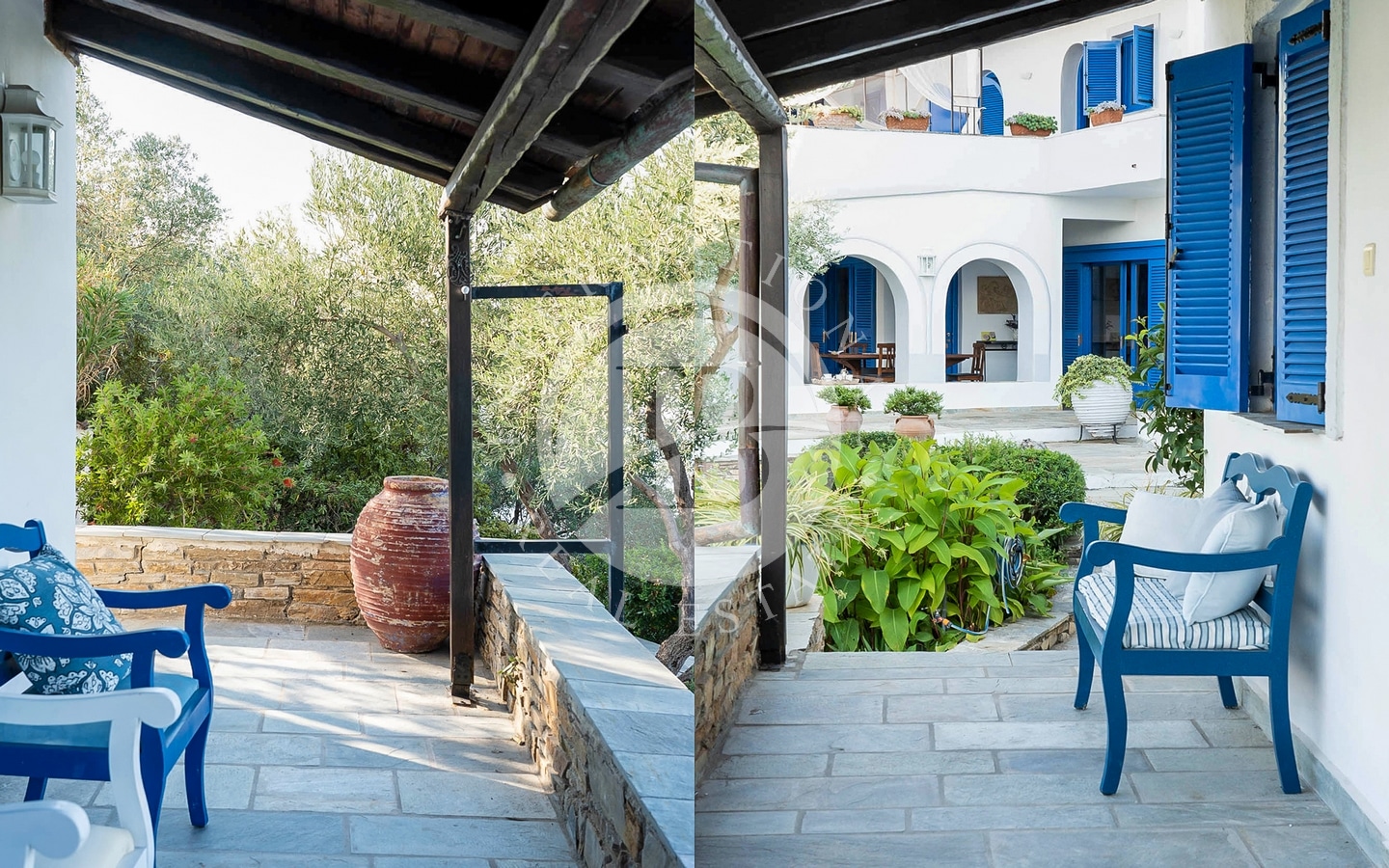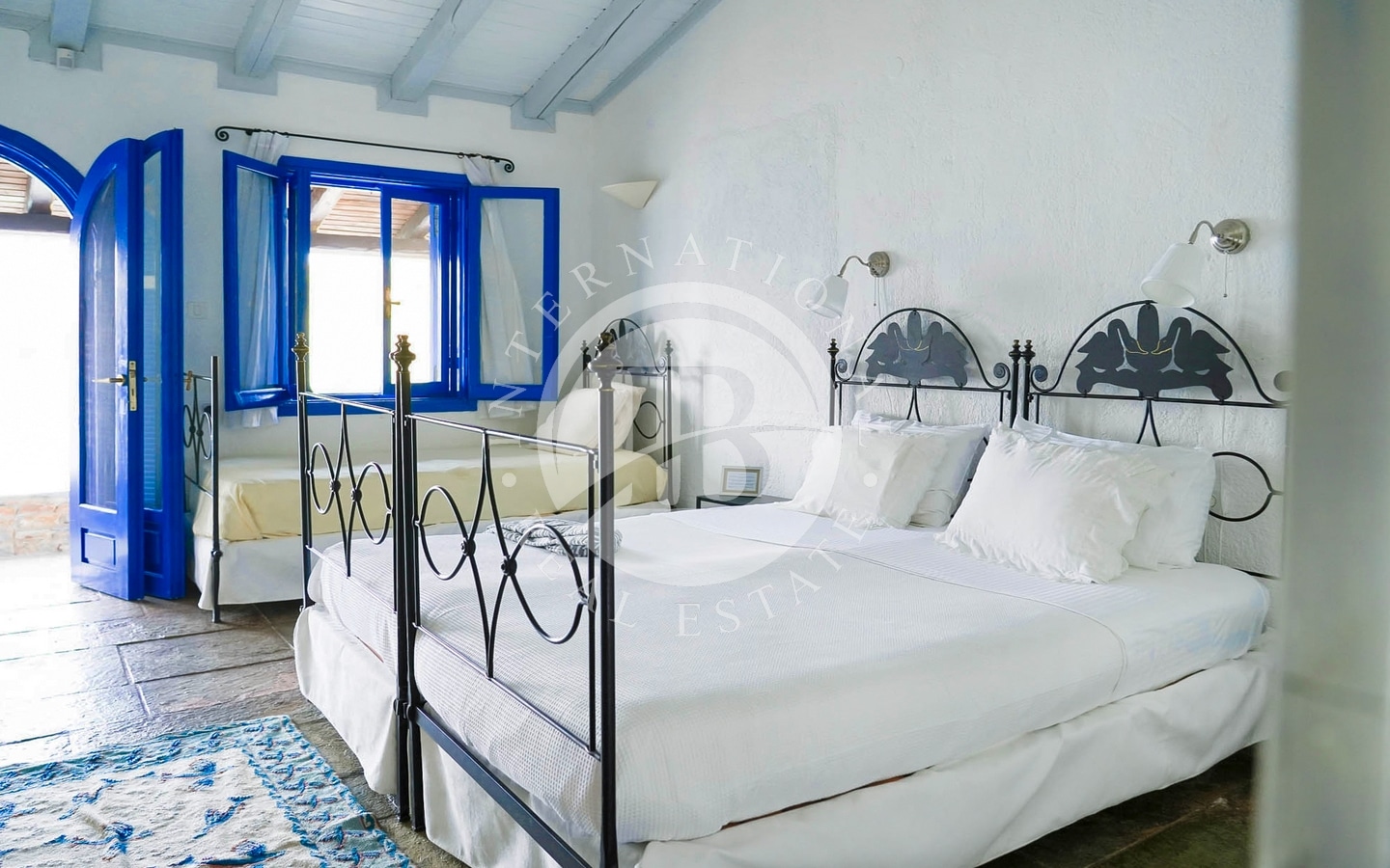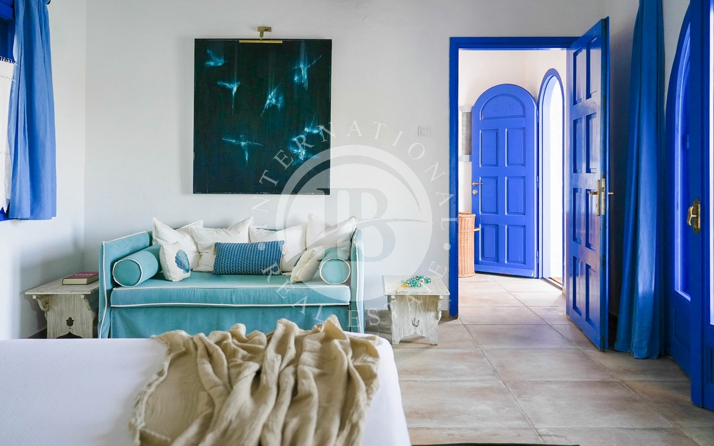 Con una spiaggia privata di sabbia e giardini lussureggianti, questa villa unisce natura e lusso. Conserva lo stile greco tradizionale, con tegole fatte a mano, pareti imbiancate a calce e pavimenti in pietra.