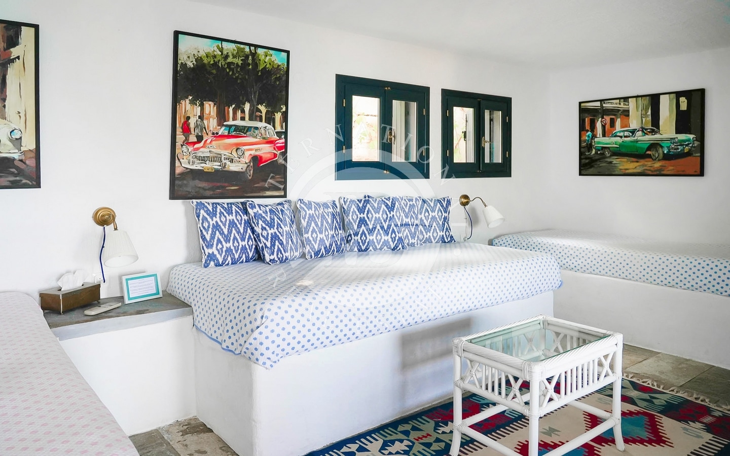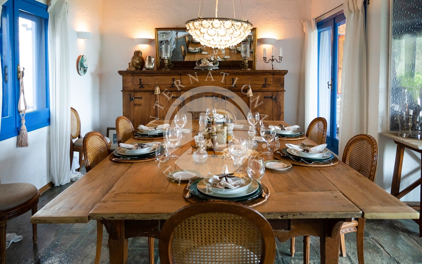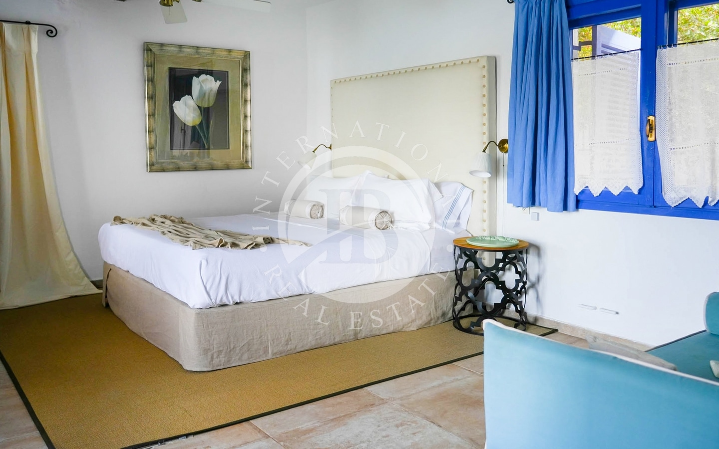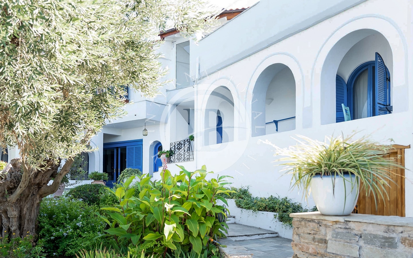 Con una spiaggia privata di sabbia e giardini lussureggianti, questa villa unisce natura e lusso. Conserva lo stile greco tradizionale, con tegole fatte a mano, pareti imbiancate a calce e pavimenti in pietra.