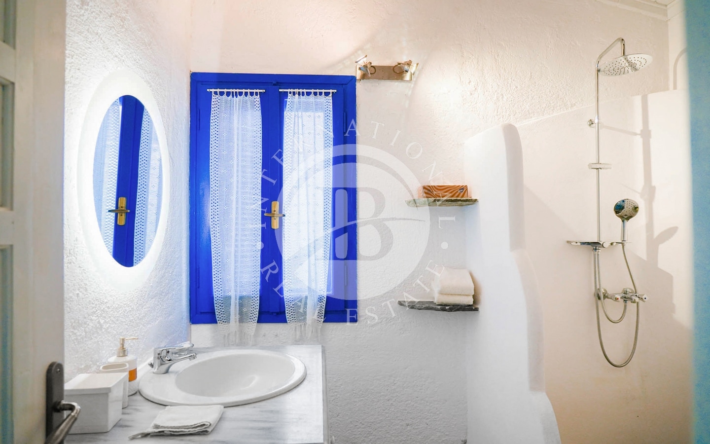 La suite principale include un ufficio privato con area salotto e cabine armadio. Ci sono 2 bagni – “lui” e “lei” – ciascuno dotato di vasca da bagno, doccia walk-in, bidet e WC. Un terrazzo rooftop della master suite offre viste mozzafiato sul mare. La camera "Seaside" è dotata di un letto matrimoniale, cabina armadio e bagno privato con doccia. La camera “Neptune” presenta un letto matrimoniale, cabina armadio e bagno privato con doccia, vasca da bagno e un piccolo spazio esterno con magnifiche vedute sul mare. Una camera singola con ingresso riservato e bagno privato completo di doccia. La camera dei bambini è arredata con 3 letti singoli, un ampio armadio e bagno privato con doccia e vasca da bagno. La villa dispone di una cucina professionale da chef, locale di stoccaggio alimenti e cantina, oltre a una lavanderia separata.