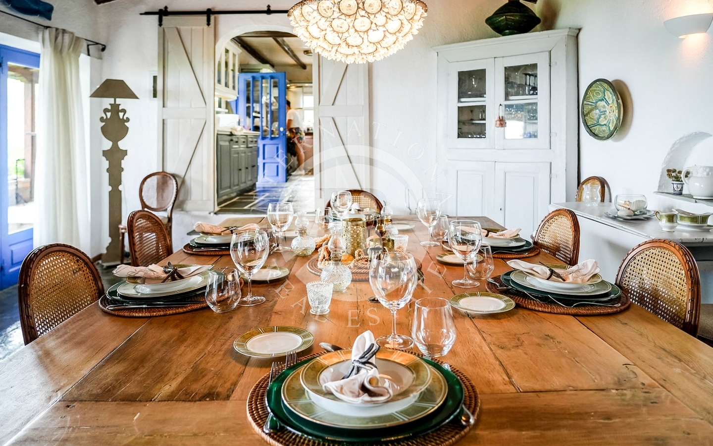 La villa principale presenta un ampio soggiorno con camino. Tutte le aree sono dotate di unità di aria condizionata o ventilatori a soffitto per il massimo comfort. L'interno elegante della villa fonde semplicità ed eleganza con il lusso.
