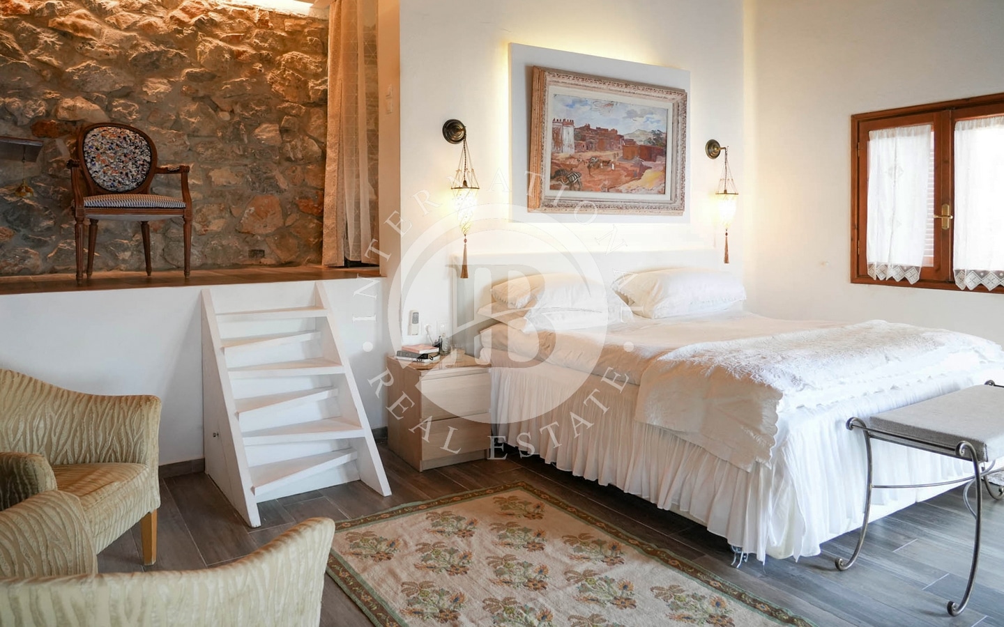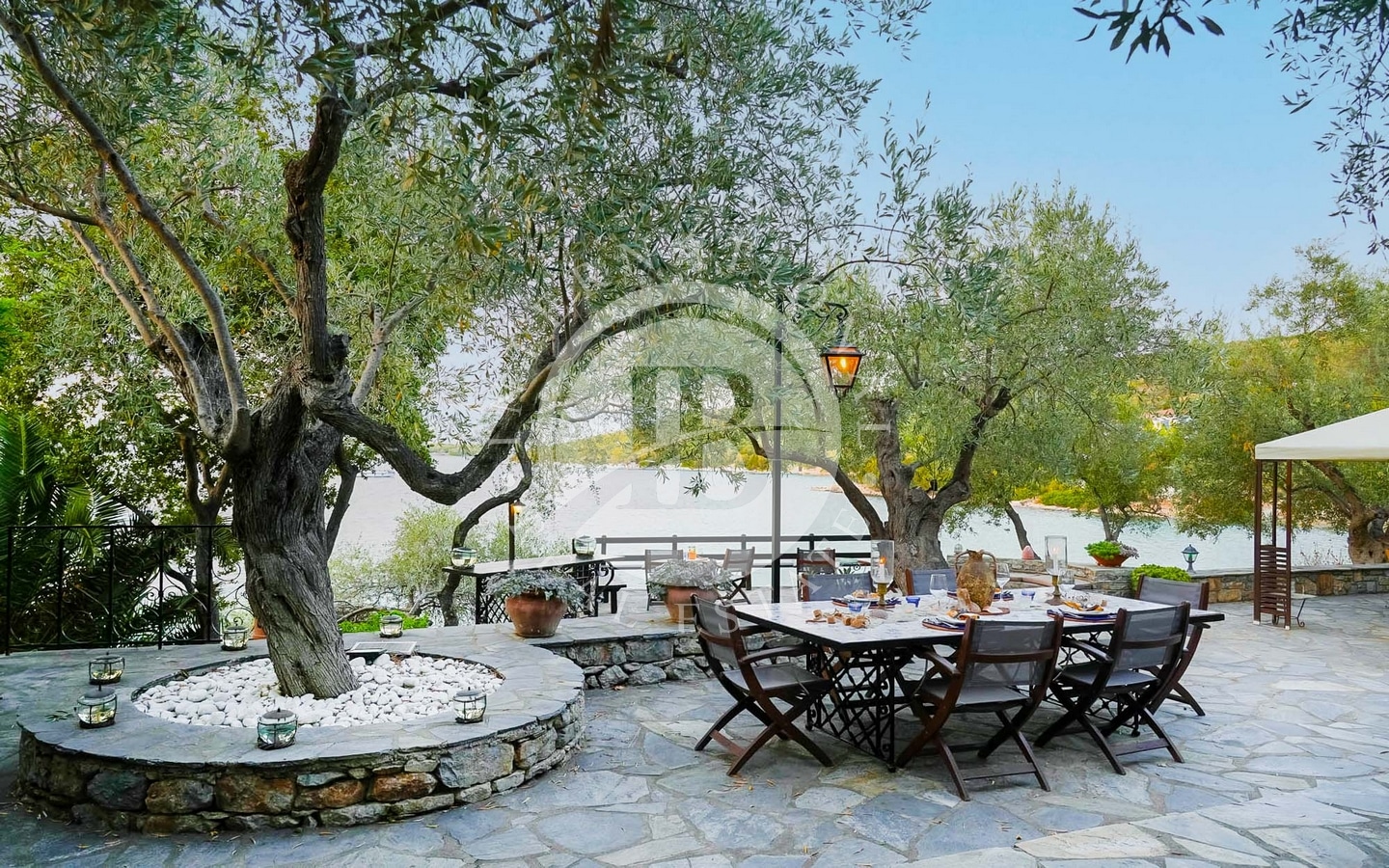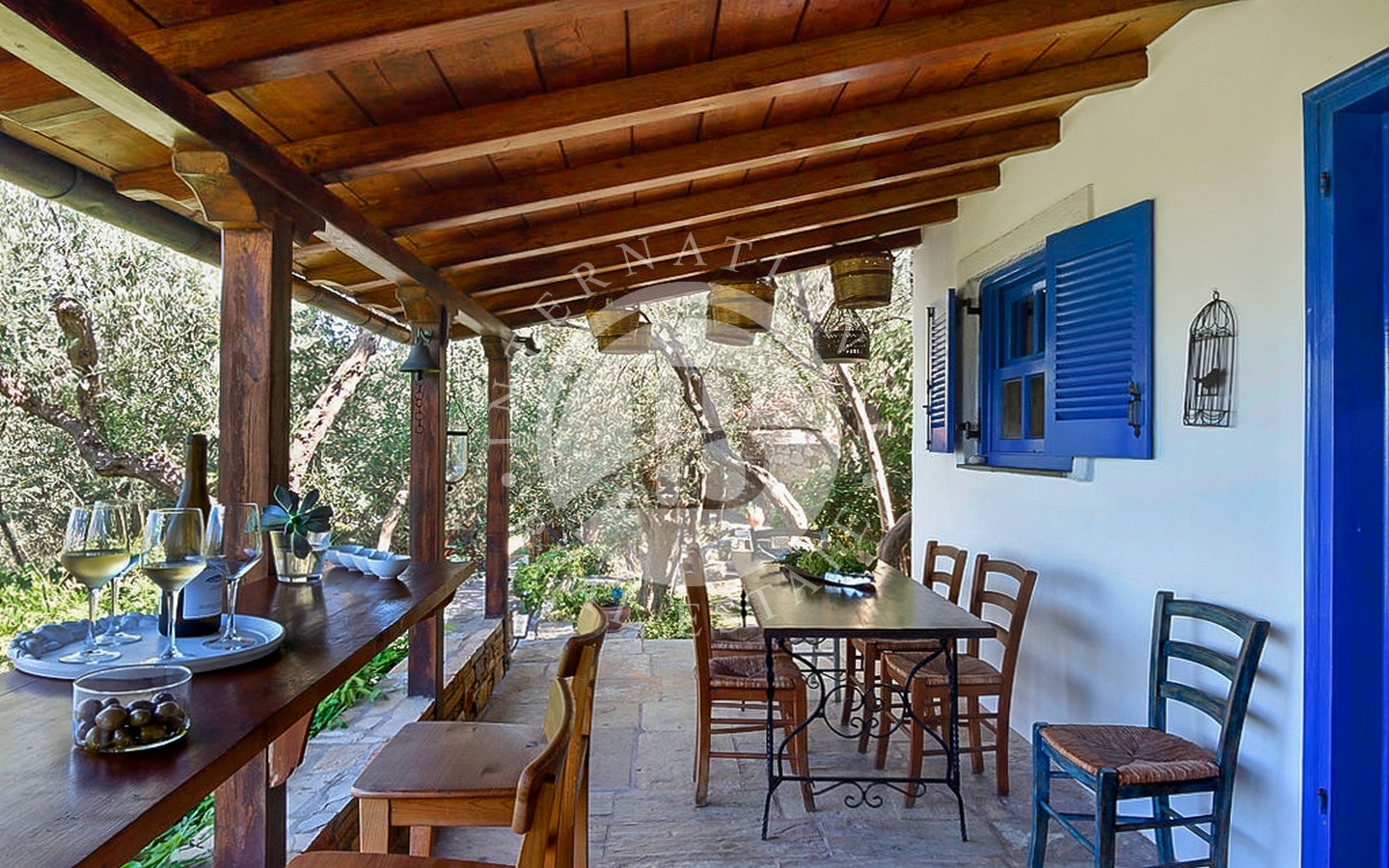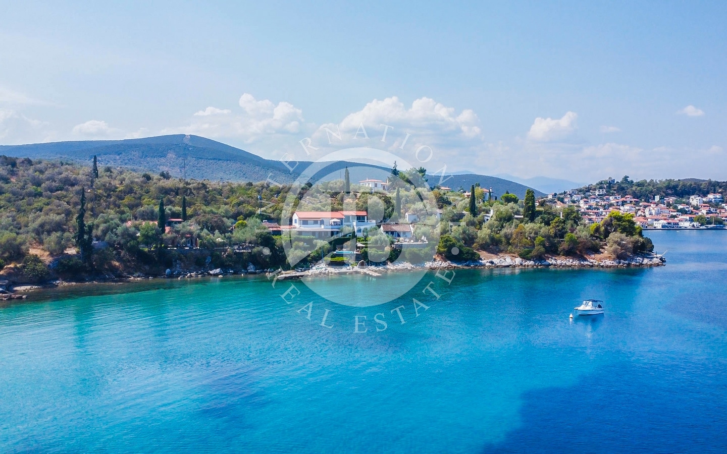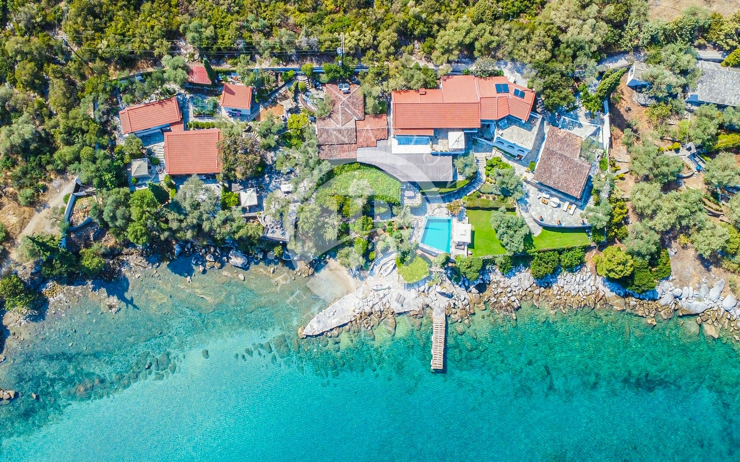 Esterni Questa straordinaria proprietà fronte mare include una villa principale, 2 cottage per gli ospiti, un campo da tennis, una piscina e accesso privato al mare. Situata nel tranquillo villaggio di pescatori di Mitzella, offre una rara opportunità di vivere lo stile di vita più semplice e rilassato della Grecia. Adagiata su terreni terrazzati che scendono verso il mare, la proprietà dispone di due pontili: uno per le barche e un secondo con lettini e posti a sedere ombreggiati. La villa è progettata con ampie stanze, terrazzi e ba…