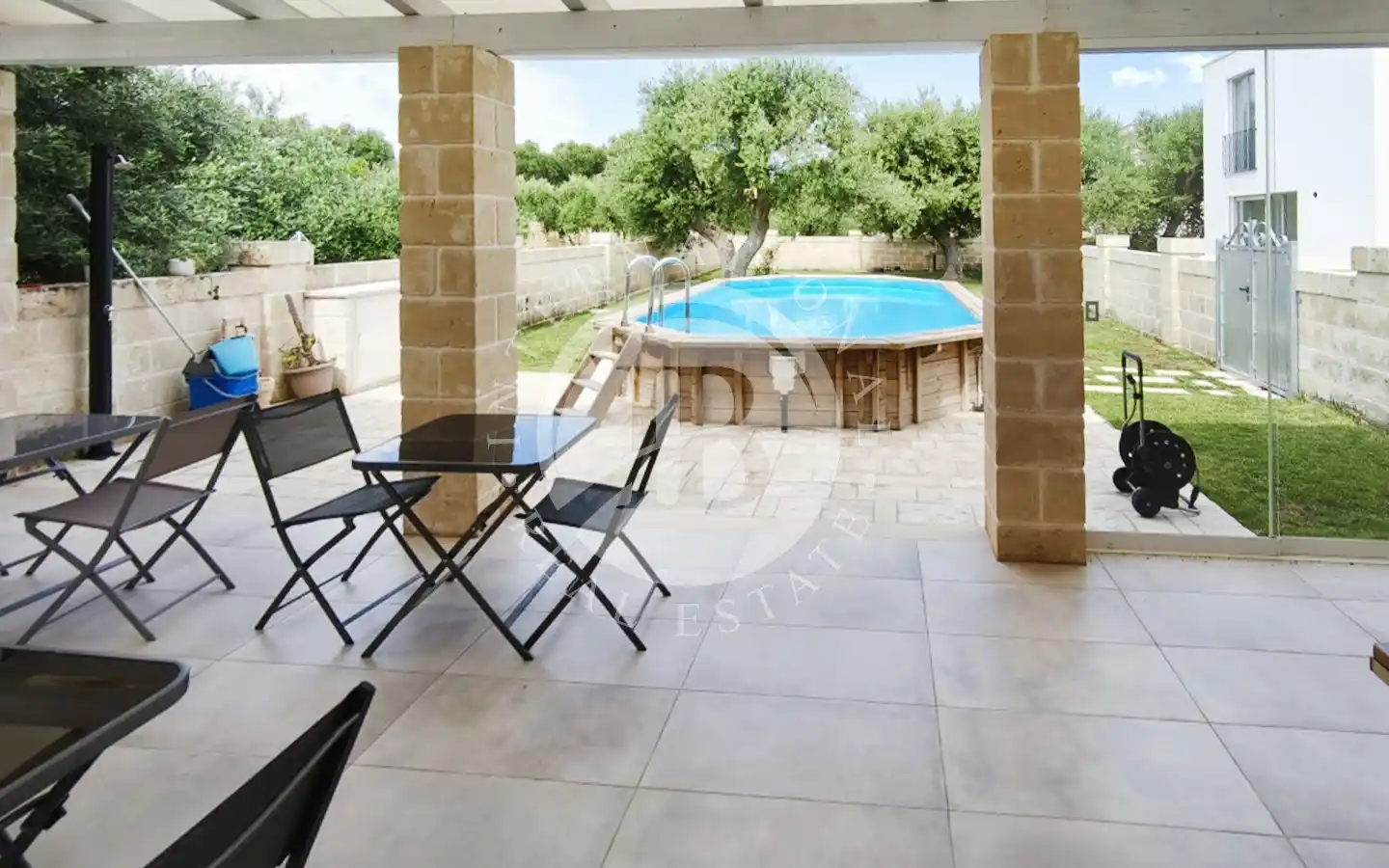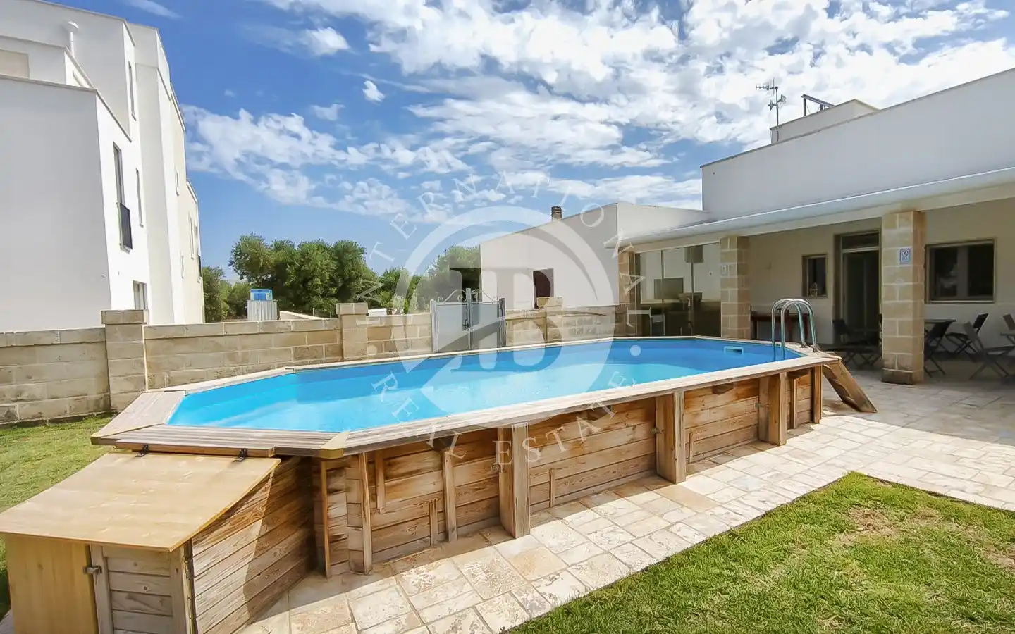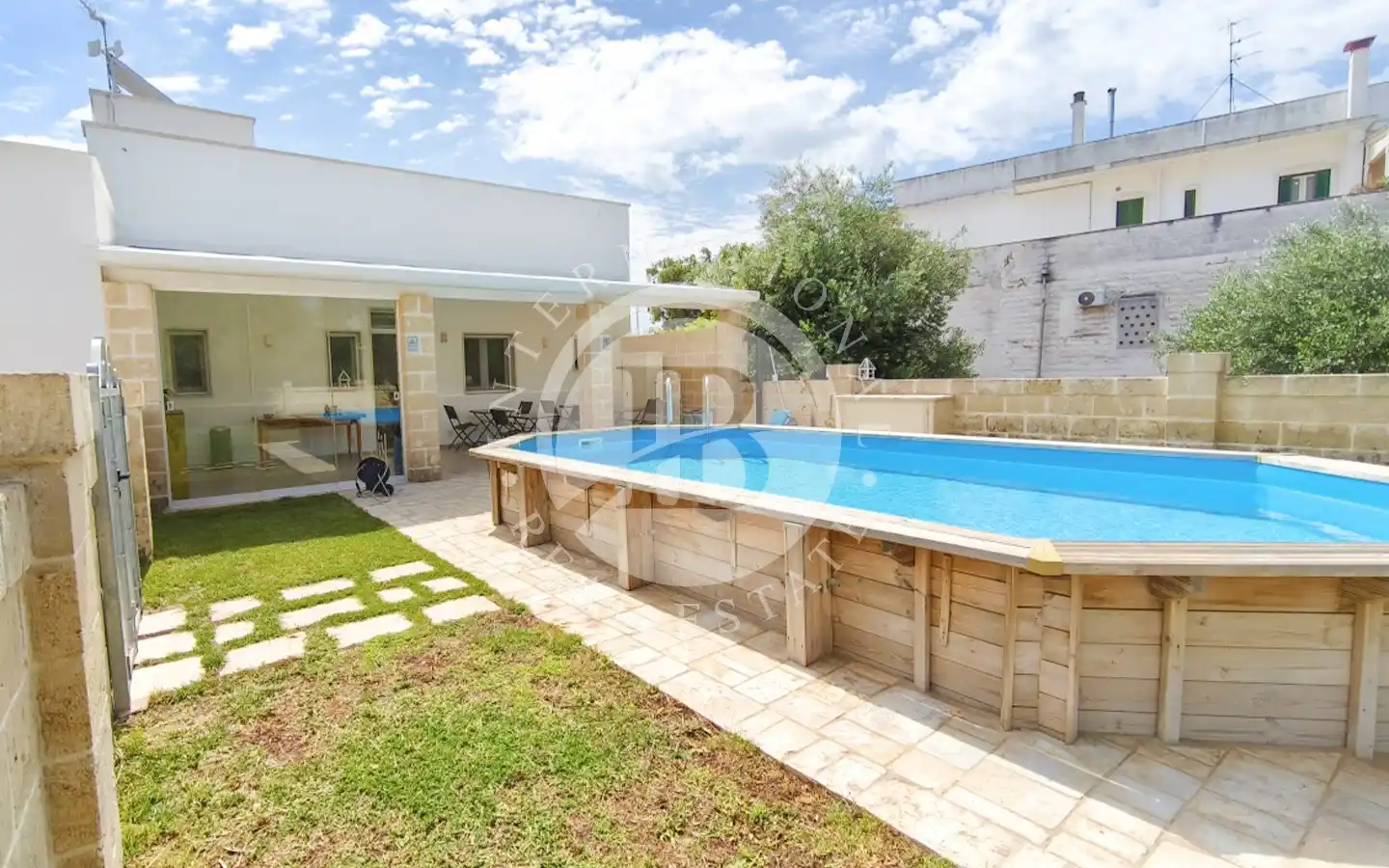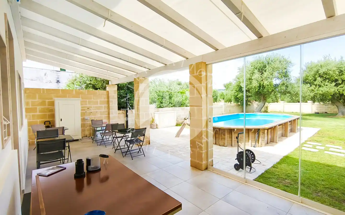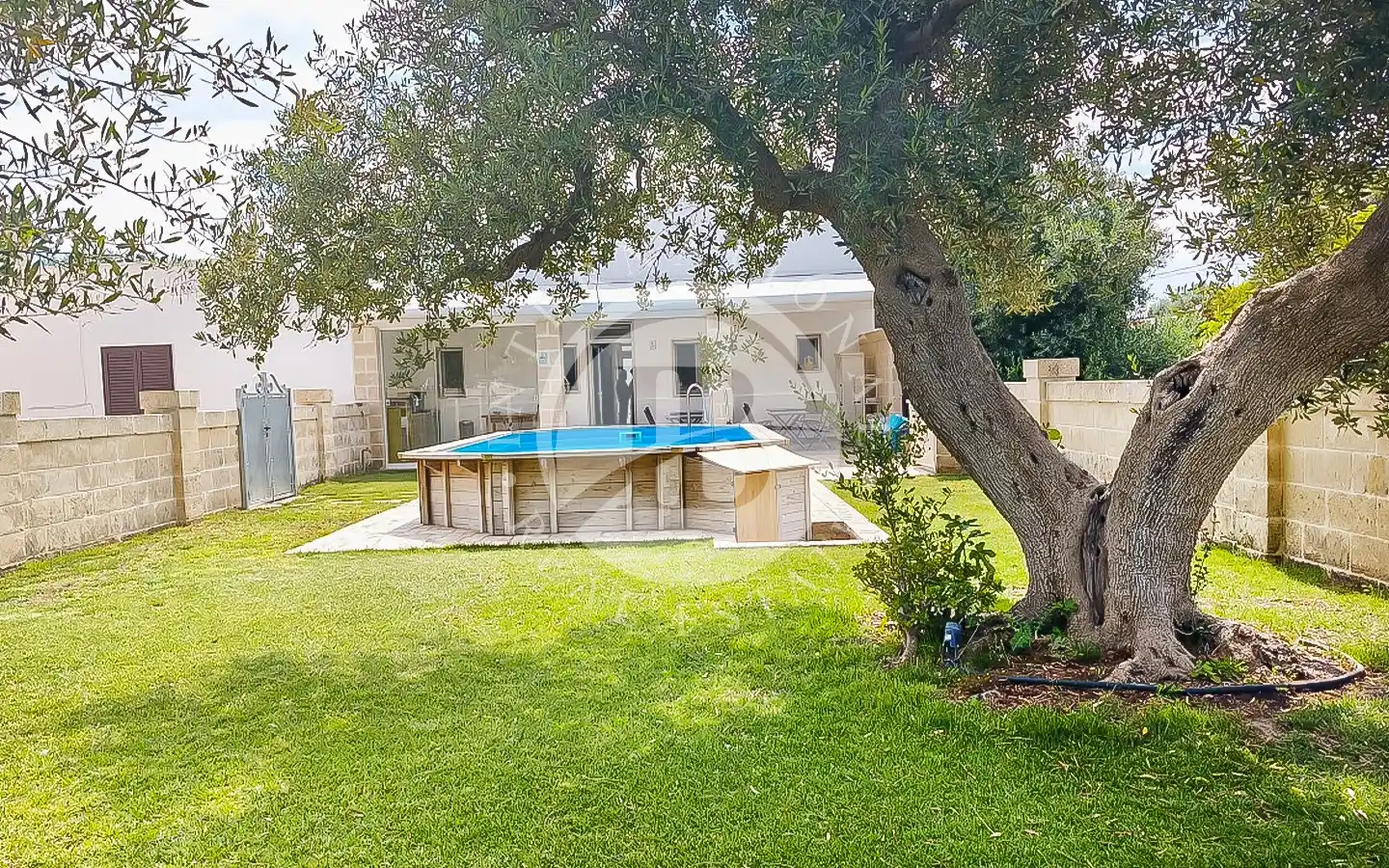 La piscina, attualmente fuori terra e immersa nel giardino, rappresenta il cuore degli spazi esterni: il luogo perfetto per rinfrescarsi nei mesi più caldi o godersi momenti di puro relax circondati dalla natura.