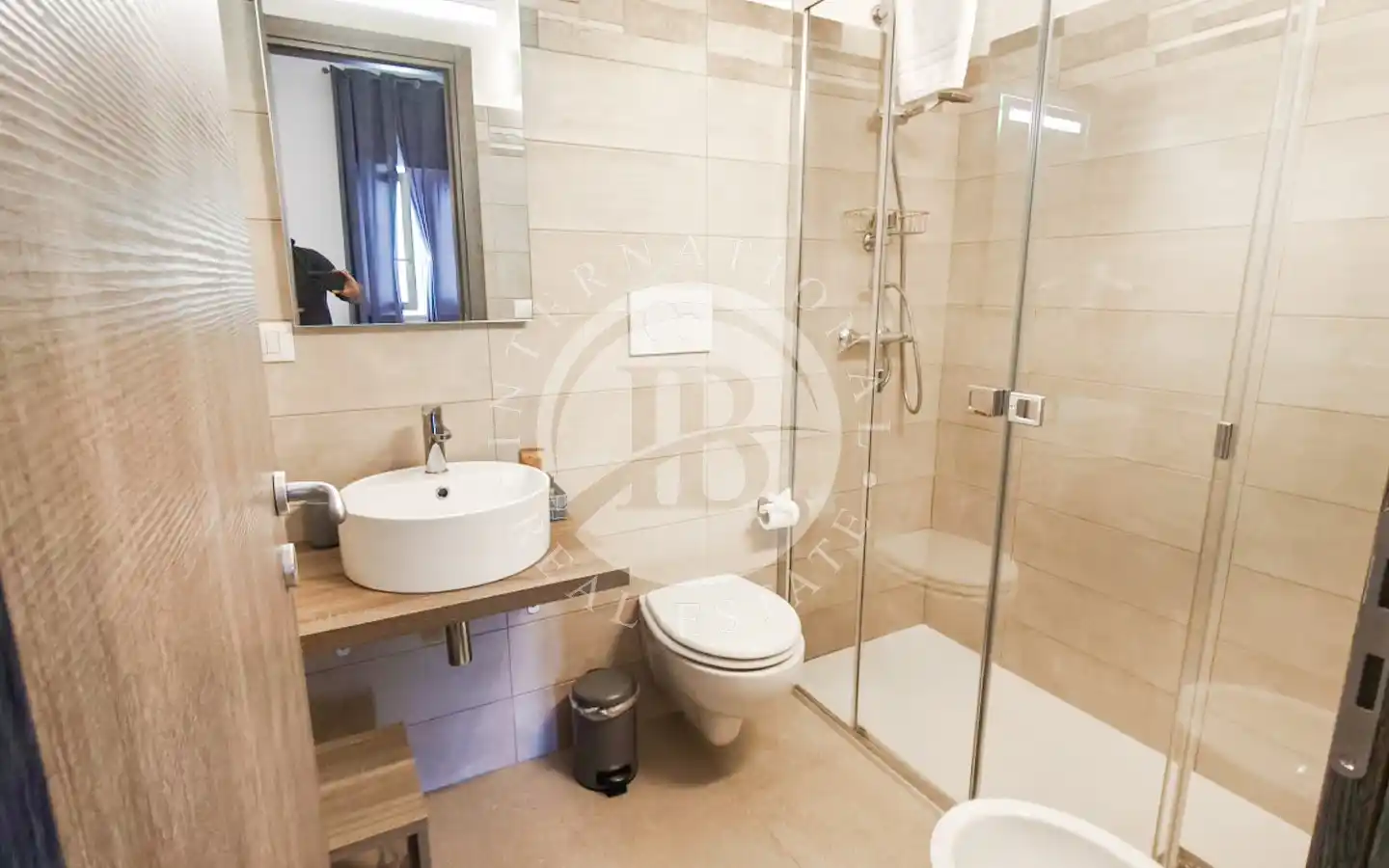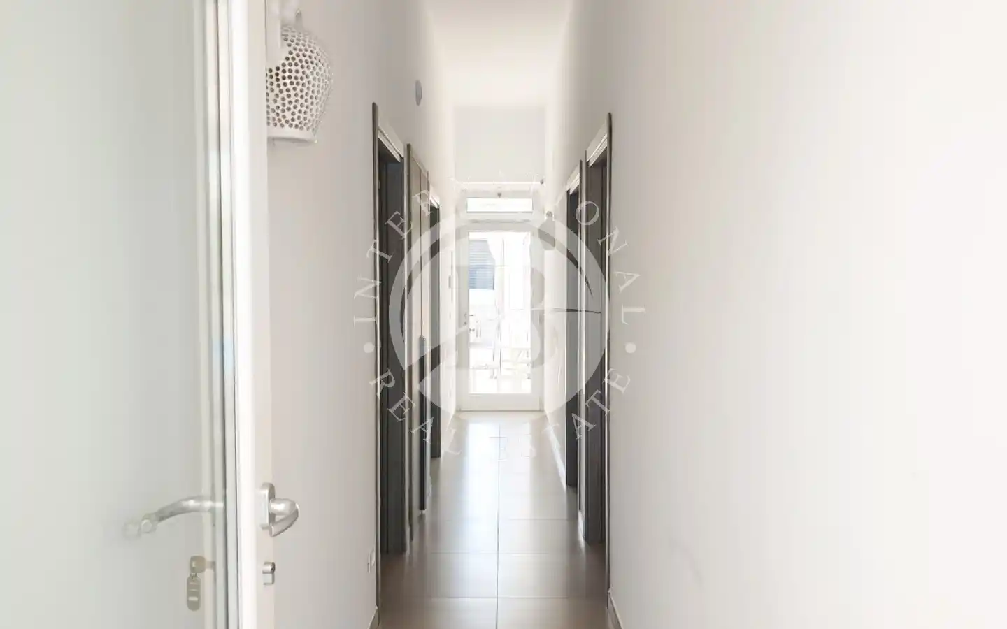 con bagno privato, garantendo massimo comfort e privacy per la famiglia e gli ospiti. Il soggiorno si apre su una veranda posteriore affacciata sul giardino piantumato e ombreggiato, creando un ambiente ideale per rilassarsi o intrattenere amici durante le calde serate estive.
