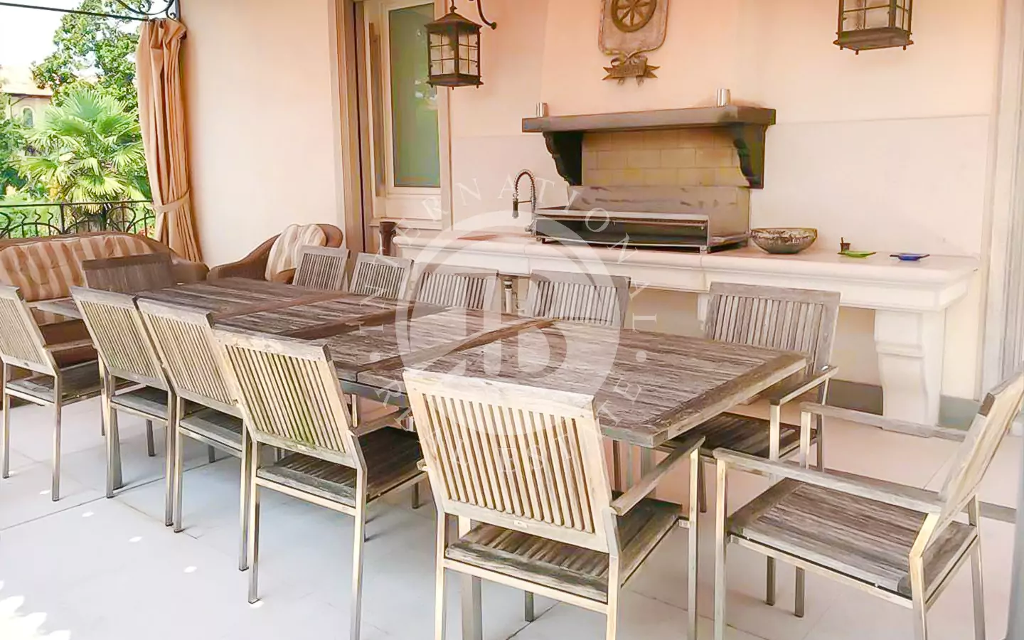 In posizione centrale e riservata, proponiamo in vendita una splendida villa completamente restaurata a nuovo, caratterizzata da finiture di alto livello e comfort moderni. L’immobile si sviluppa su due piani, terra e primo, collegati da ascensore interno, dettaglio raro e prezioso che ne aumenta la funzionalità e il valore. All’interno si accede da un elegante ingresso che conduce a un ampio salone, una cucina abitabile, una luminosa sala da pranzo, cinque camere da letto e cinque bagni, offrendo ampi spazi ideali per una famiglia nu…