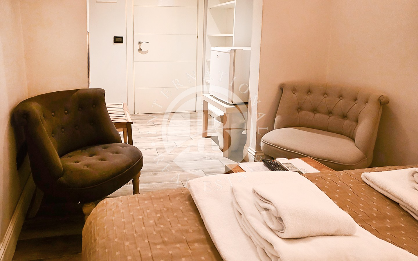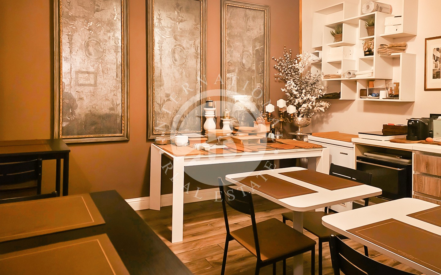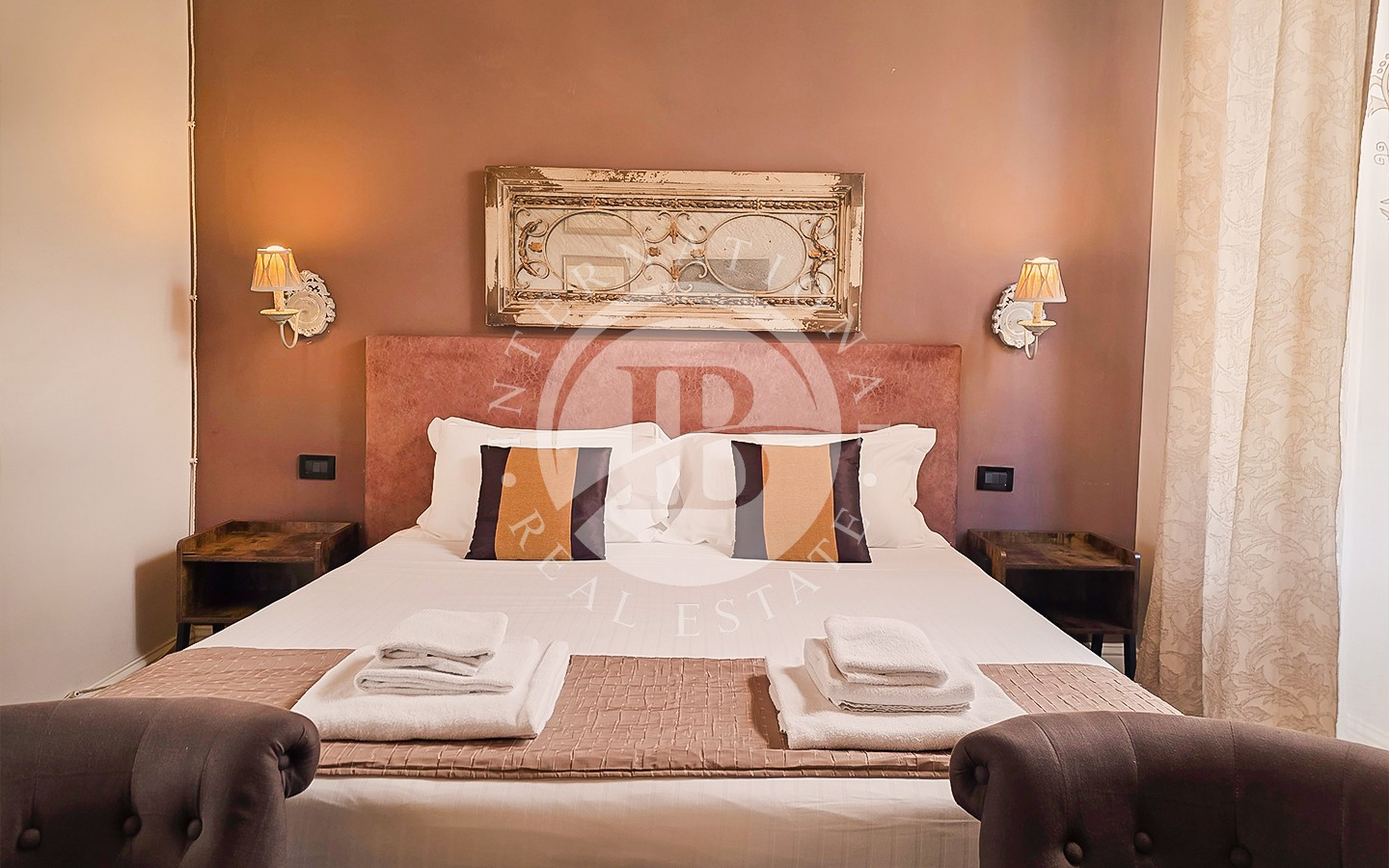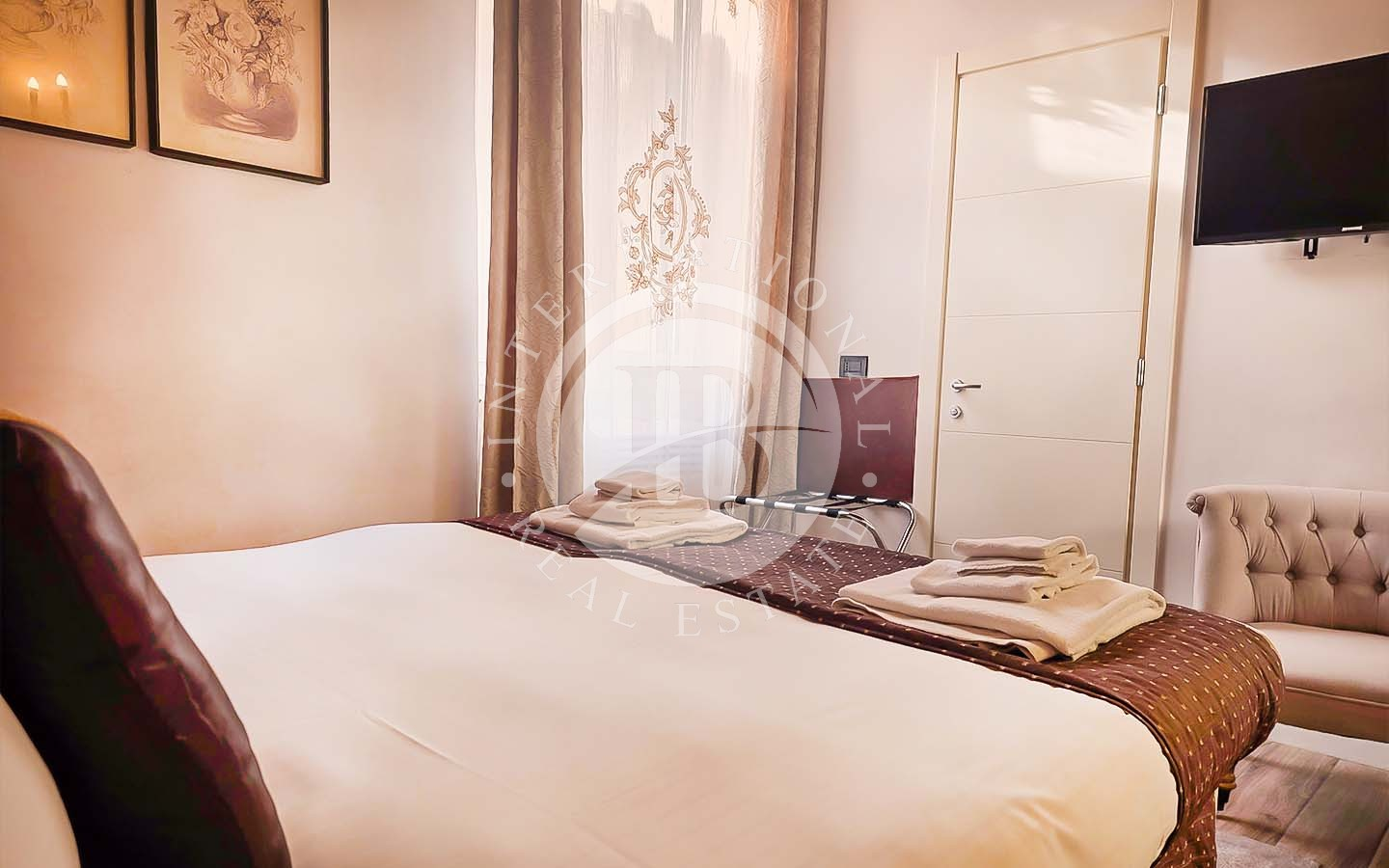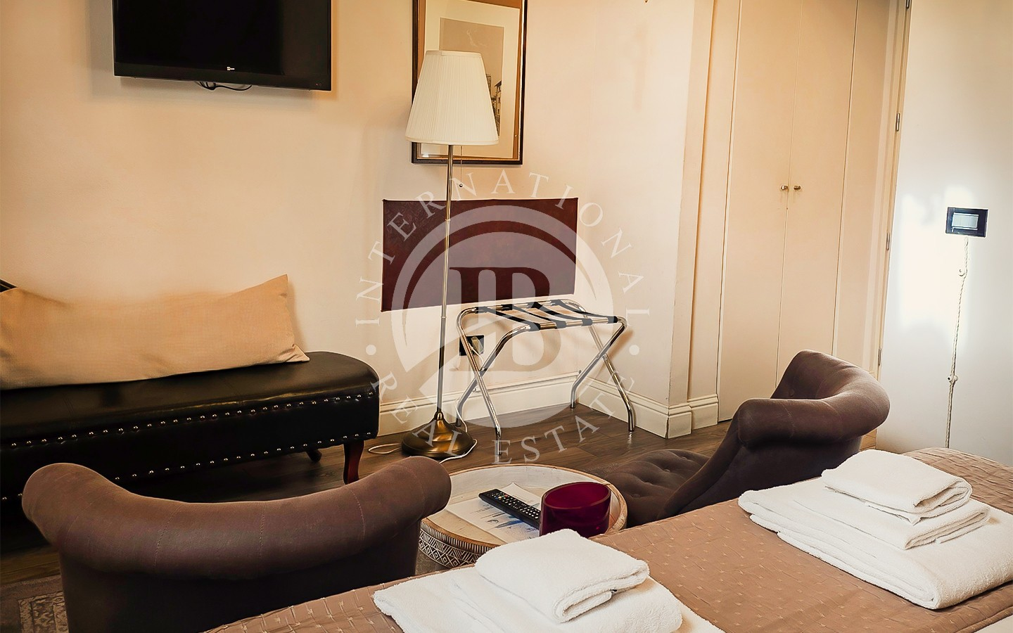 Les intérieurs se distinguent par leur élégance intemporelle, rehaussée par des plafonds à caissons en bois d'origine et des antiquités soigneusement sélectionnées. L'appartement comprend six chambres, chacune avec salle de bains privée, télévision, minibar et coffre-fort, conçues pour garantir un maximum de confort et d'intimité.