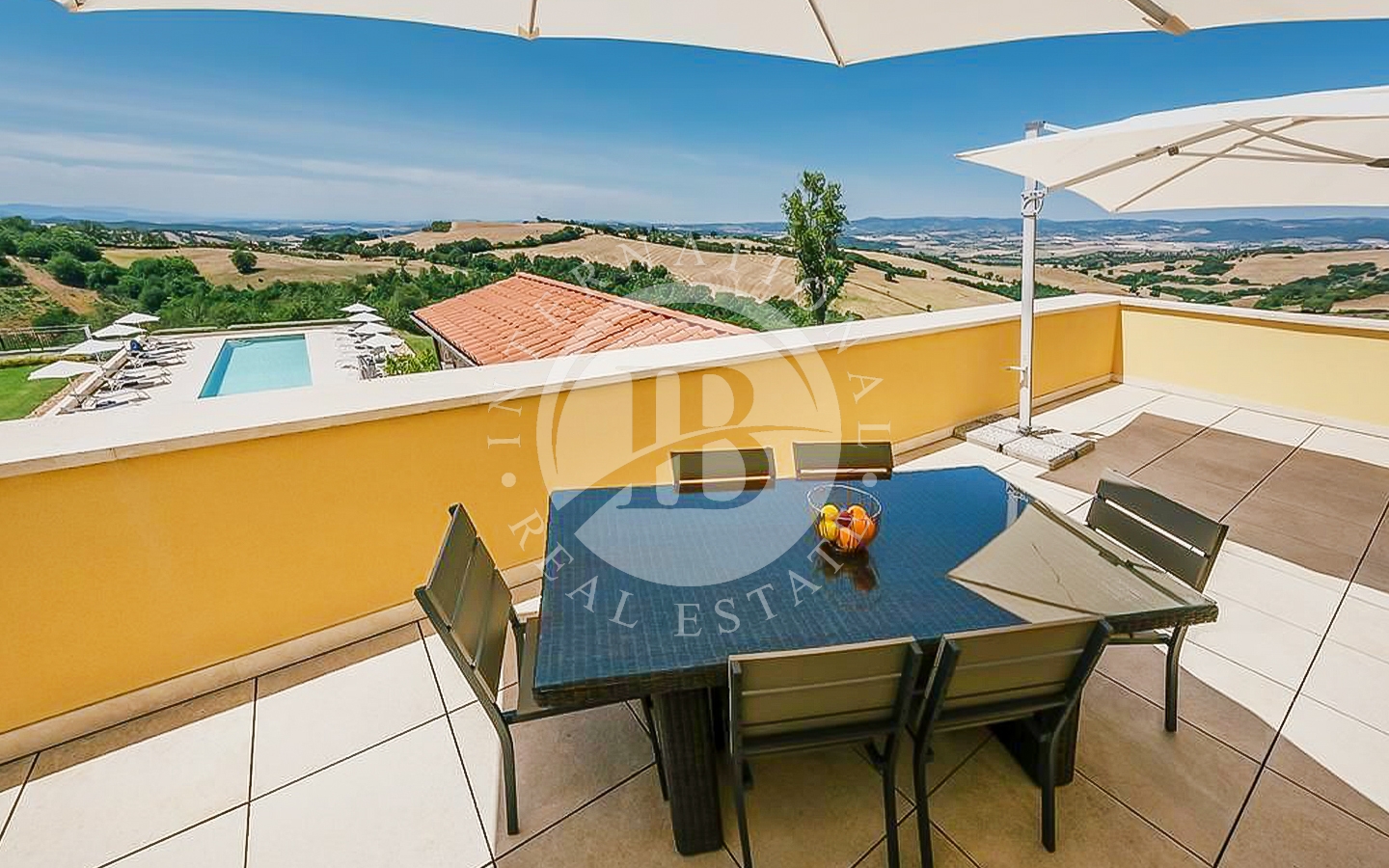 Situata su un poggio dominante con vista panoramica sulla campagna toscana, sul mare dell'Argentario e sull'isola di Montecristo, questa lussuosa azienda agrituristica è perfettamente curata e venduta arredata. Attualmente adibita a struttura ricettiva, offre anche una produzione di pregiato olio biologico. L'azienda si sviluppa su tre piani. Al piano terra si trovano una reception, una sala con angolo bar, una cucina professionale completamente attrezzata, sei camere con bagno, tutte aperte sul giardino. Ogni camera gode di riciclo c…