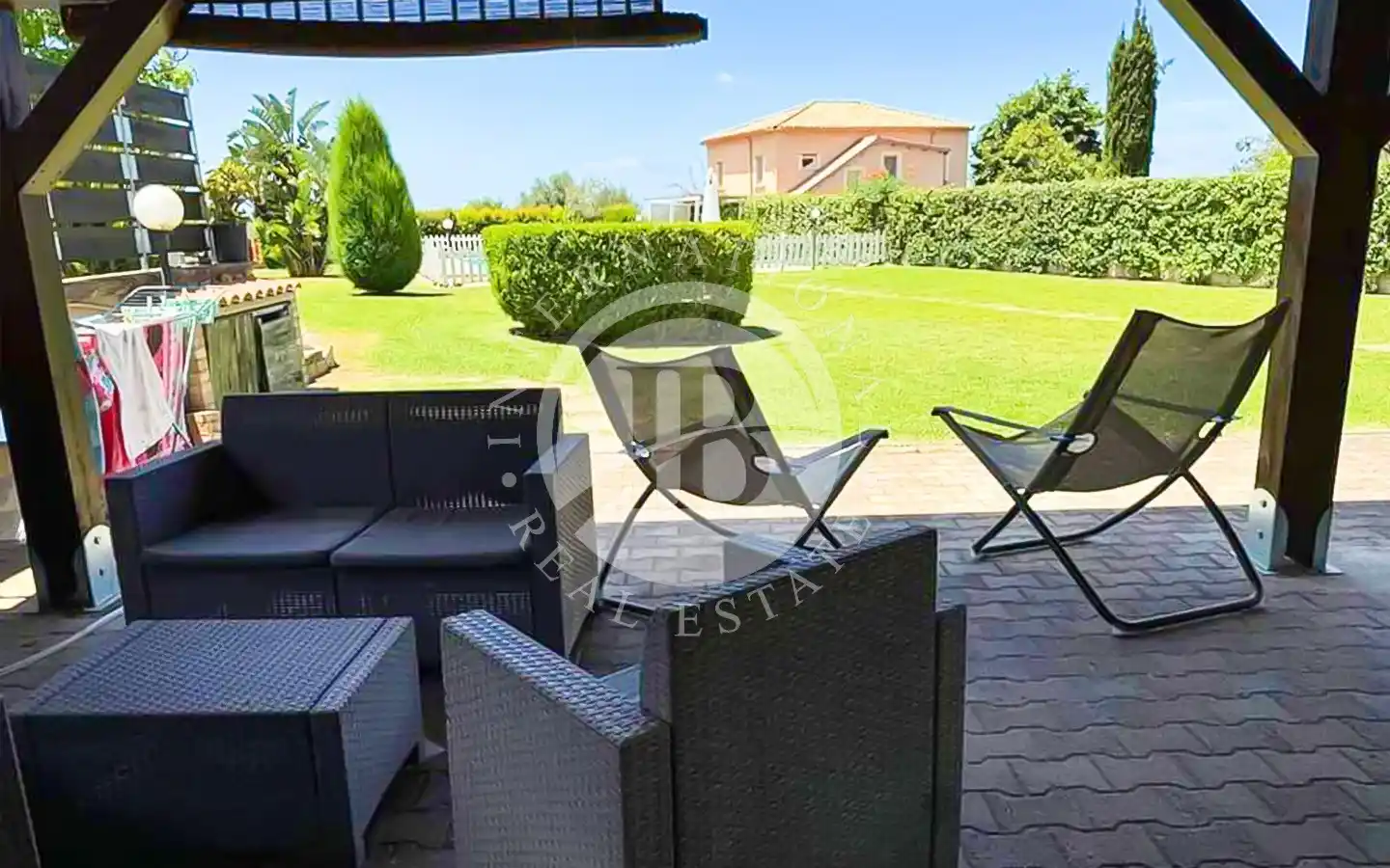 primo: accessibile dal corpo principale della villa, presenta un portico abitabile, cucina, spazioso soggiorno con termo camino, bagno e ripostiglio.