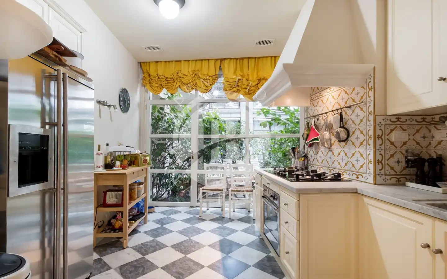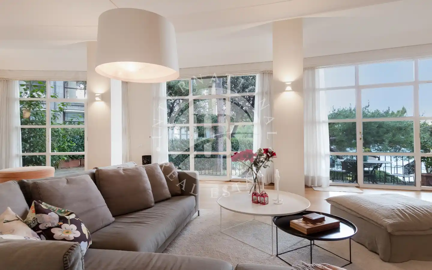 Le jardin privé d'environ 100 mètres carrés, entouré par la tranquillité du parc de la copropriété, est un coin parfait pour profiter de moments de détente en plein air. L'appartement comprend deux places de parking couvertes dans le garage.