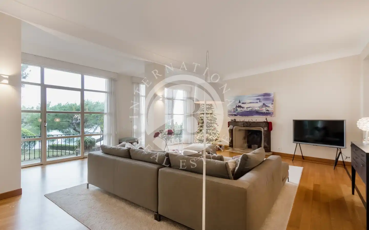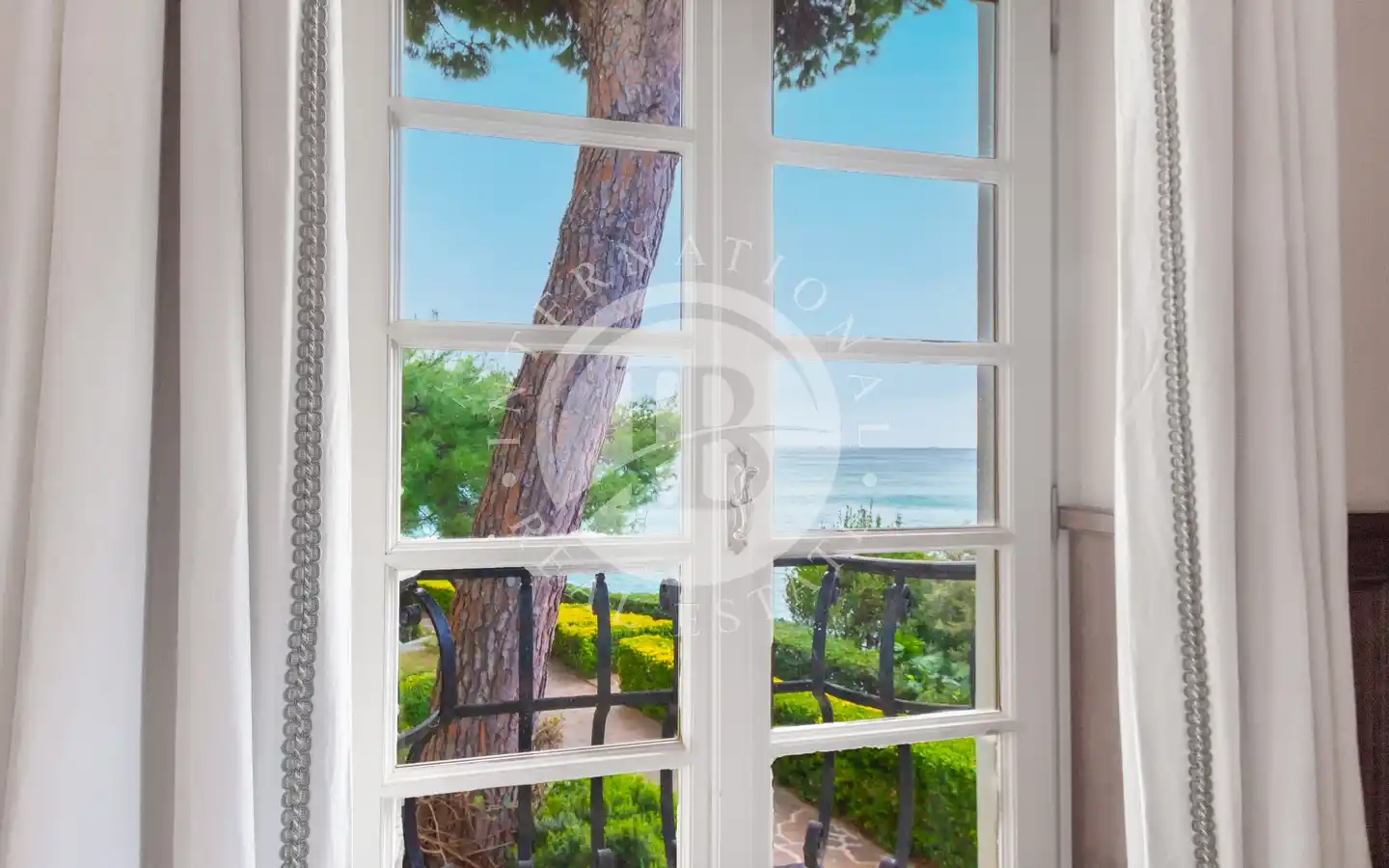 Au rez-de-chaussée, un double salon avec cheminée et de grandes fenêtres inonde l'espace de lumière naturelle, offrant une vue imprenable sur la mer. Une cuisine, une salle à manger, un bureau, deux salles de bains et une pièce de service complètent le rez-de-chaussée.