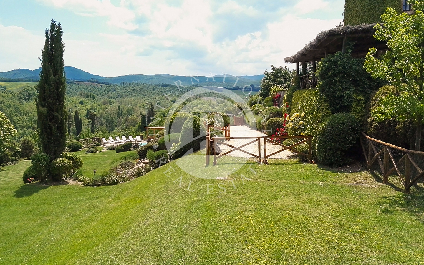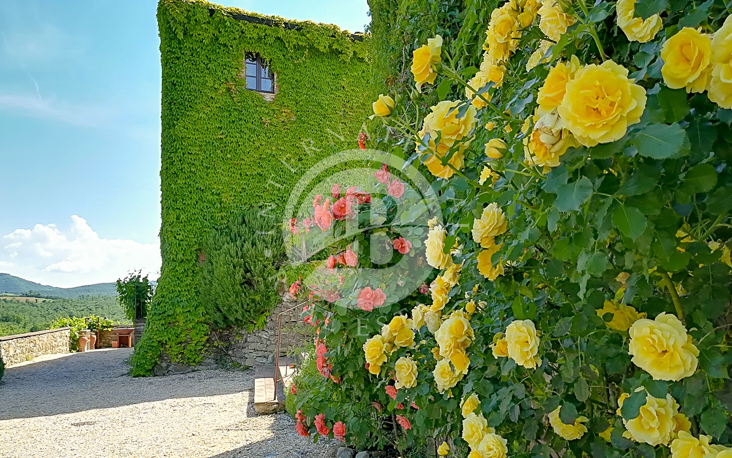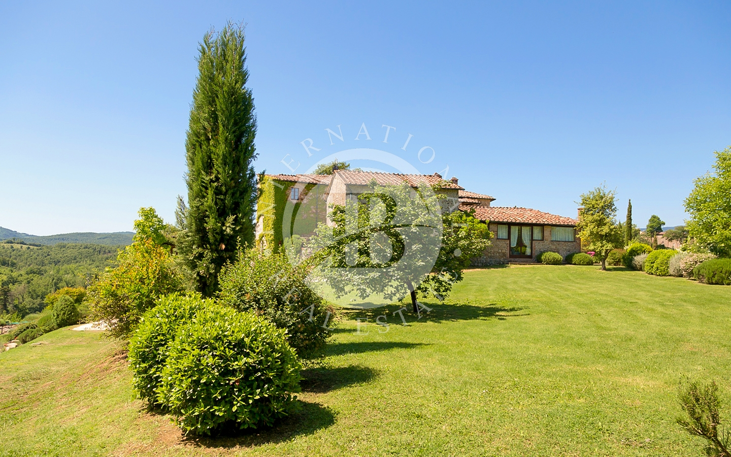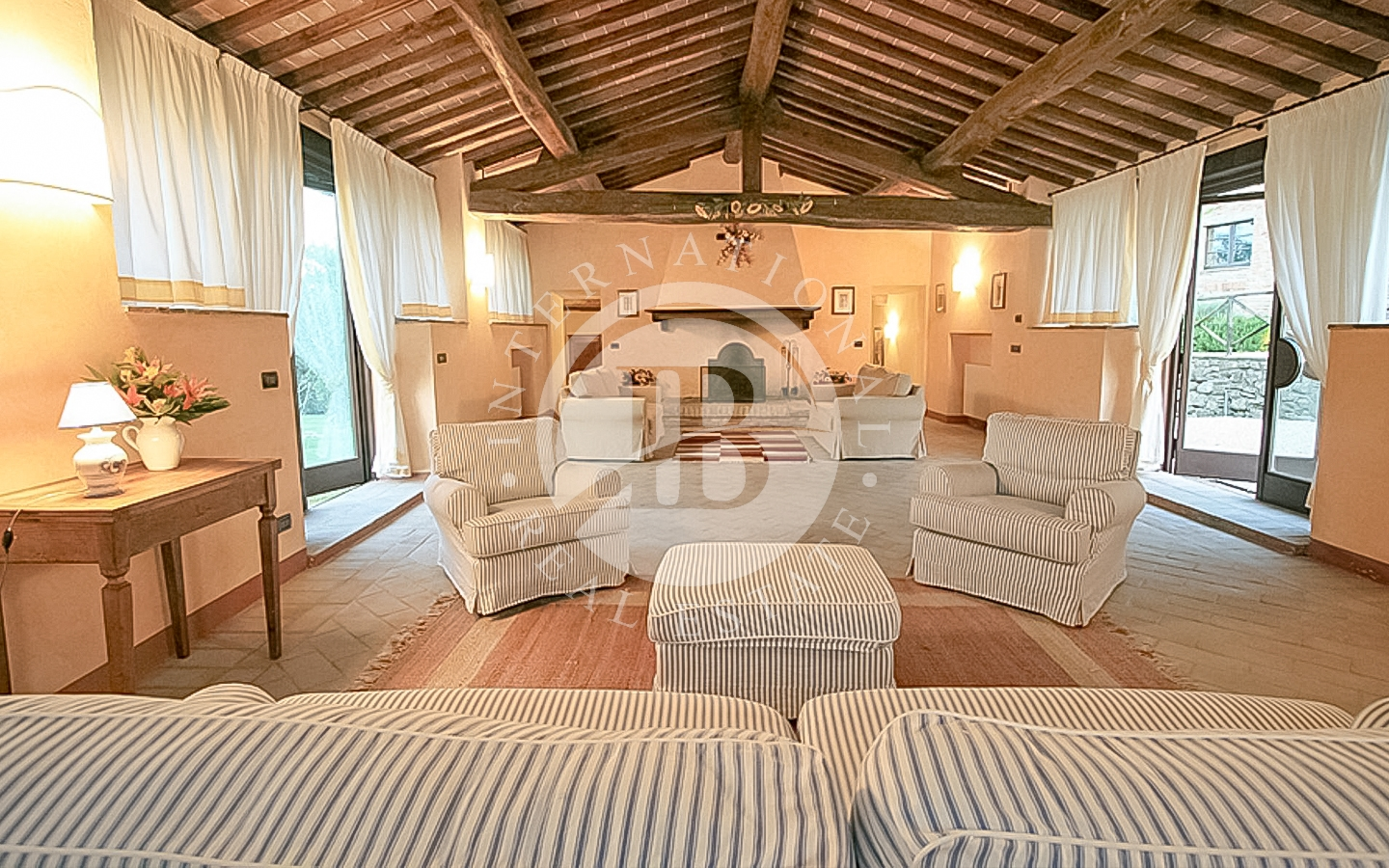 Accanto al corpo principale, la dependance di circa 290 mq rappresenta un’abitazione autonoma e accogliente, con soggiorno con camino, cucina, due camere matrimoniali con bagno privato e spazi esterni esclusivi. Gli interni, caratterizzati da travi in legno a vista, pavimenti in cotto e pietra naturale, sono stati ristrutturati con estrema cura, mantenendo intatto il fascino rurale toscano e arricchiti da arredi di antiquariato locale.
